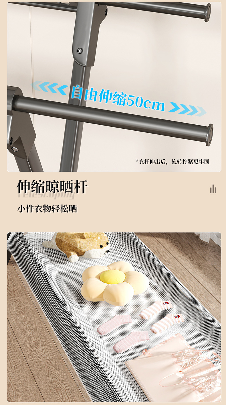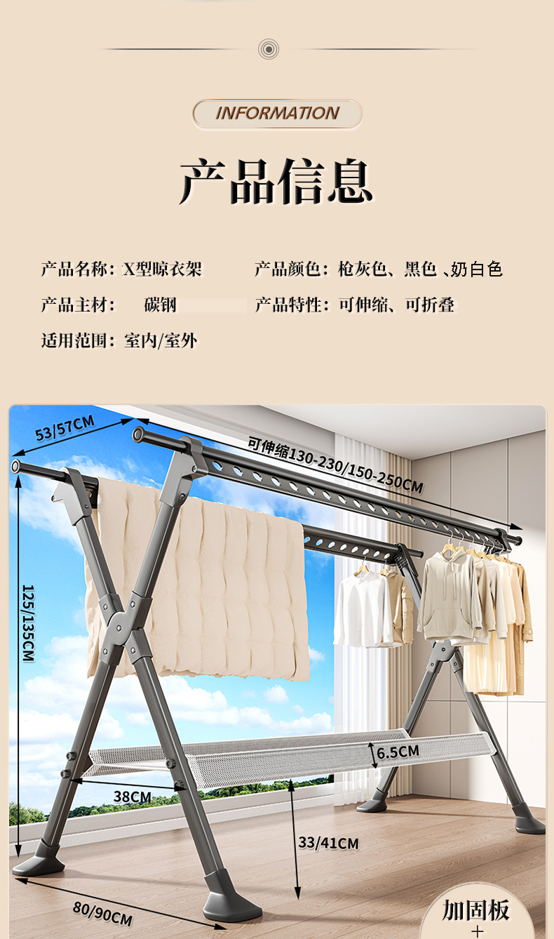 크림 화이트-탄소강 두꺼운 모델 2.36m [접이식-수납망 없음]