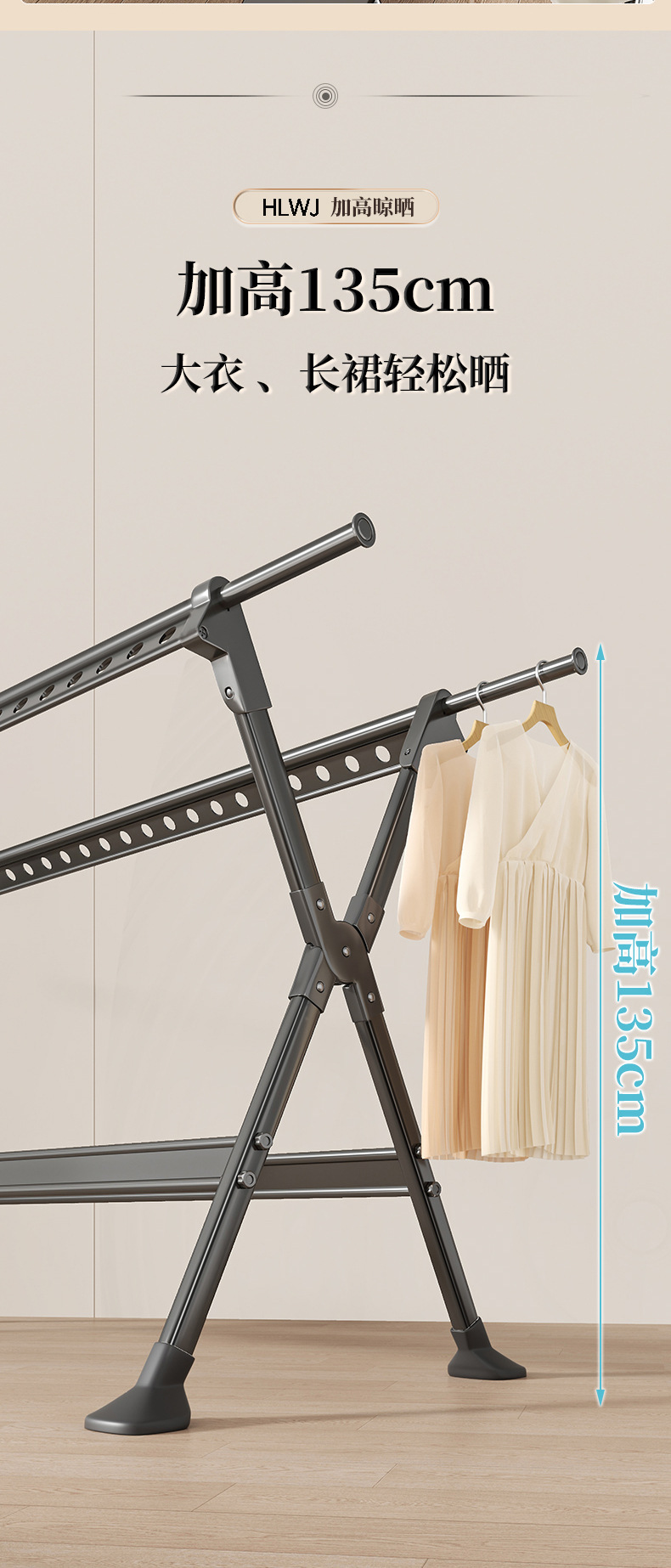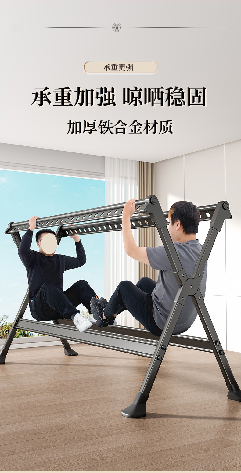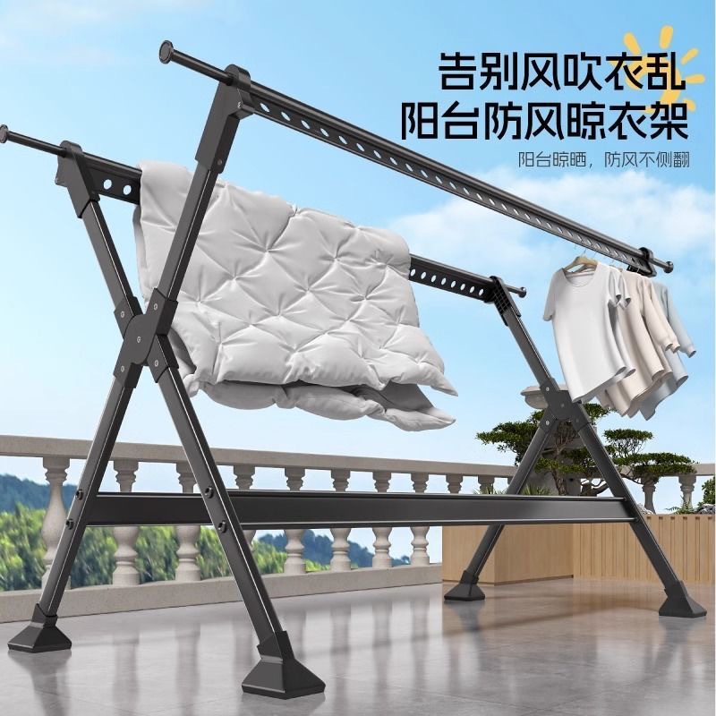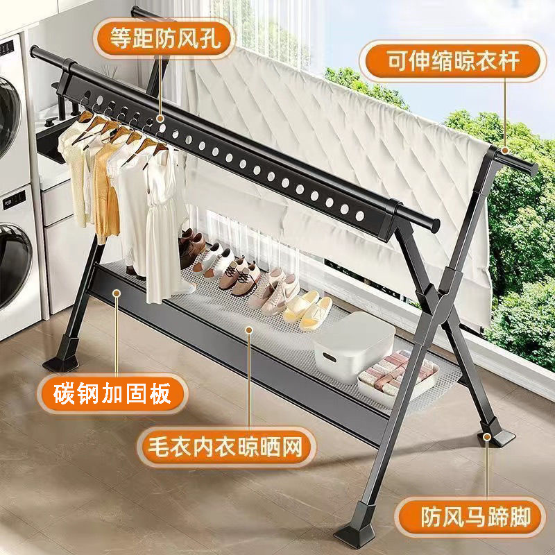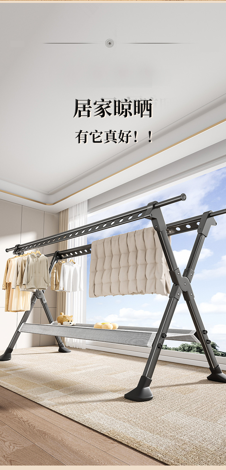발코니 두꺼운 옷 건조 랙 바닥 접이식 실내 가정용 이중 막대 개폐식 리프팅 옷 건조 랙 옷 걸이