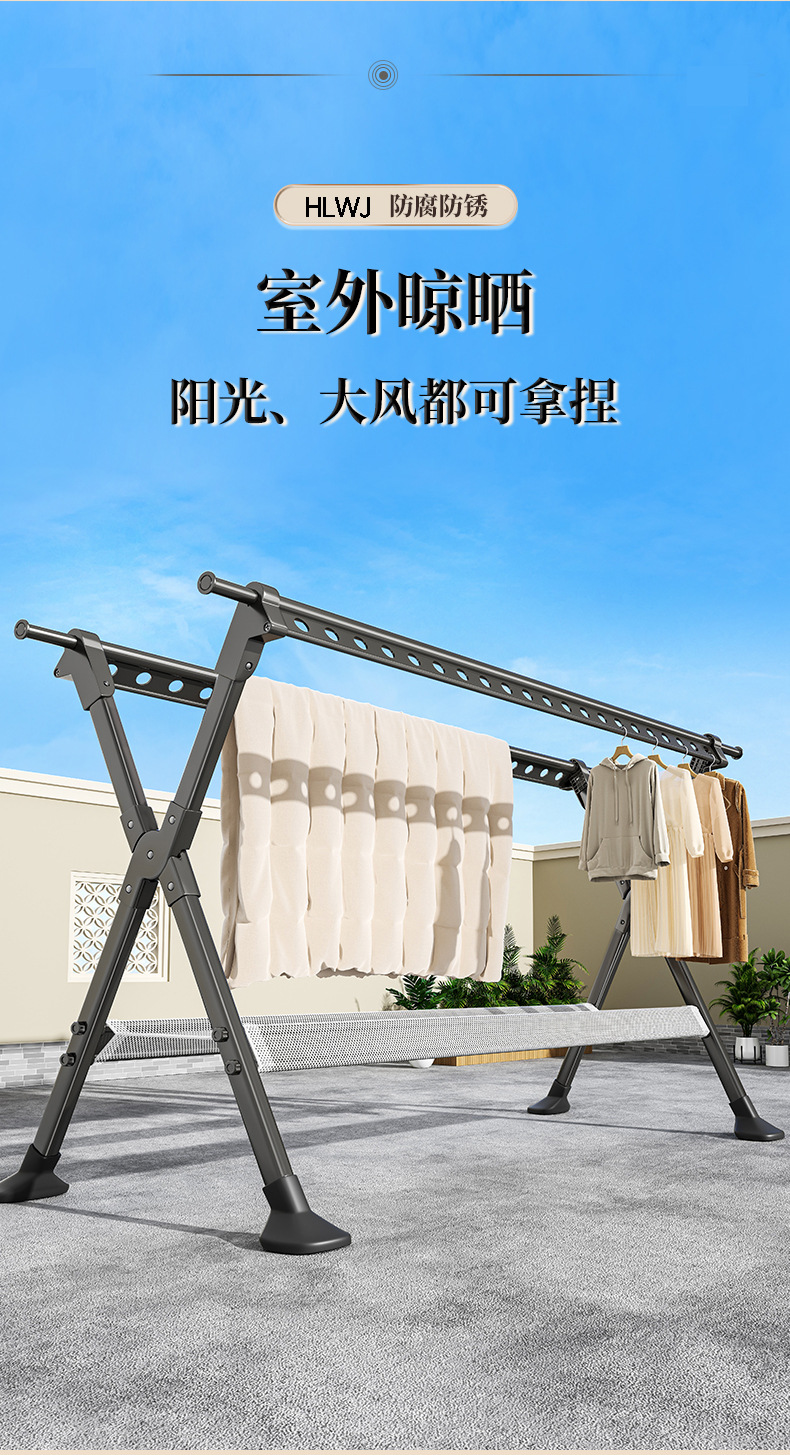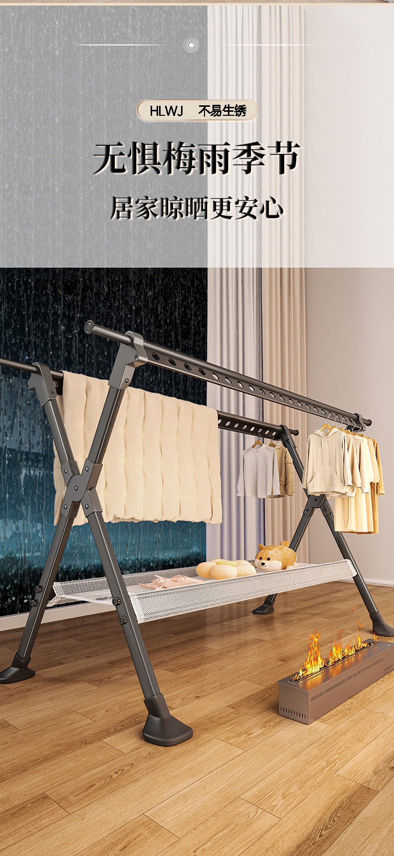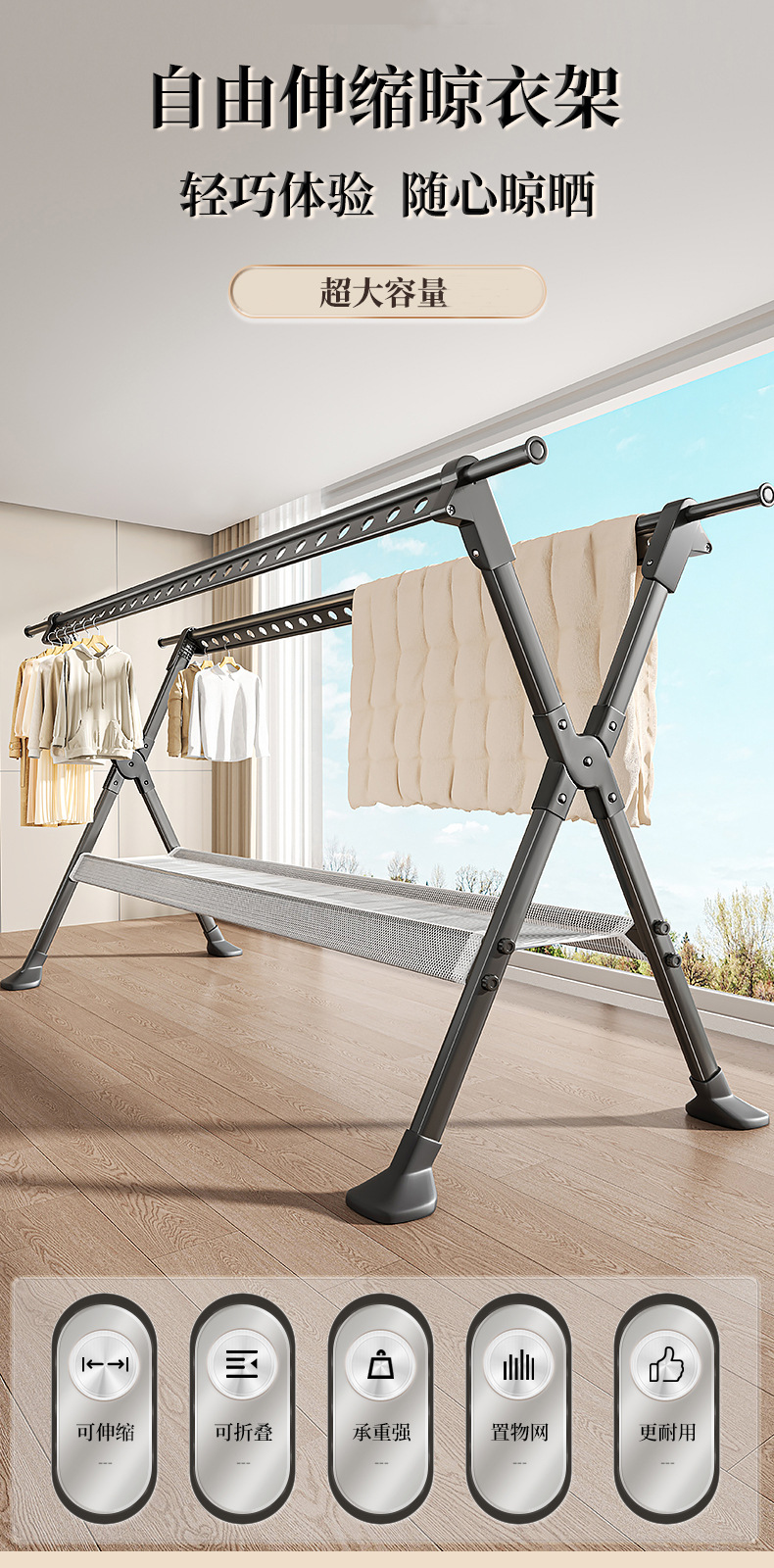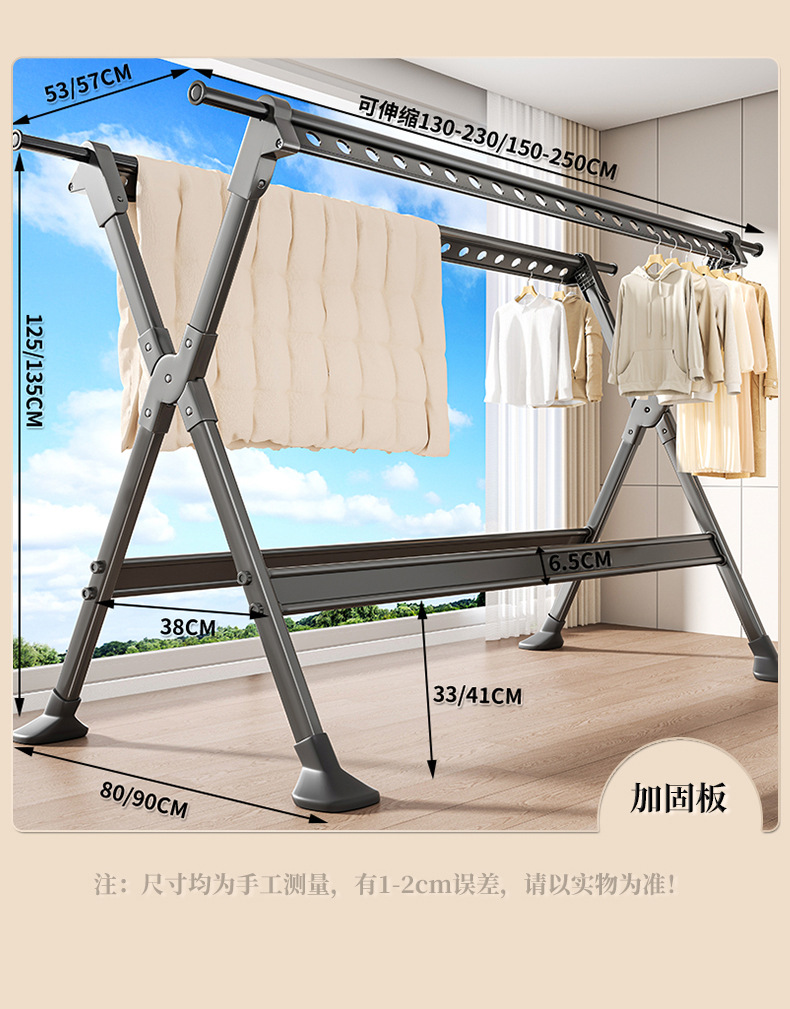 발코니 두꺼운 옷 건조 랙 바닥 접이식 실내 가정용 이중 막대 개폐식 리프팅 옷 건조 랙 옷 걸이