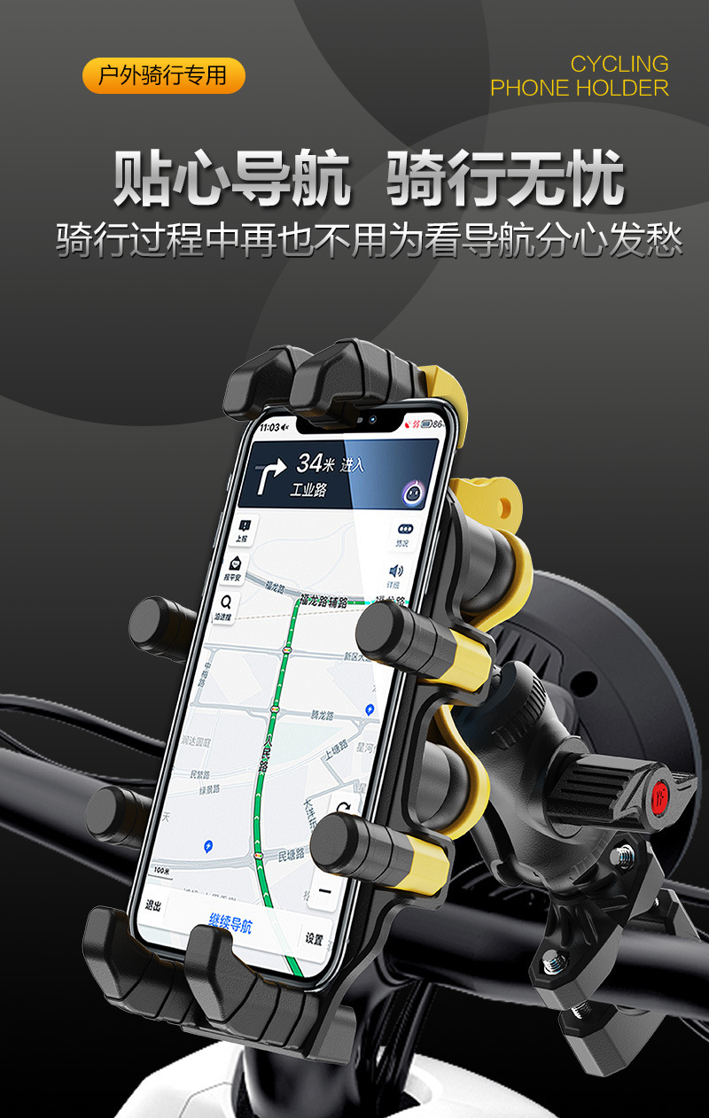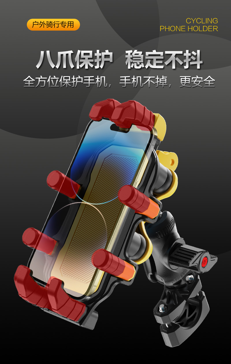 오토바이 휴대폰 홀더 테이크아웃 라이더 8발톱 충격 방지 및 흔들림 방지 라이딩 고정 장비 전기 자동차