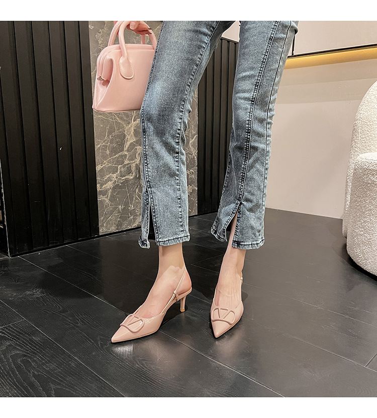 Kanglida vjia V 버클 누드 컬러 하이힐 여성용 다용도 프렌치 포인티드 슈즈 원라인 스틸레토 힐 샌들