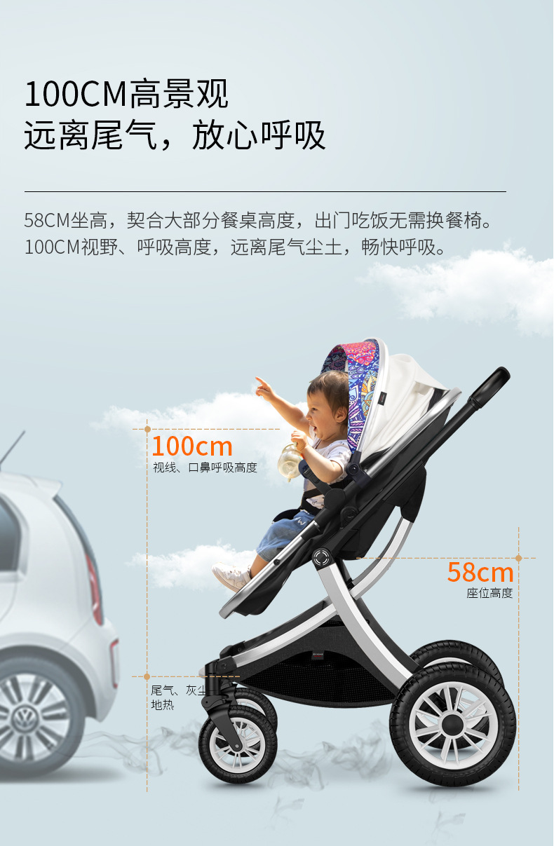 유모차는 앉고 누울 수 있으며 유모차는 하이뷰 양방향 푸시 충격 흡수 접이식 유모차 제조업체입니다.