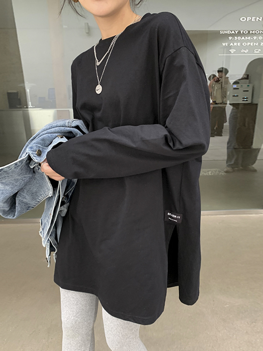 2023年秋装新款女装韩版色开叉长袖T恤女上衣打底衫潮洋气小衫