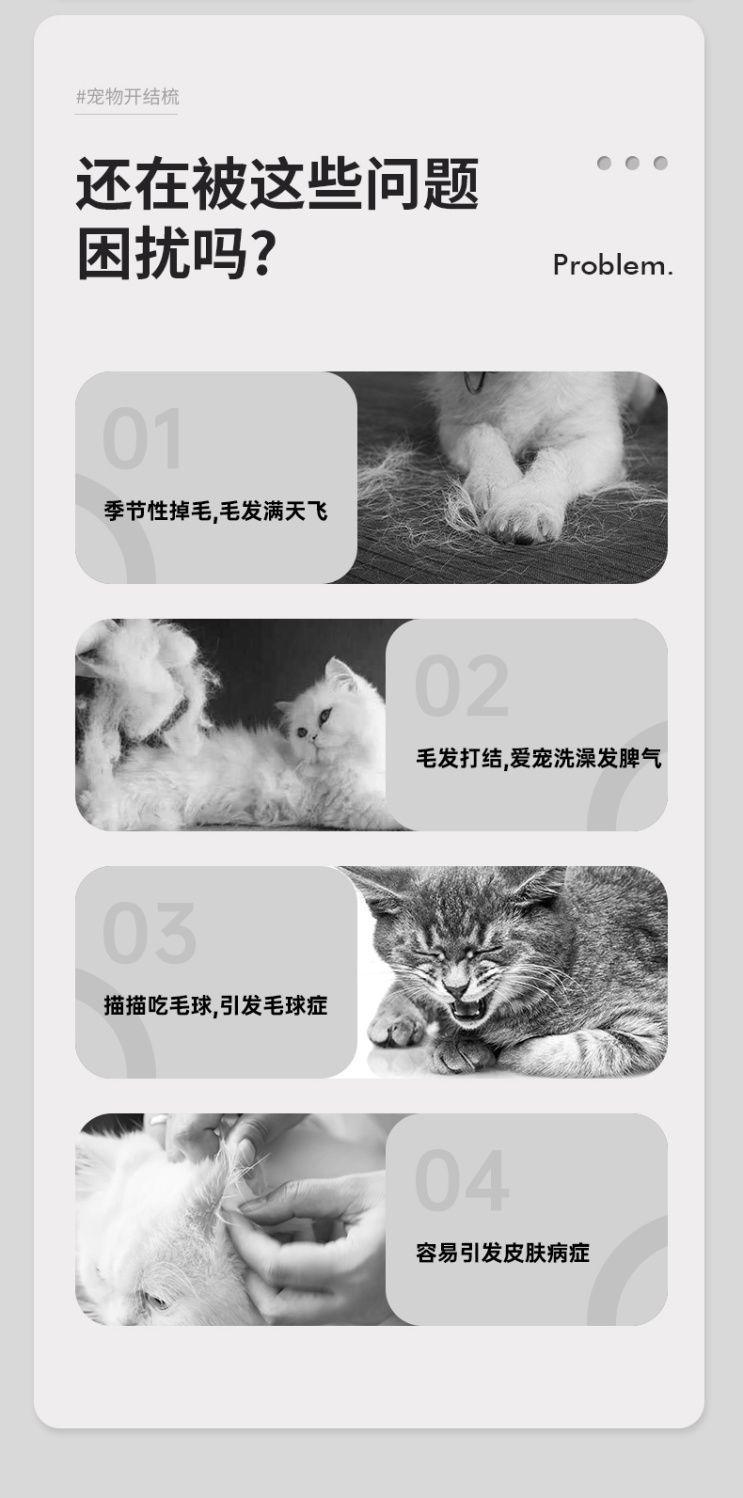 [애완동물용품] 고양이와 강아지의 털을 제거하고 벨벳을 제거하며 털을 얇고 부드럽게 해주는 고양이용 개폐식 빗, 고양이의 주식