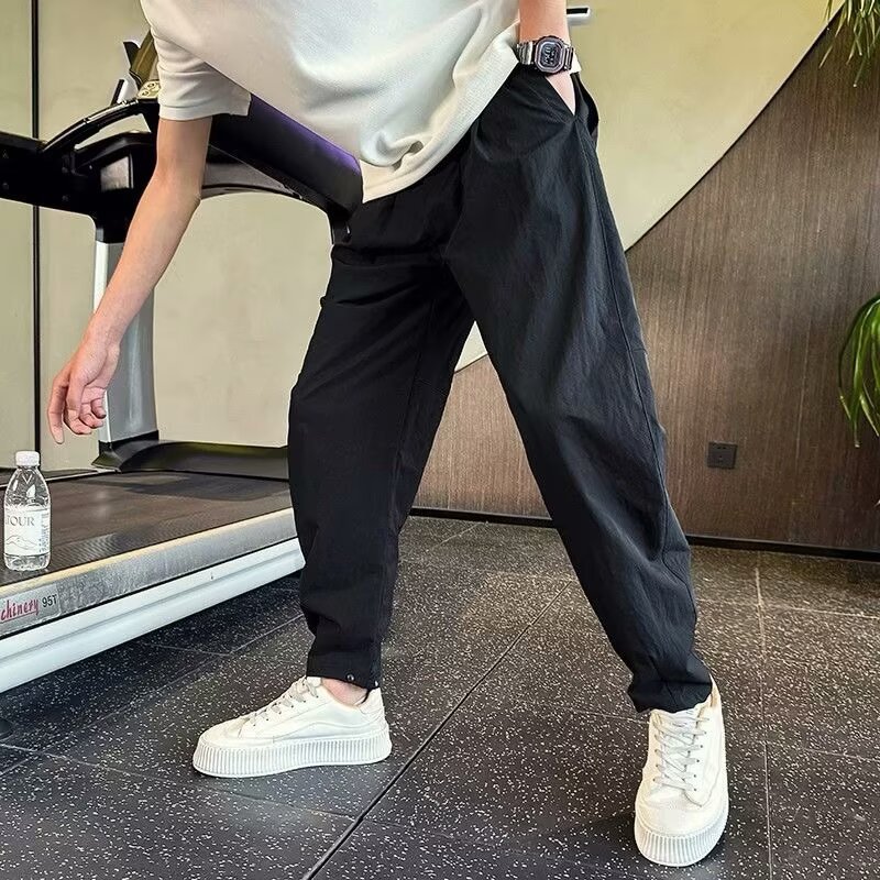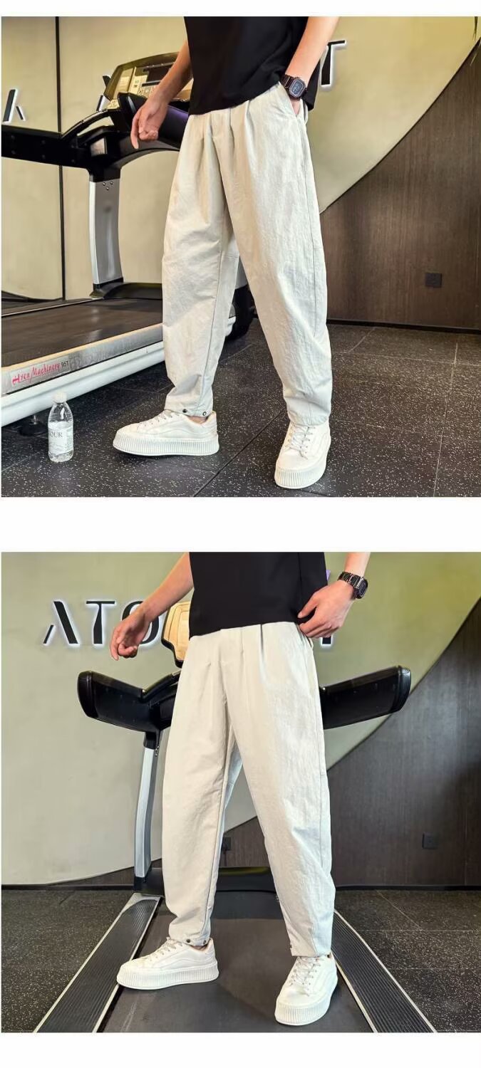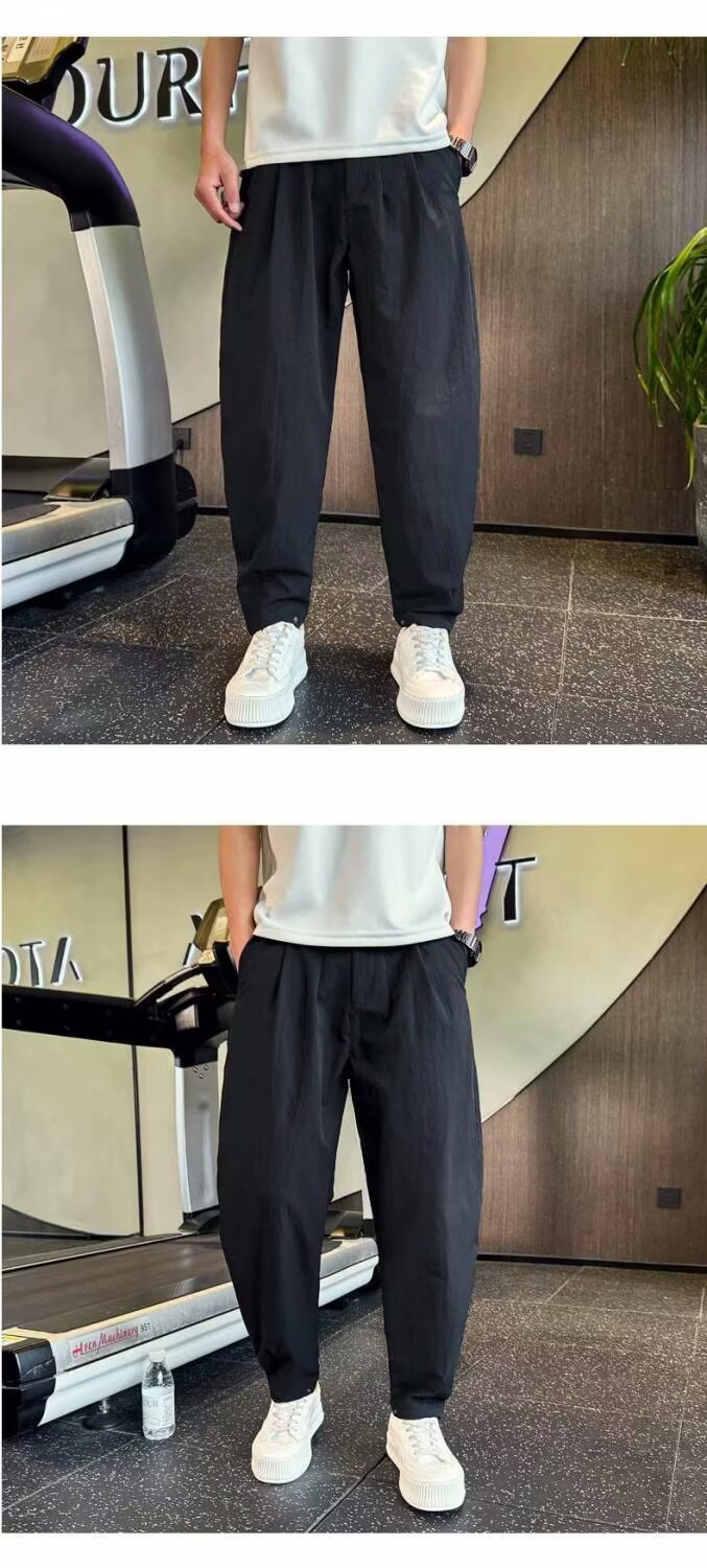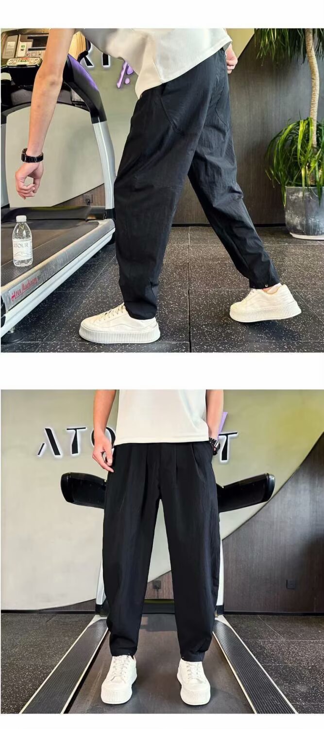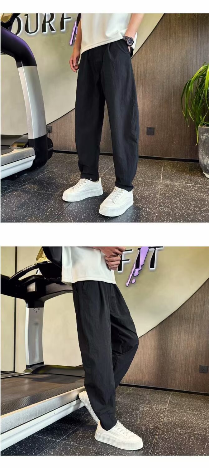 [스토어 핫셀링] 트렌디 브랜드 남성용 속건 팬츠 루즈한 하렘팬츠 여름 얇은 팬츠 2025 새로운 스타일 다재다능하고 순수한