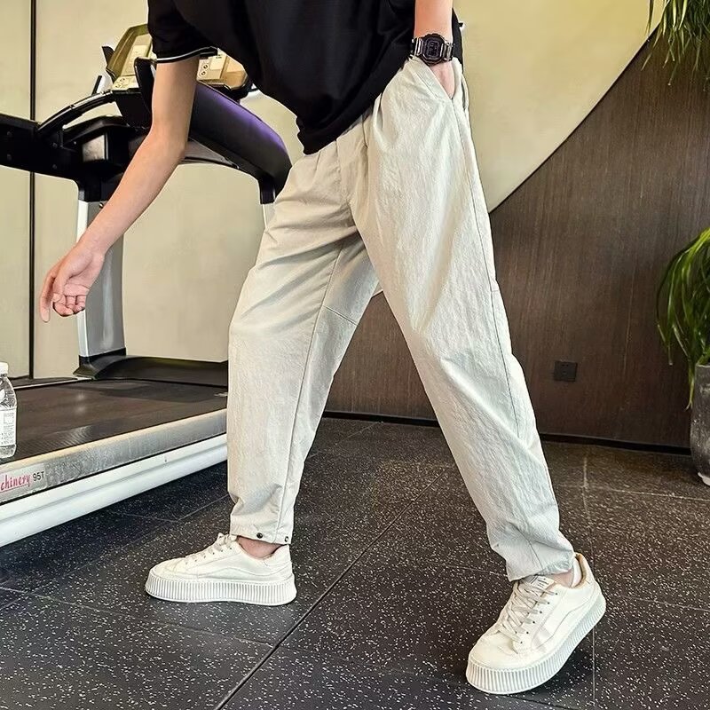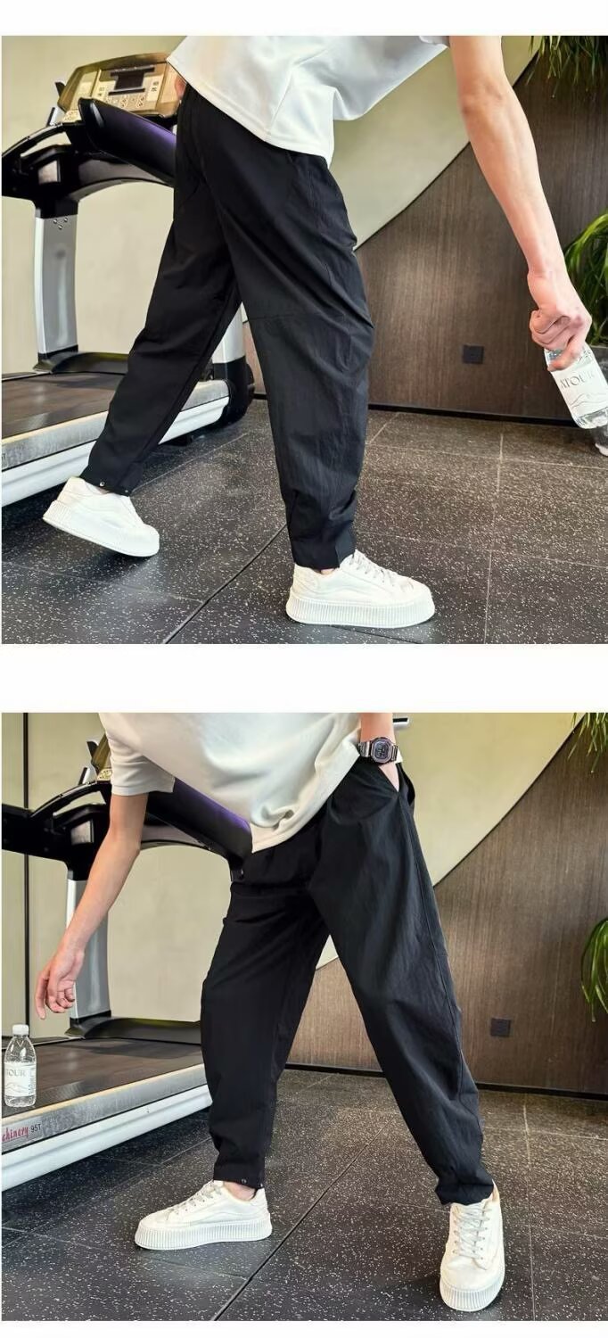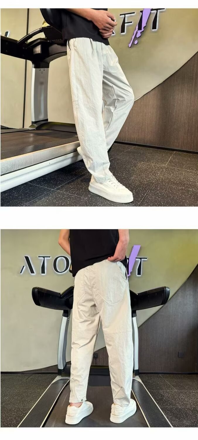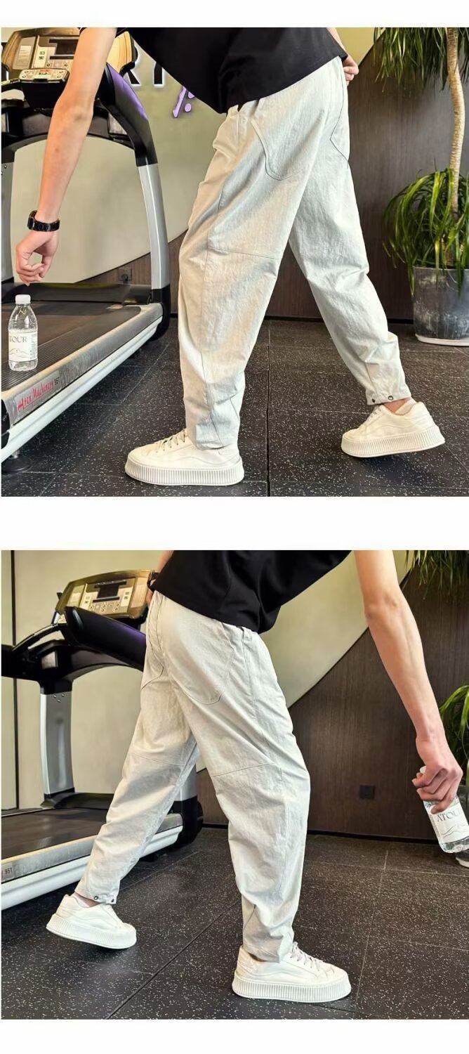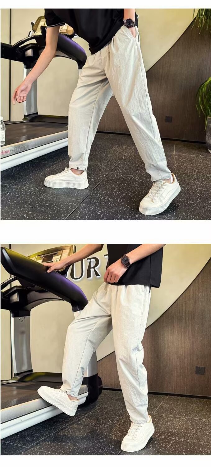 [스토어 핫셀링] 트렌디 브랜드 남성용 속건 팬츠 루즈한 하렘팬츠 여름 얇은 팬츠 2025 새로운 스타일 다재다능하고 순수한