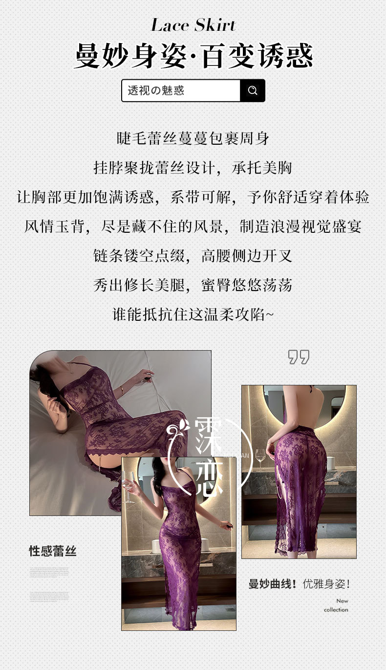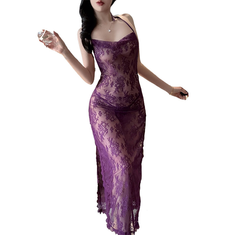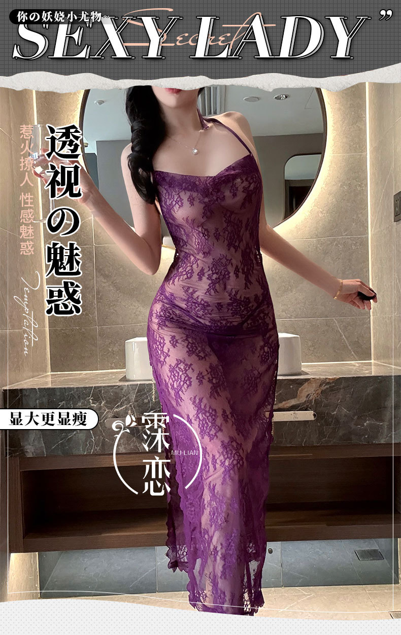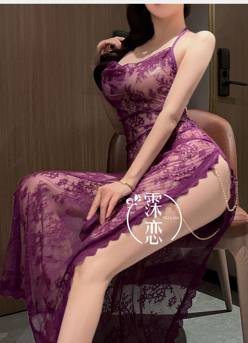섹시한 속옷, 섹시한 잠옷, 시스루 레이스, 순수한 욕망 하이 슬릿 드레스, 여왕의 플러팅 섹시 속옷