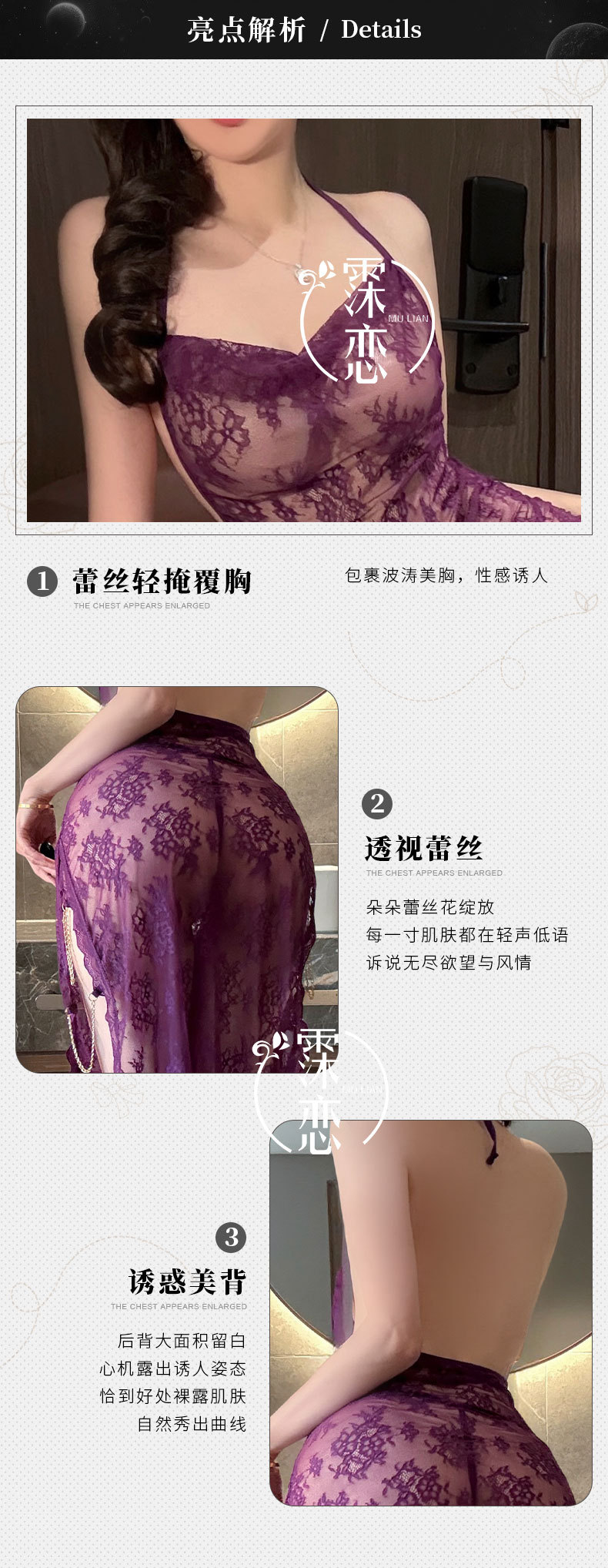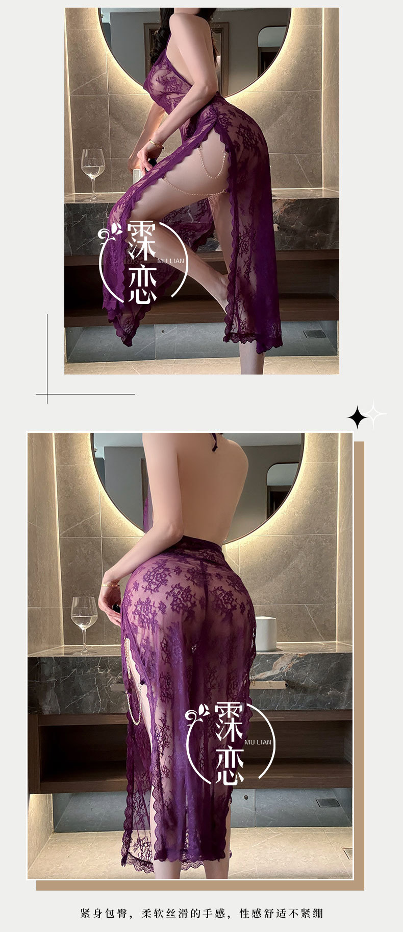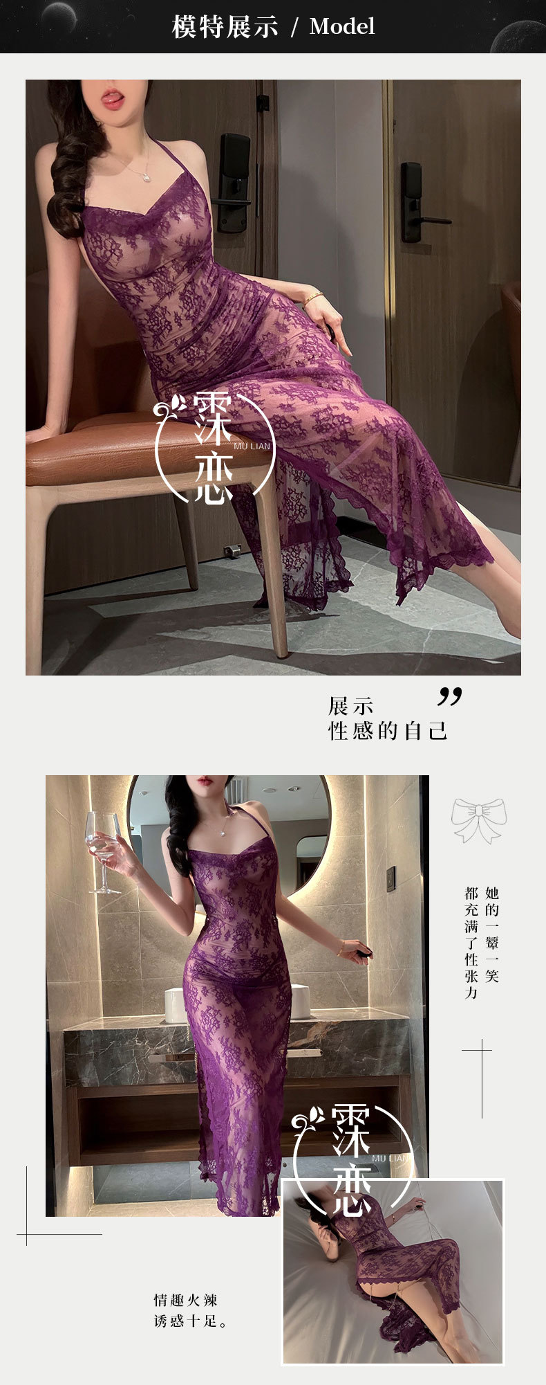 섹시한 속옷, 섹시한 잠옷, 시스루 레이스, 순수한 욕망 하이 슬릿 드레스, 여왕의 플러팅 섹시 속옷