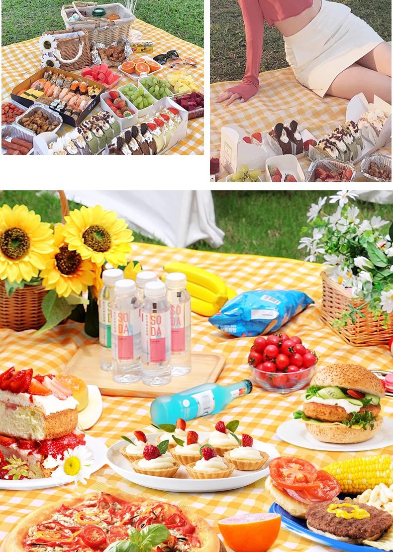 두꺼워진 피부친화적인 노란색 체크무늬 200*200 [6~8명 수용가능] 양면방수, 방습