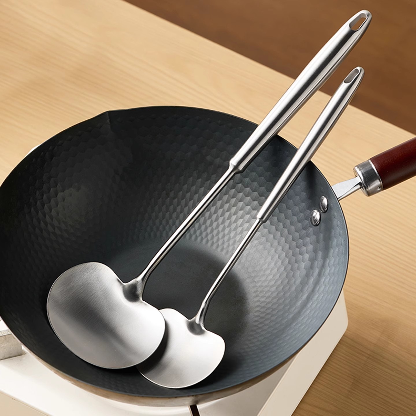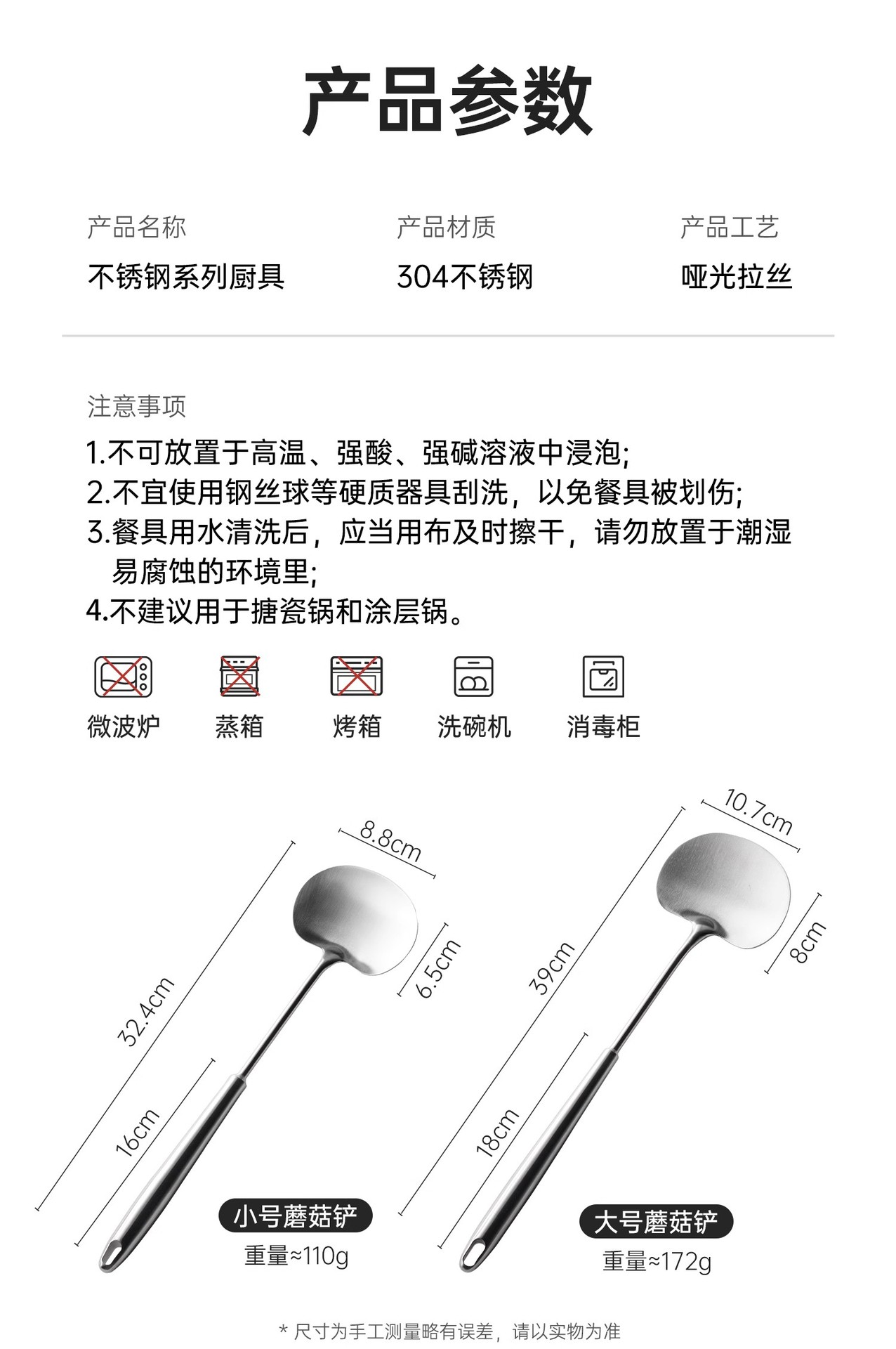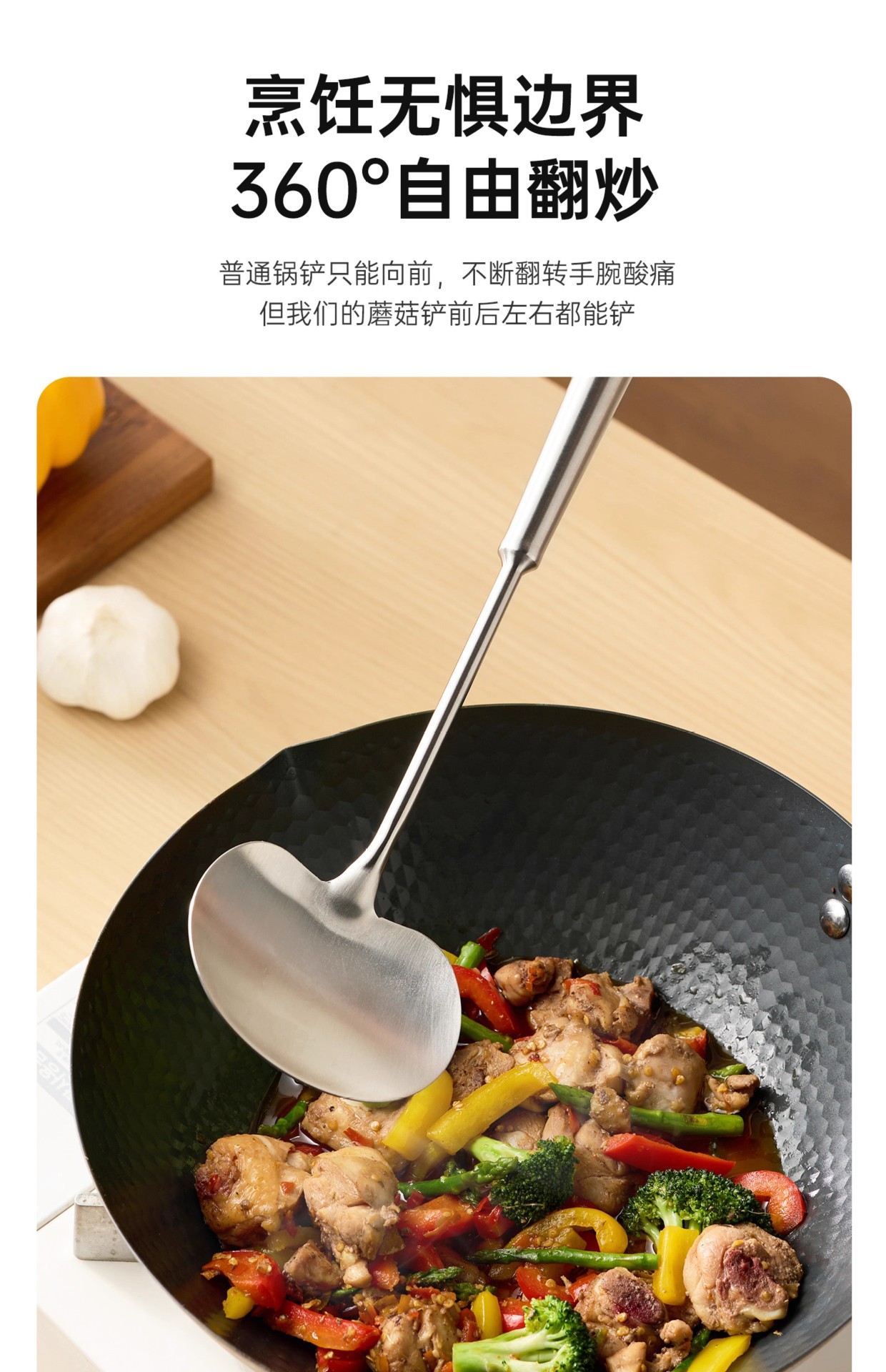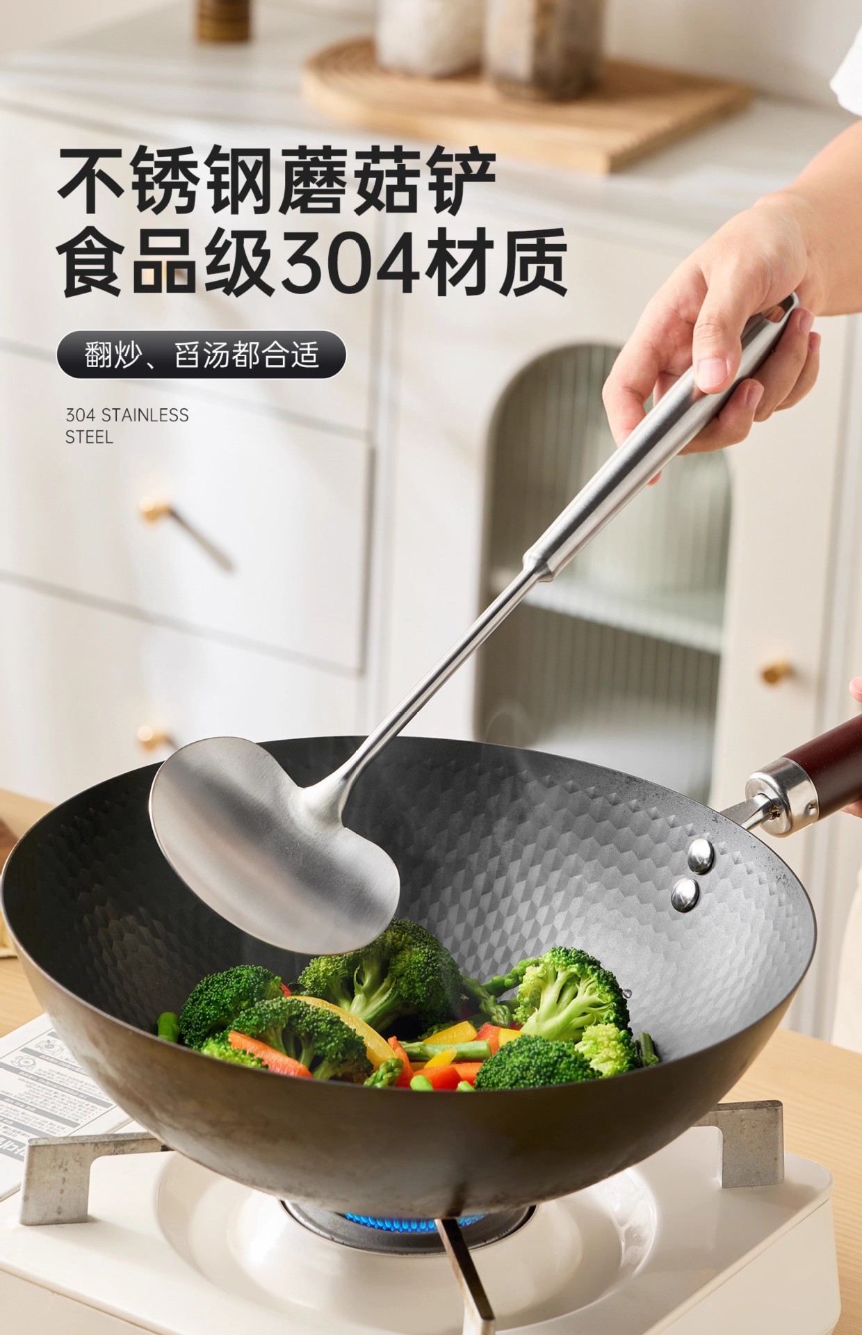 두꺼운 304 스테인레스 스틸 버섯 주걱 가정용 주걱 세트 주방 화상 방지 프라이팬 주걱 올인원 올 스틸 프라이팬 주걱