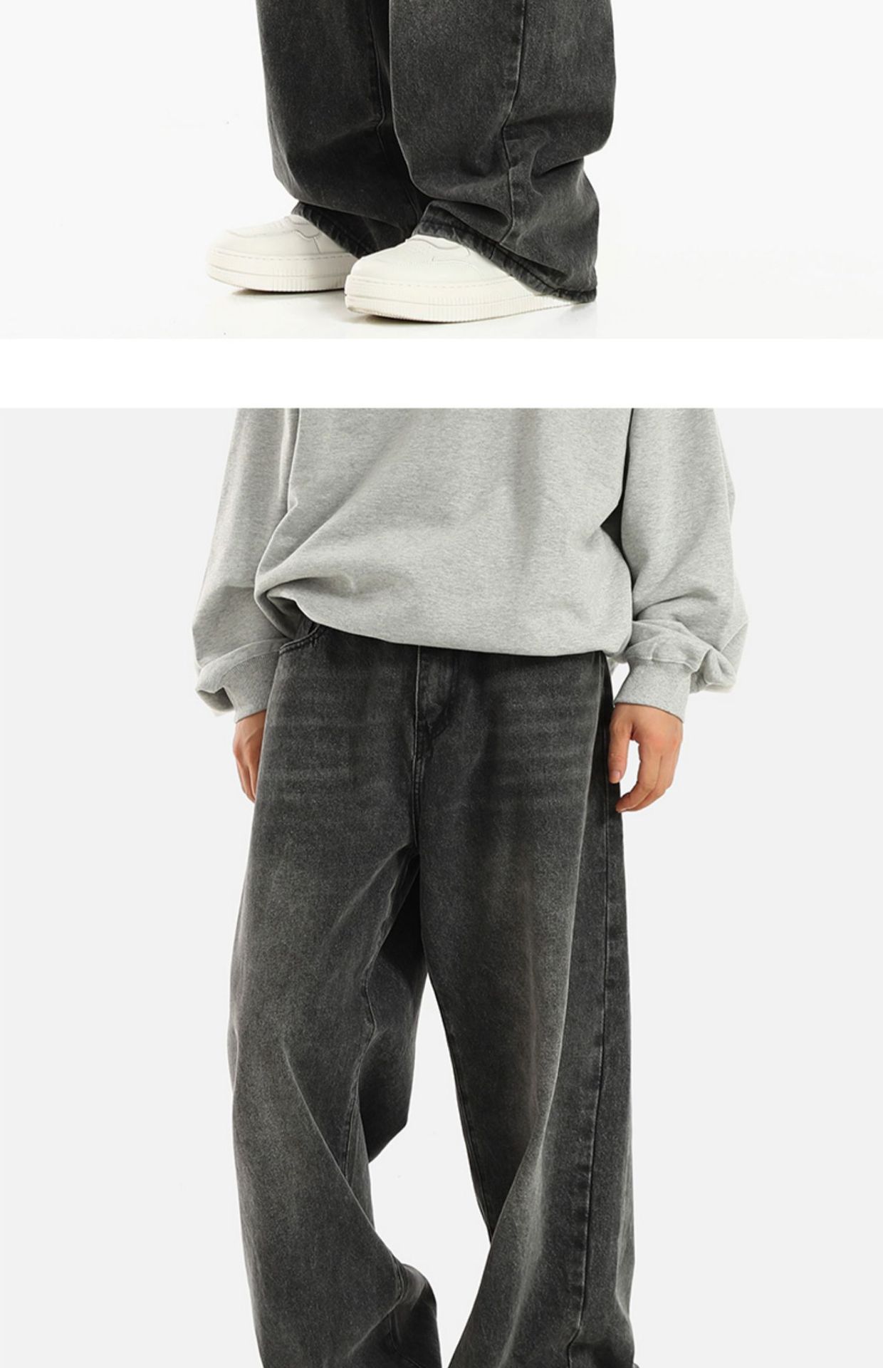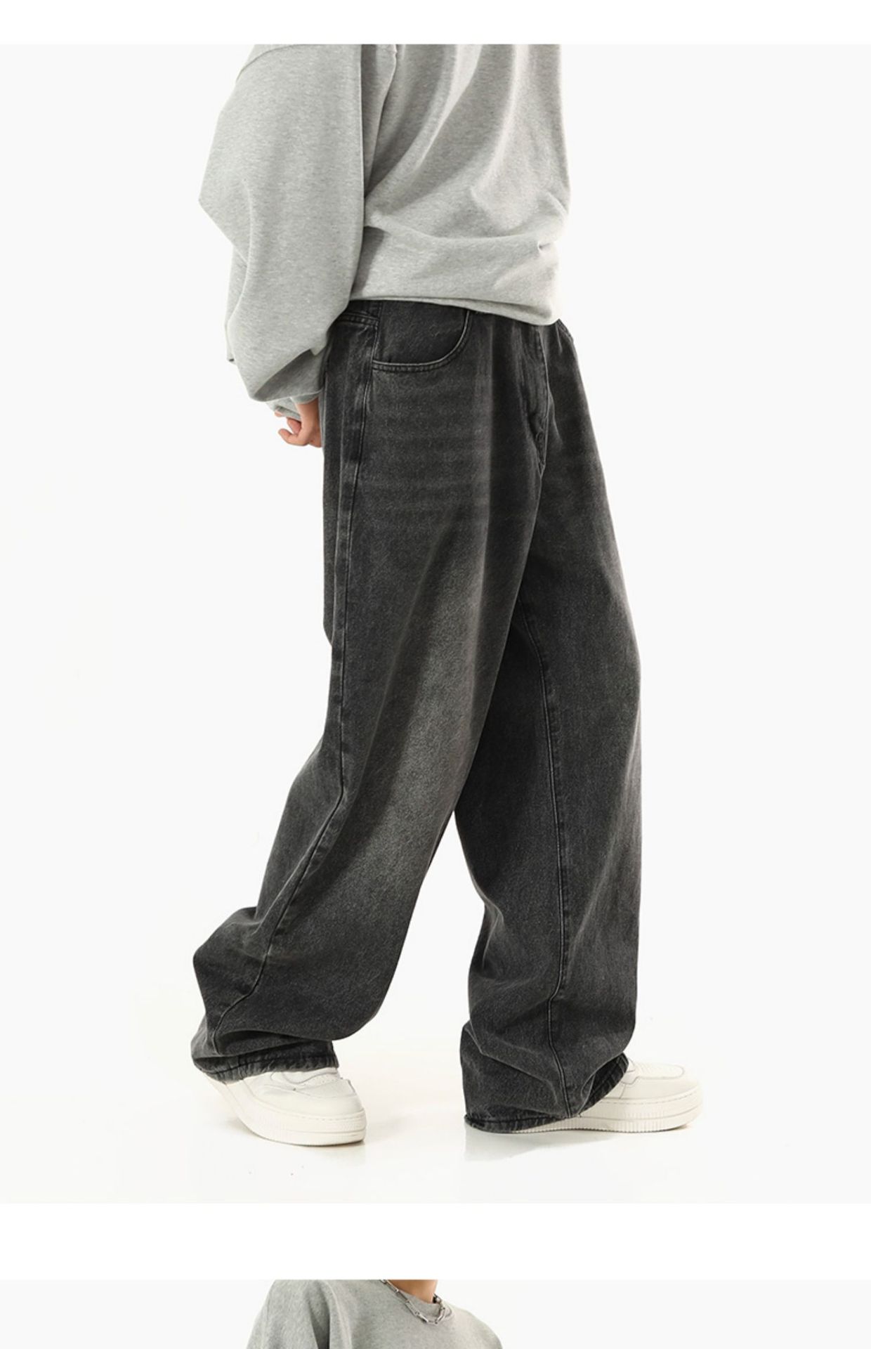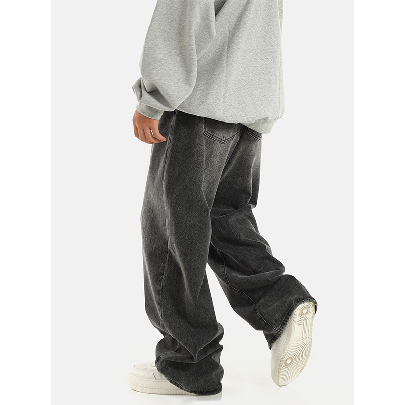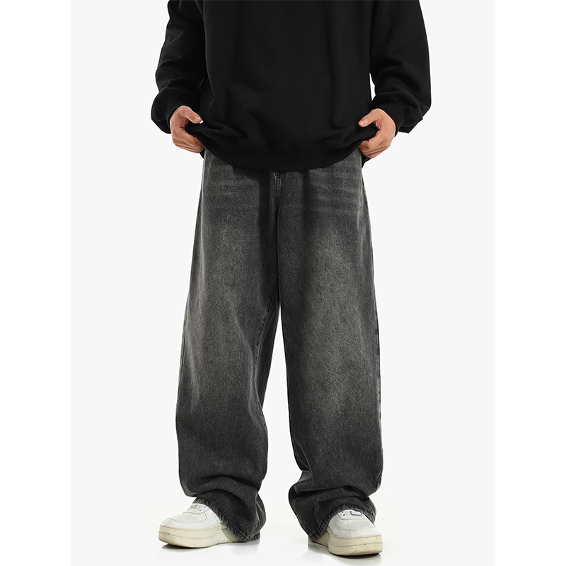 크로스보더 와이드 레그 블랙 그레이 청바지 남성 루즈한 레트로 캐주얼 팬츠 하이 스트리트 트렌디 브랜드 바이브 스타일 드레이프 스트레이트 팬츠