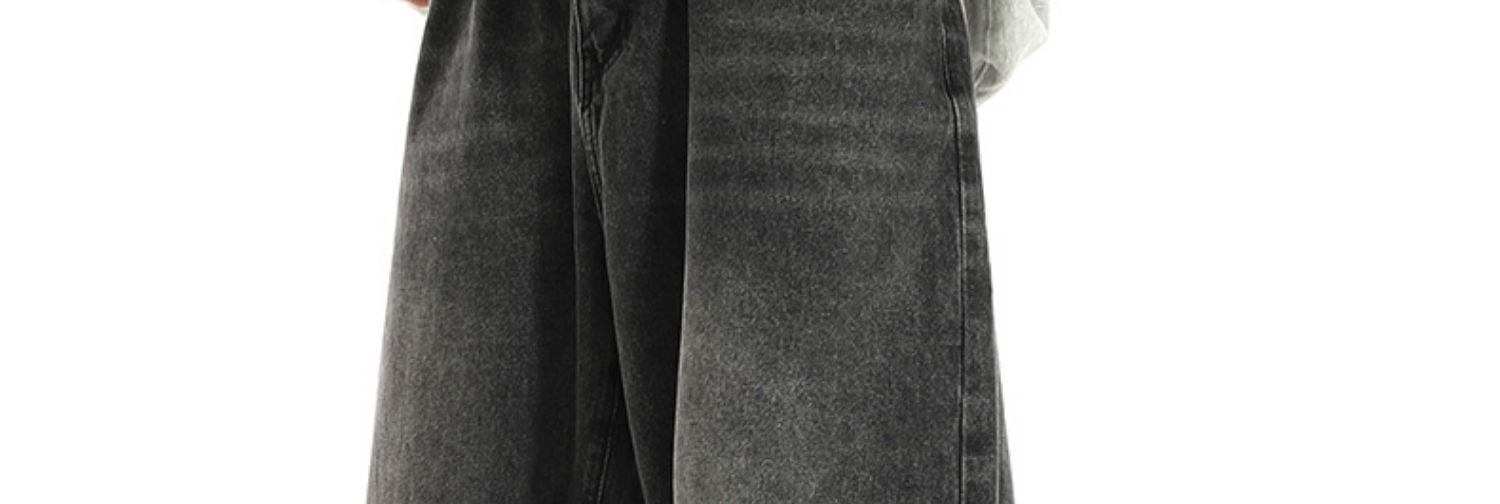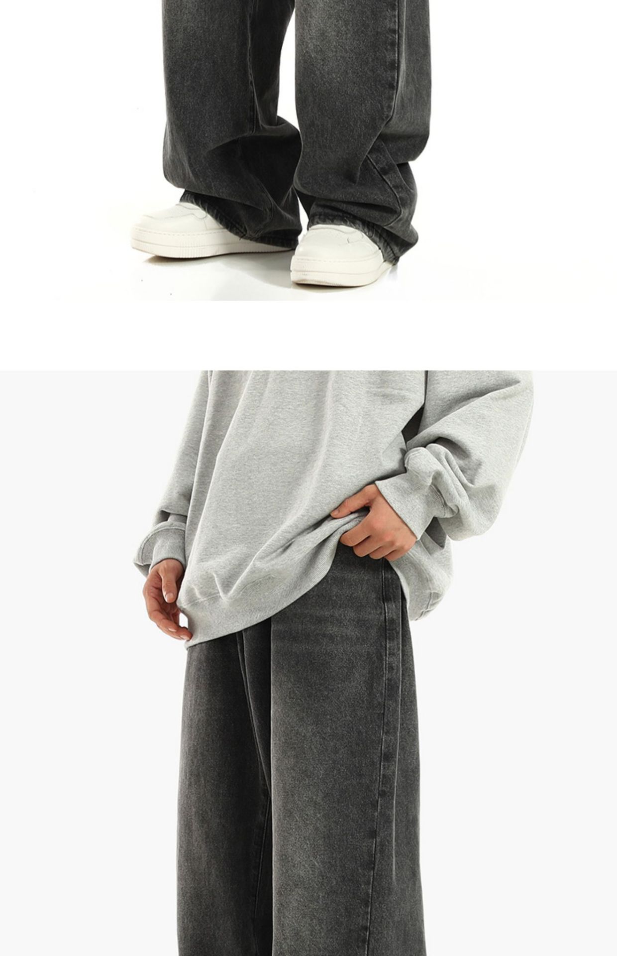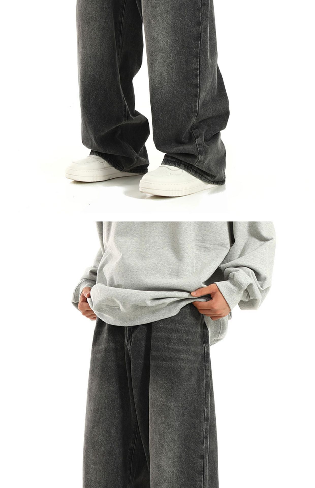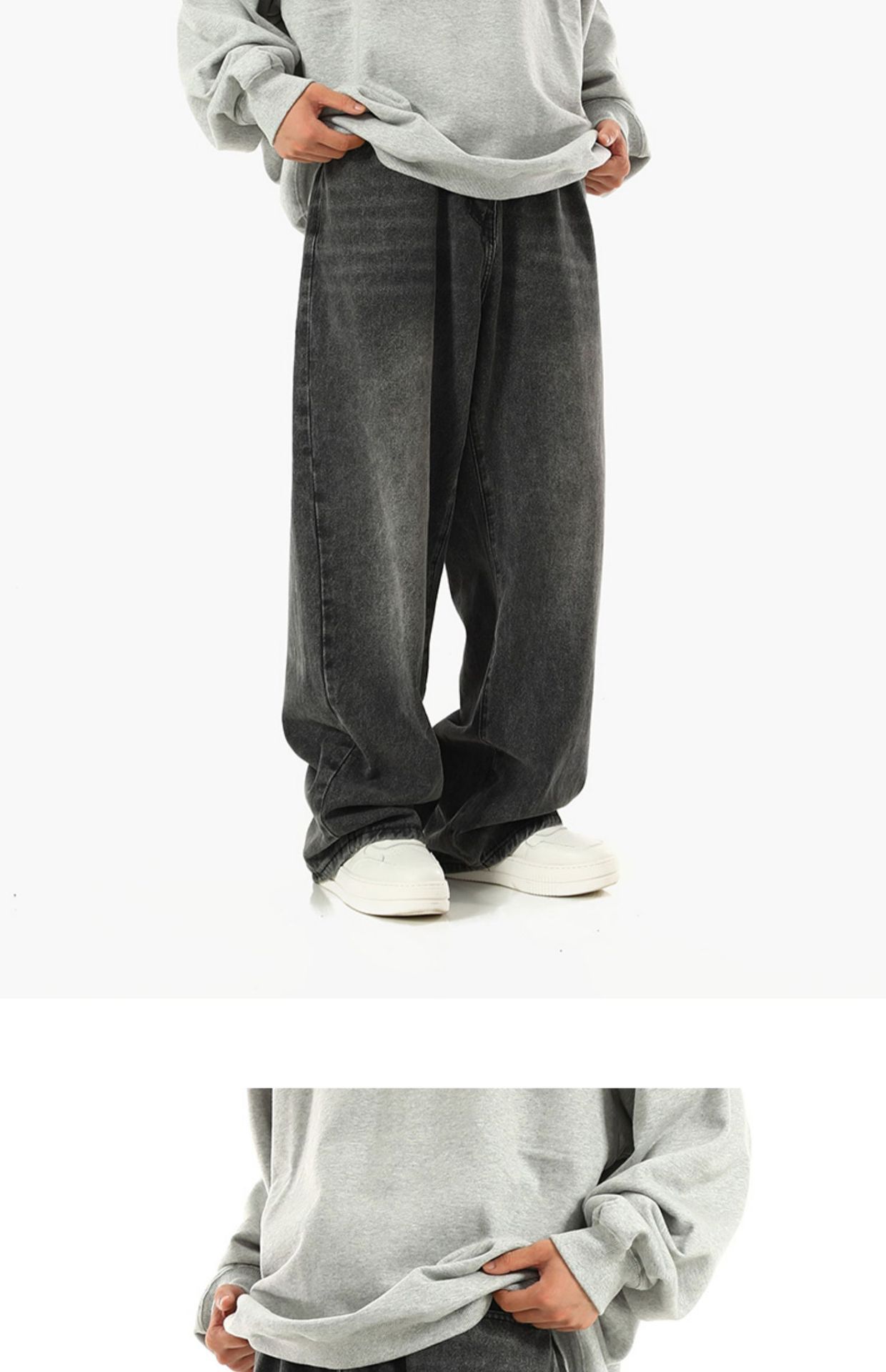 크로스보더 와이드 레그 블랙 그레이 청바지 남성 루즈한 레트로 캐주얼 팬츠 하이 스트리트 트렌디 브랜드 바이브 스타일 드레이프 스트레이트 팬츠