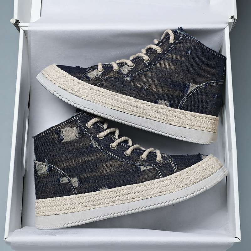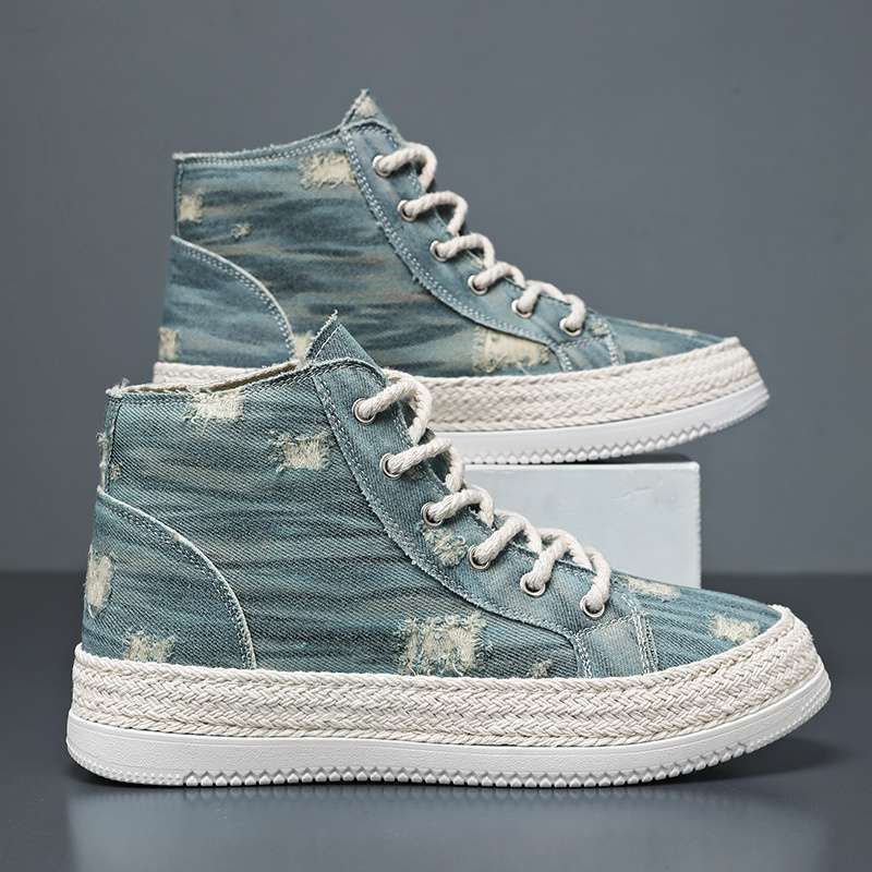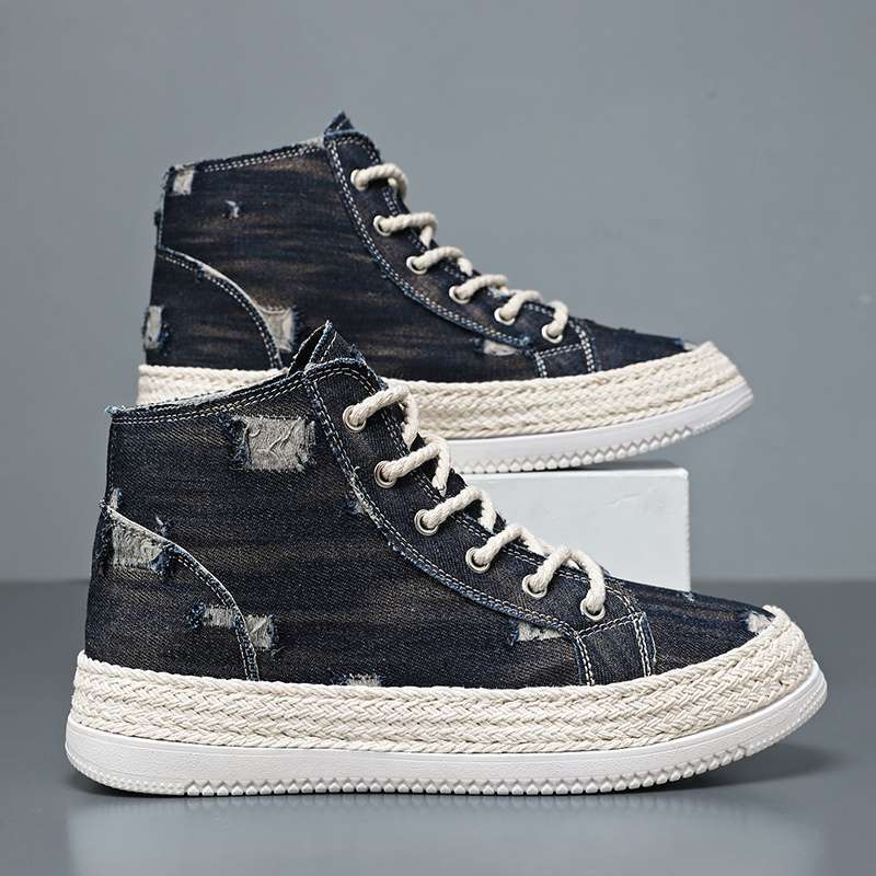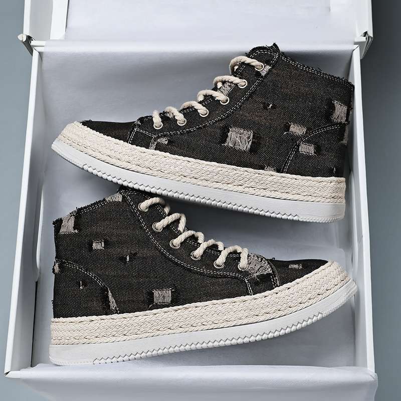 남성 신발 2025 여름 새 운동화 통기성 유행 하이 탑 캐주얼 유행 신발 남성 미끄럼 방지 스포츠 다목적 캔버스 신발