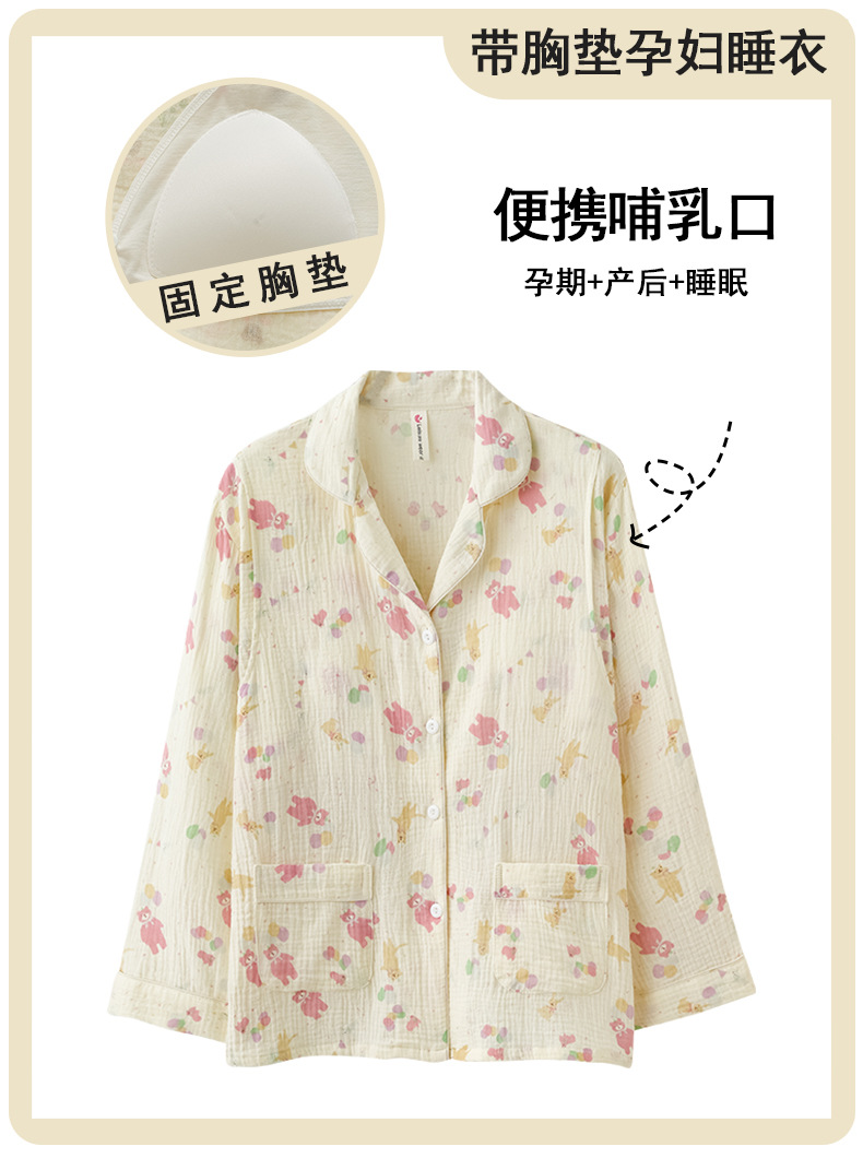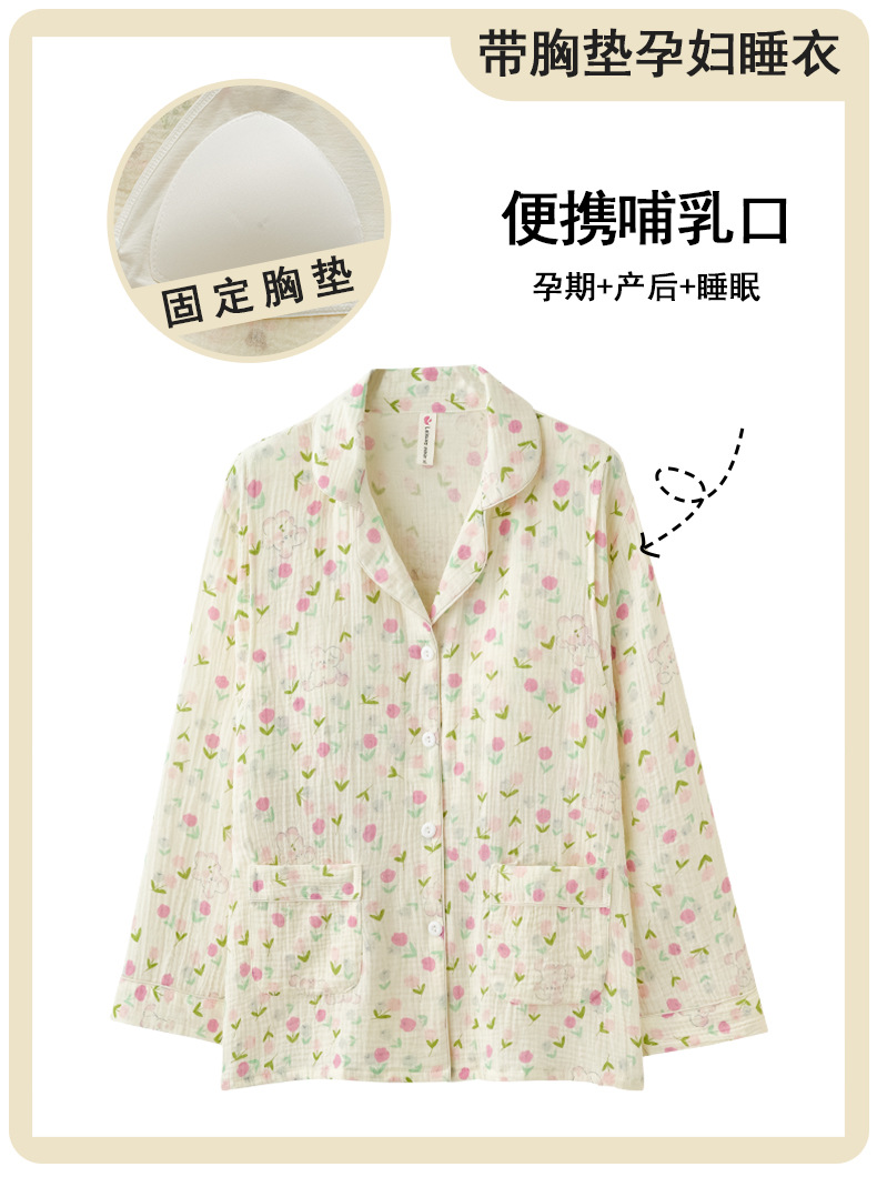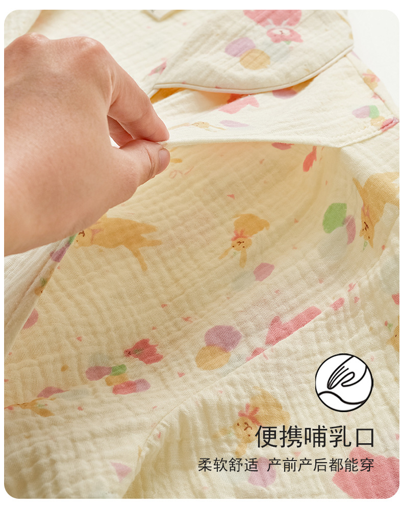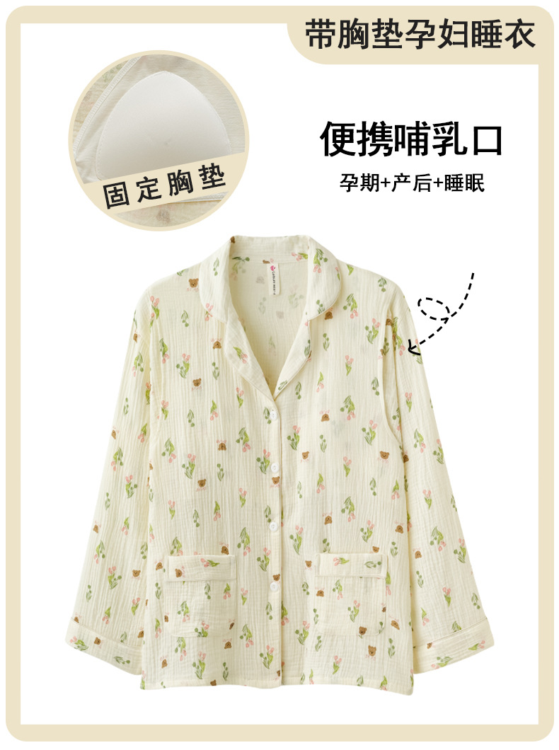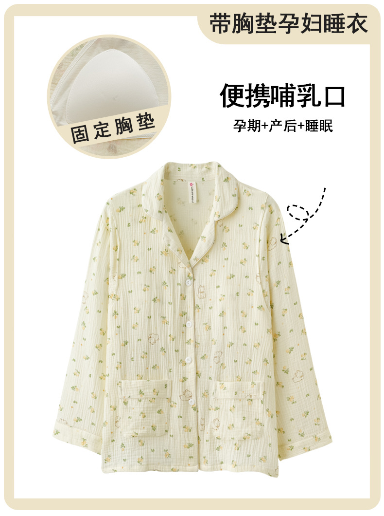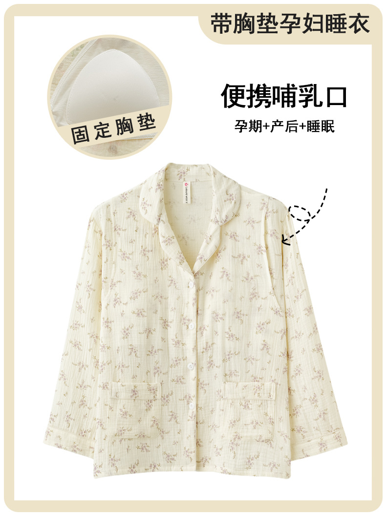 임산부를 위한 가슴 패드가 있는 크로스보더 베이스 면 거즈 잠옷, 여름용 얇은 산후 및 수유복, 원피스 탑