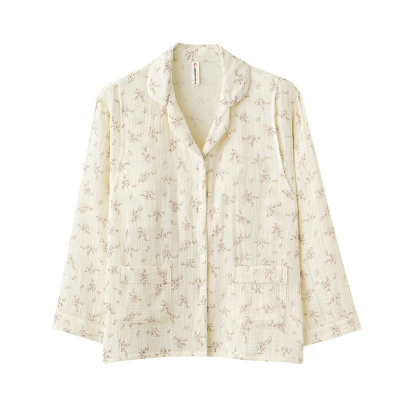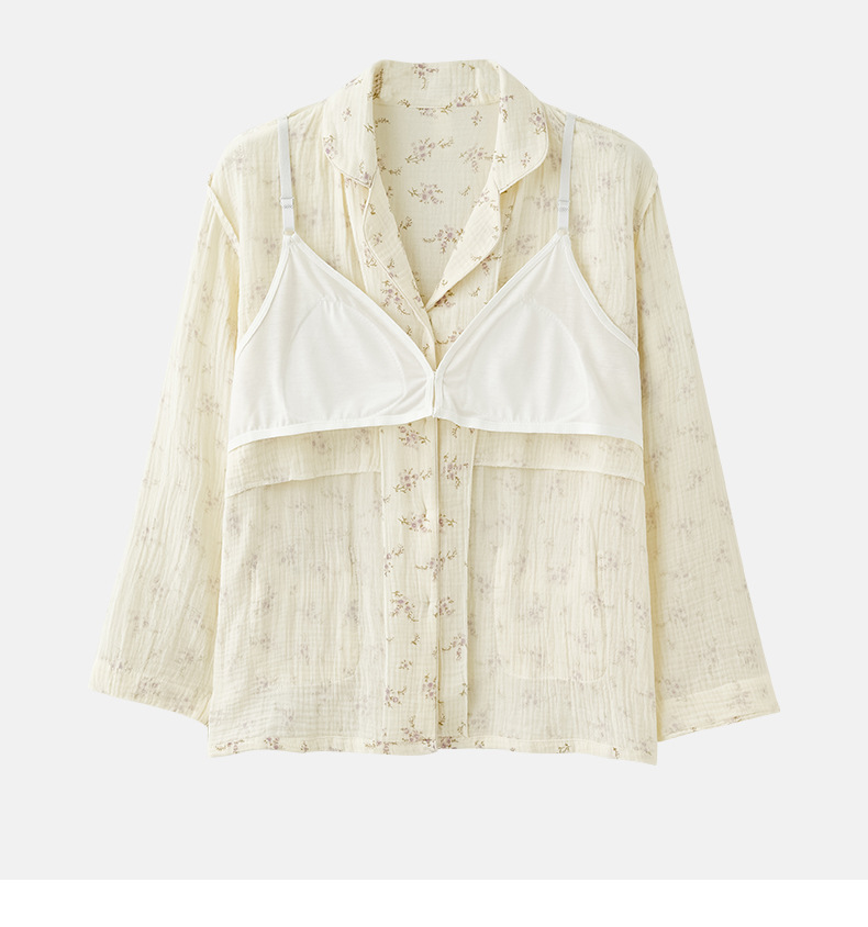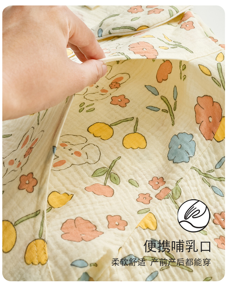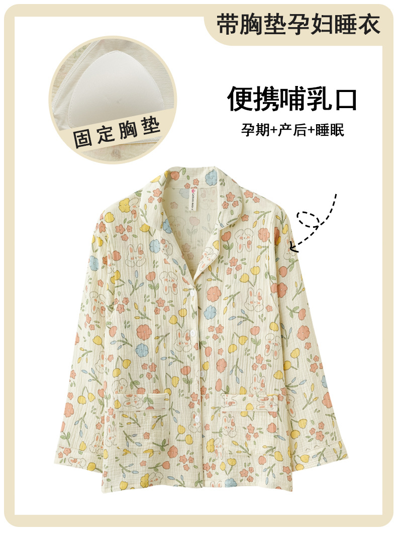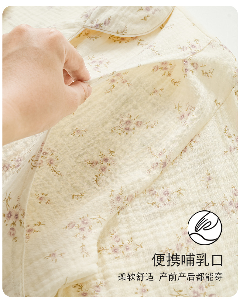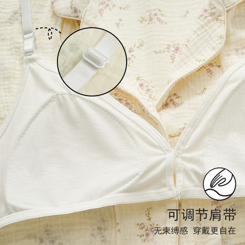 임산부를 위한 가슴 패드가 있는 크로스보더 베이스 면 거즈 잠옷, 여름용 얇은 산후 및 수유복, 원피스 탑