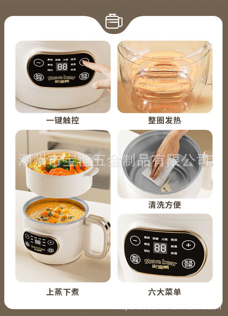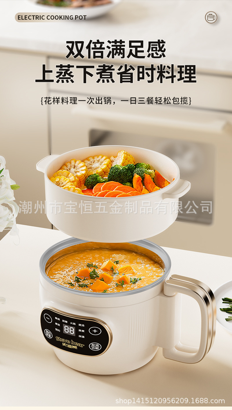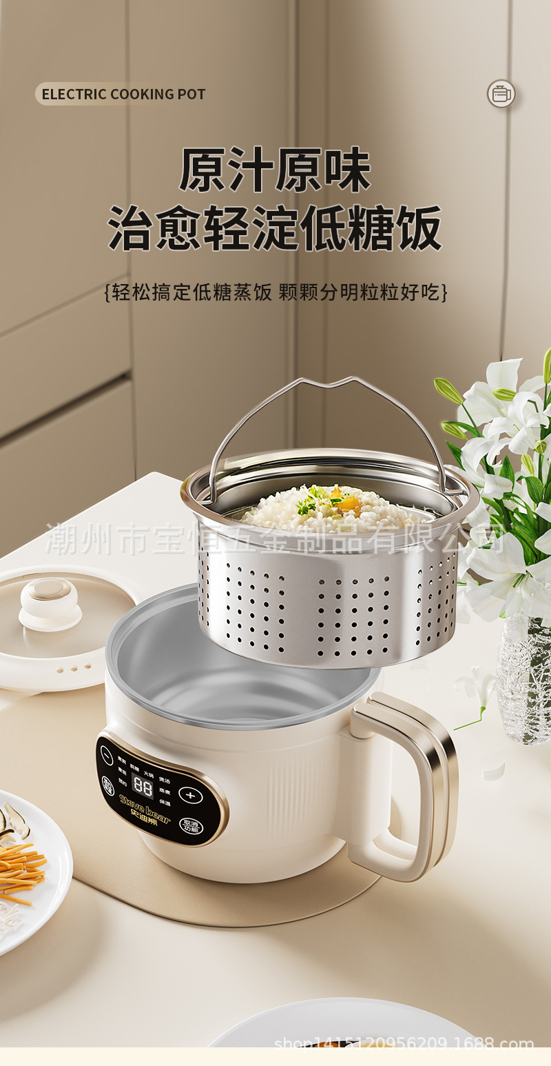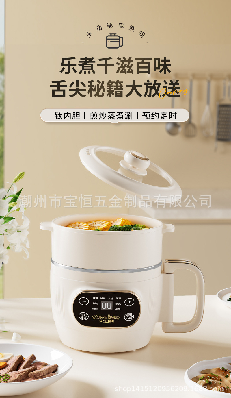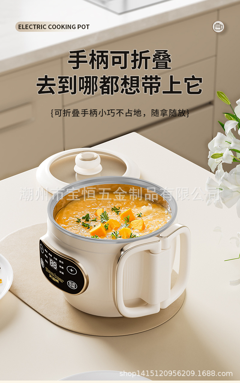 새로운 티타늄 라이너 2L 접이식 밥솥 전기 밥솥 소형 가정용 미니 찜 및 조리 올인원 다기능 전기 냄비
