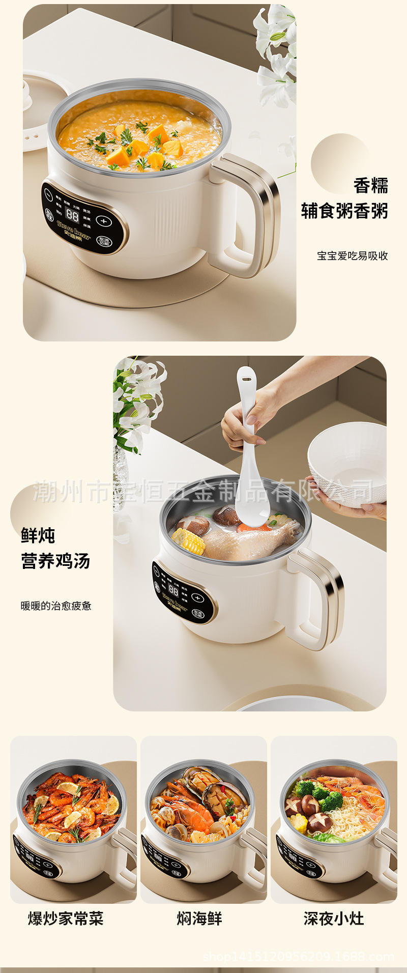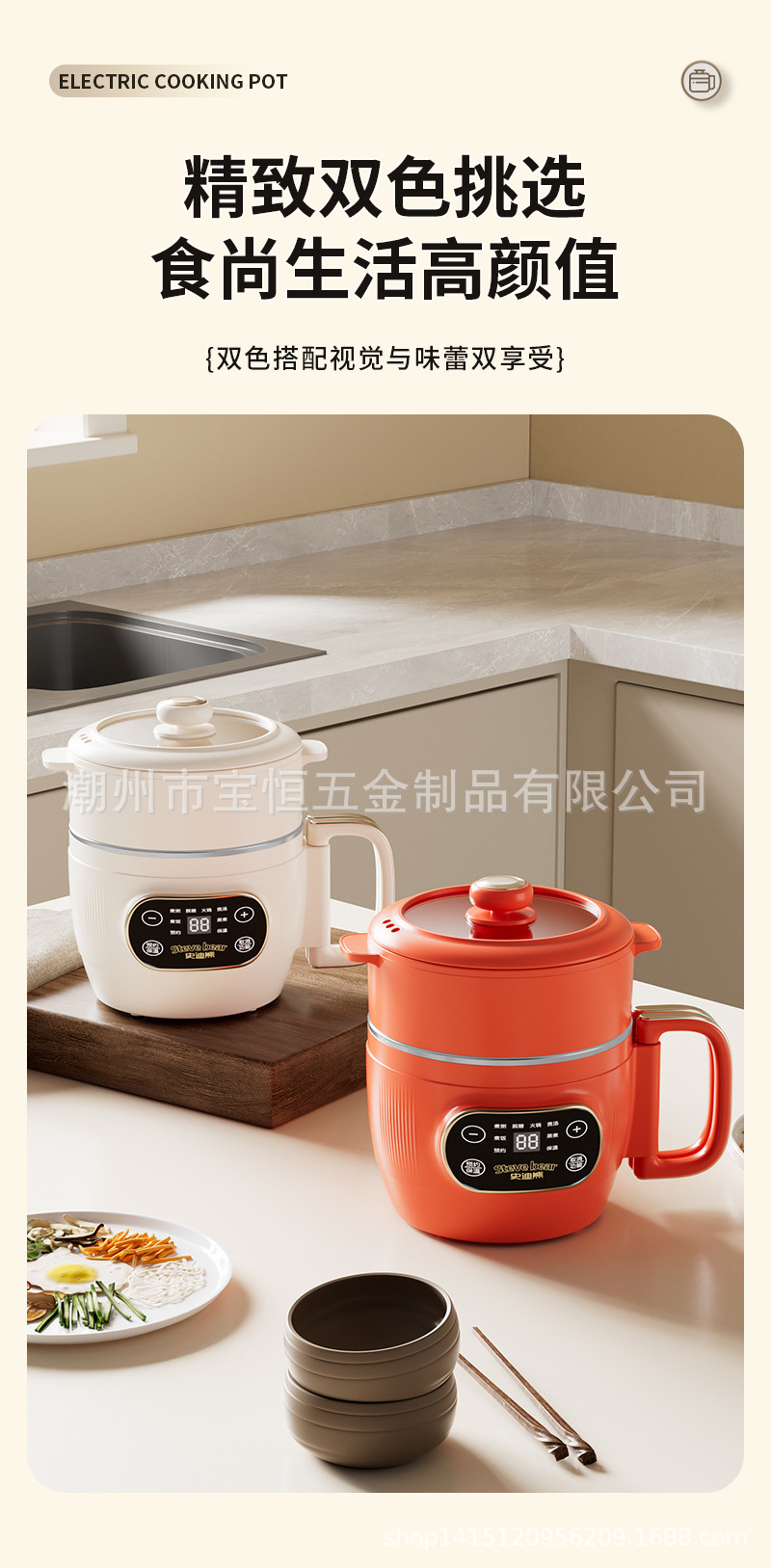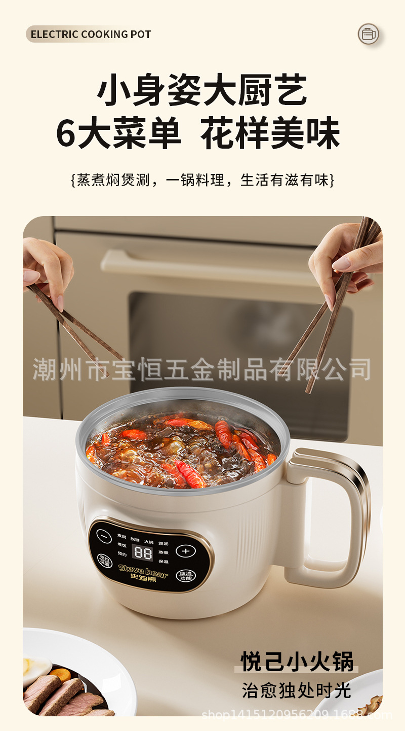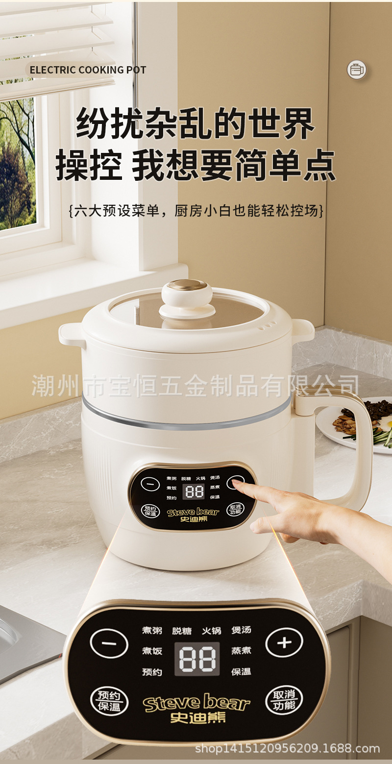 새로운 티타늄 라이너 2L 접이식 밥솥 전기 밥솥 소형 가정용 미니 찜 및 조리 올인원 다기능 전기 냄비