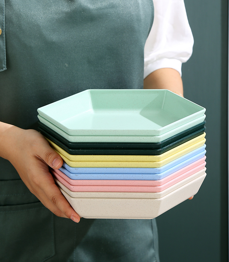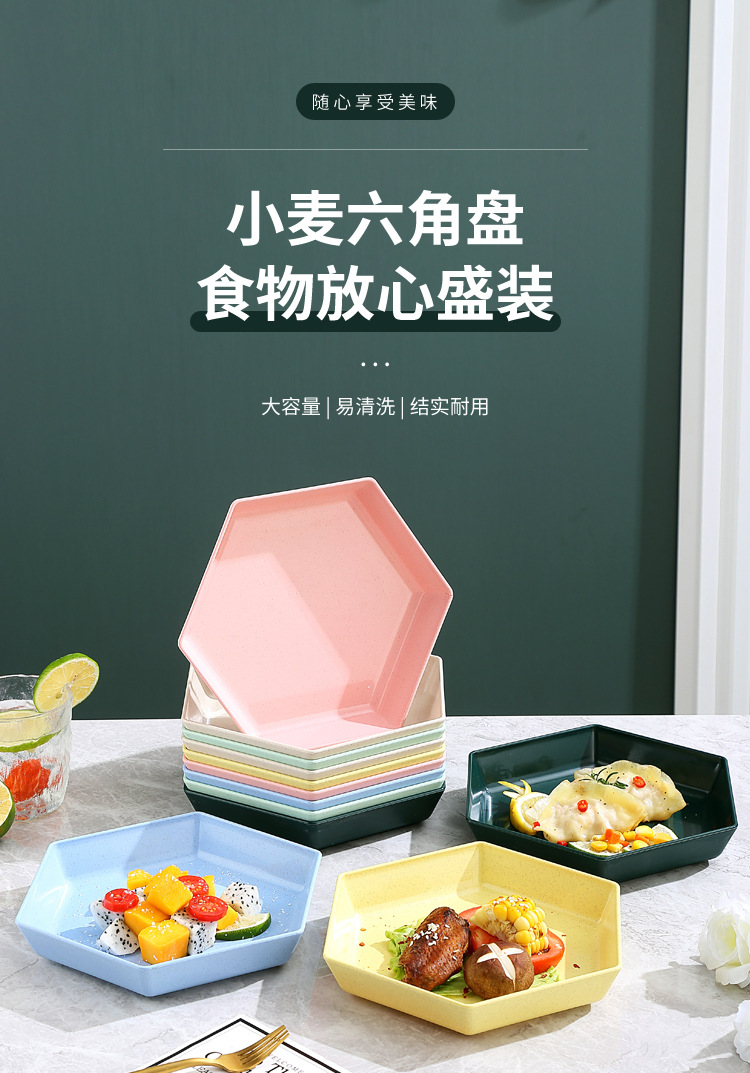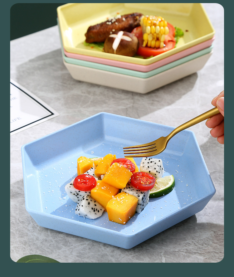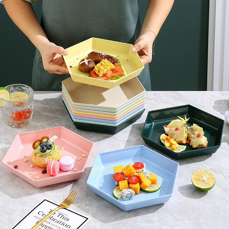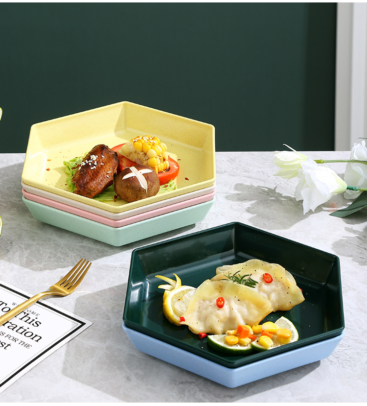 북유럽 접시 접시 가정용 아침 식사 플라스틱 과일 접시 식기 세트 상업용 육각 접시 크리 에이 티브 만두 접시