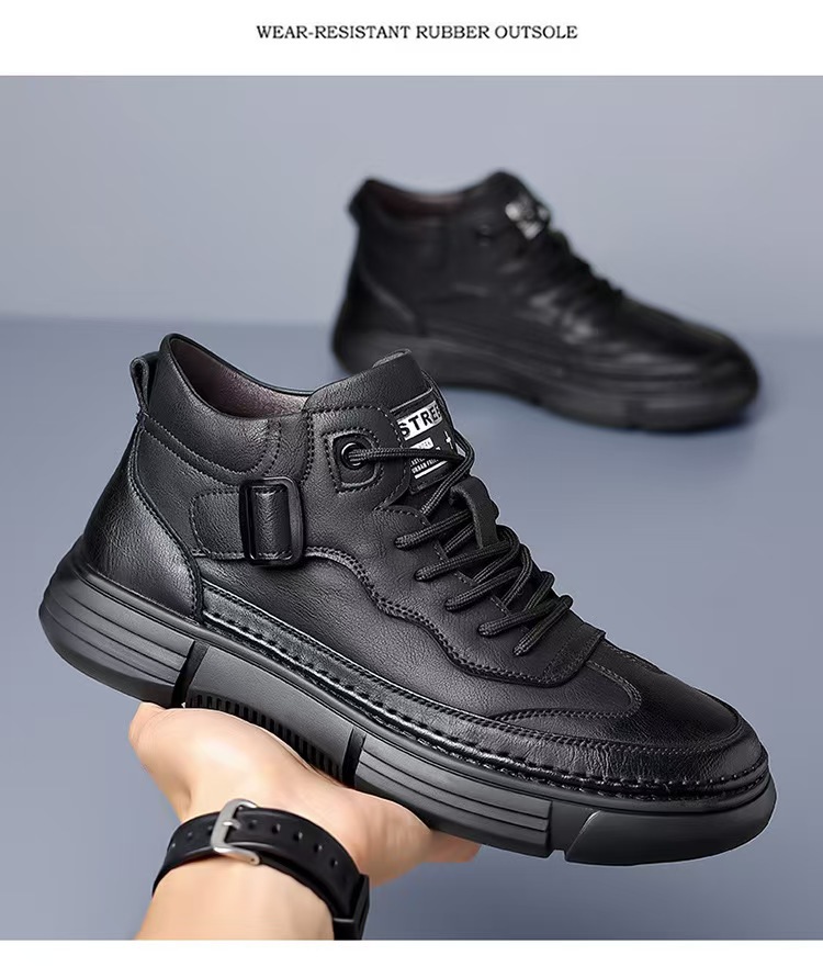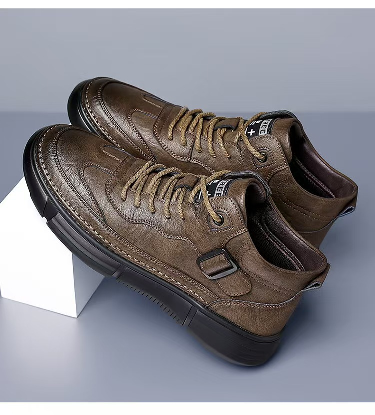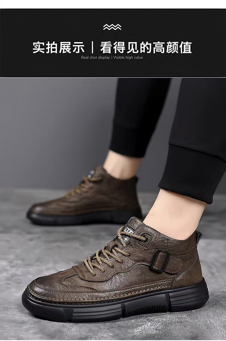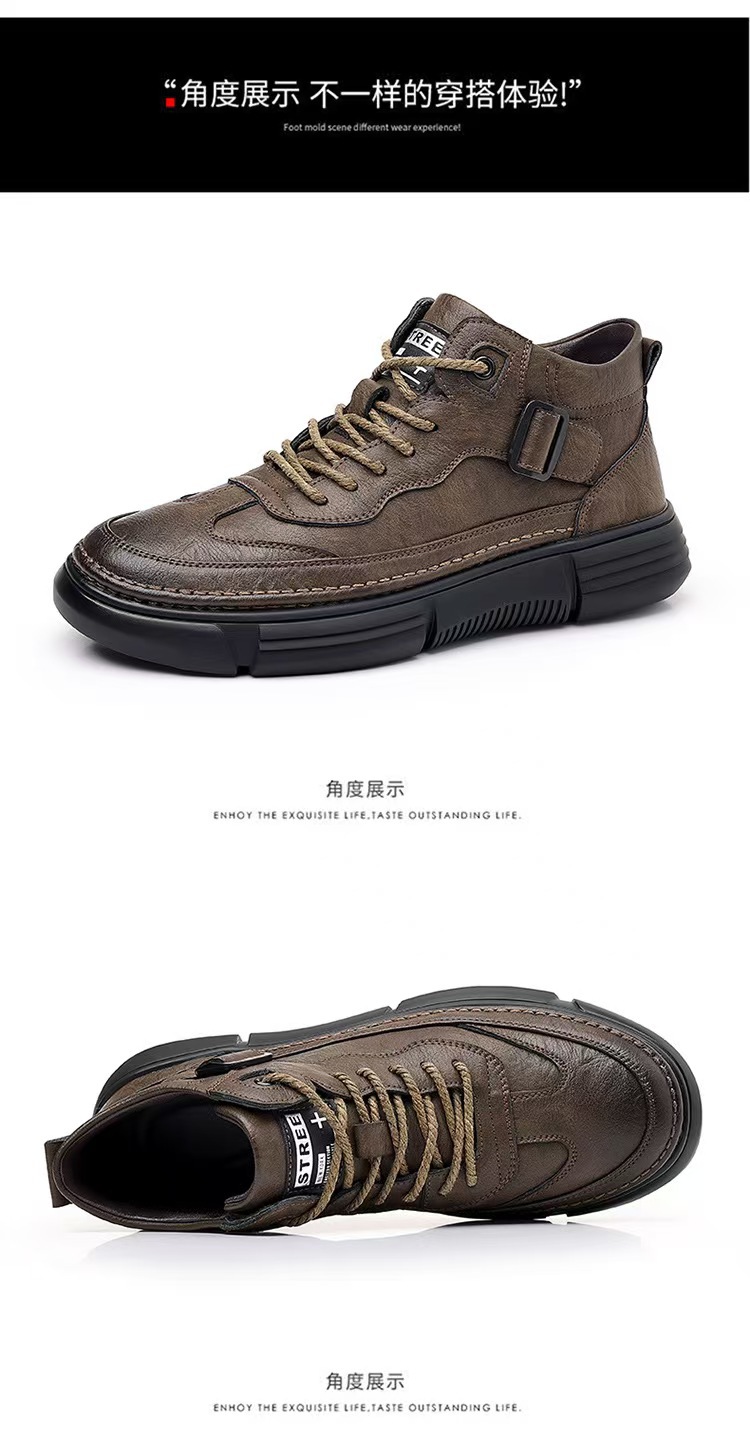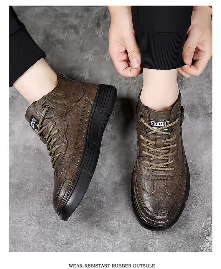 작업복 남성 2025 새로운 가을, 겨울 스포츠 및 레저 가죽 신발 하이 탑 운동화 남성용 부드러운 밑창 겨울 벨벳 마틴 부츠