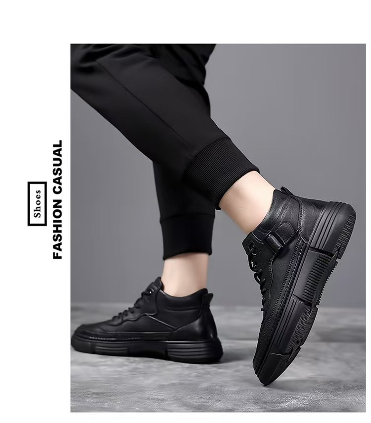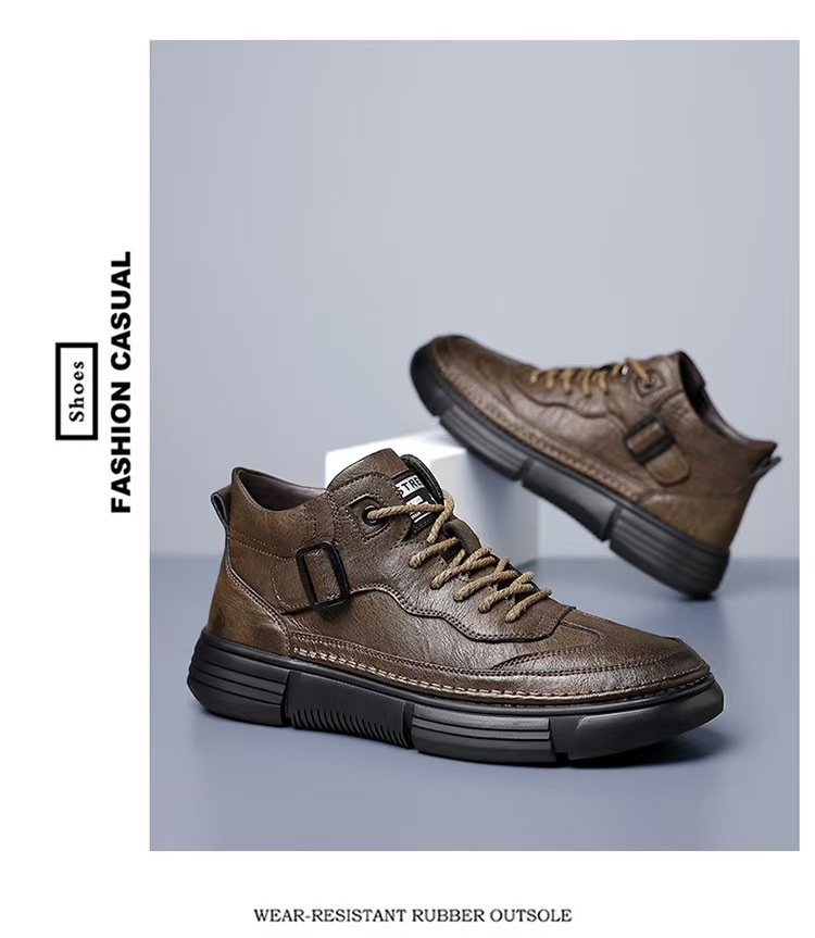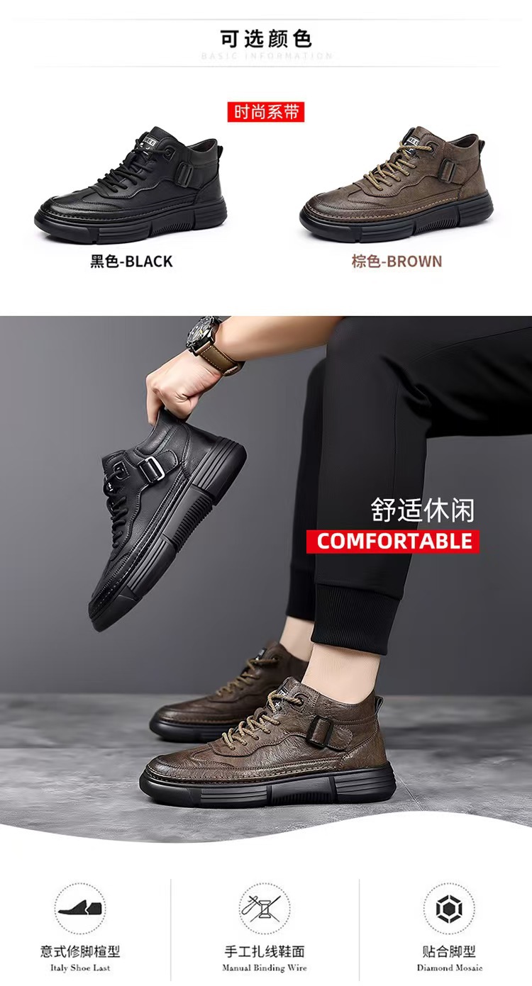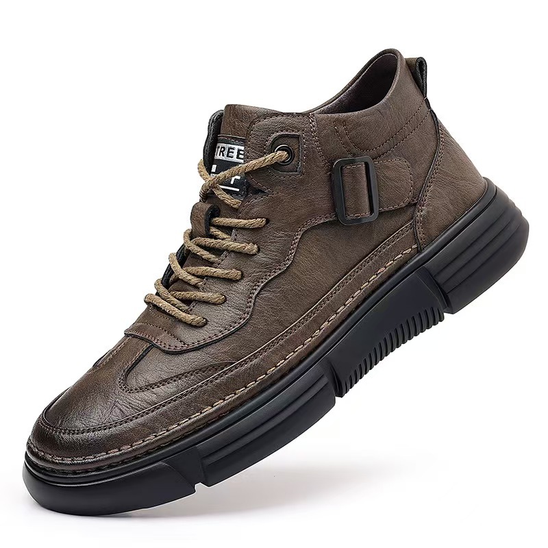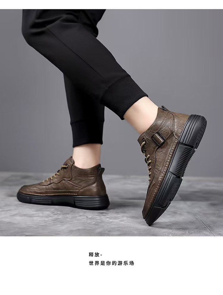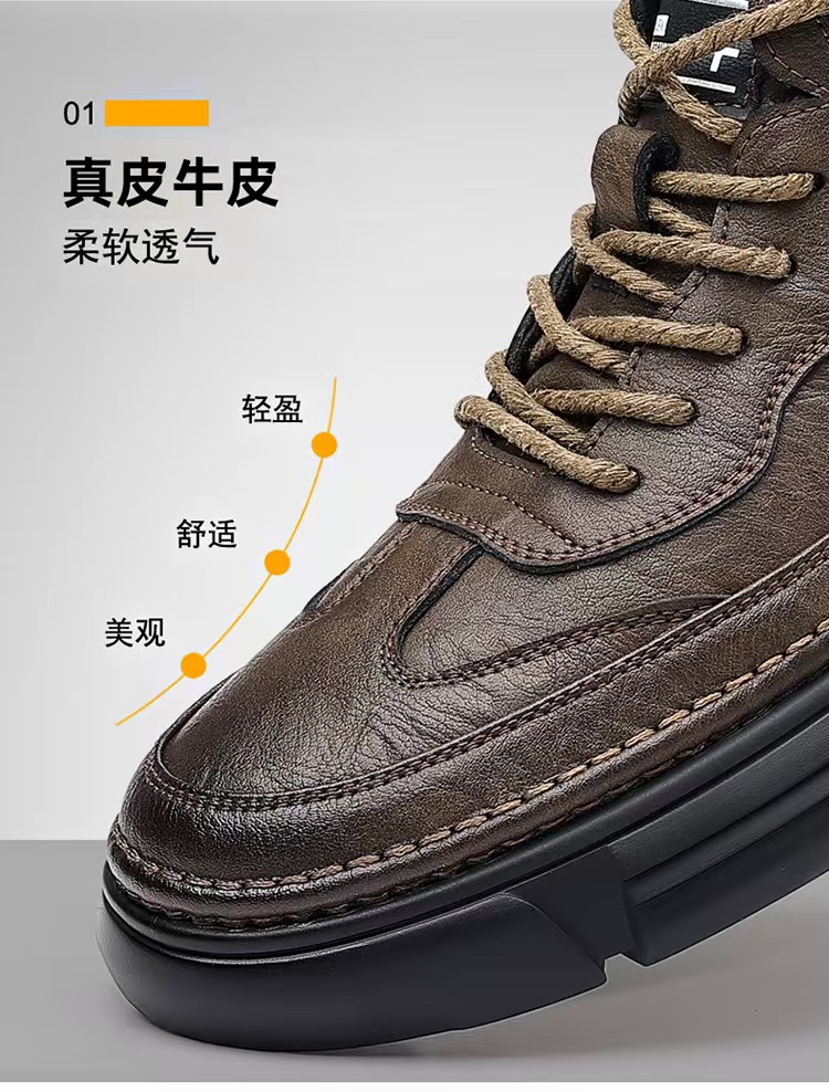 작업복 남성 2025 새로운 가을, 겨울 스포츠 및 레저 가죽 신발 하이 탑 운동화 남성용 부드러운 밑창 겨울 벨벳 마틴 부츠