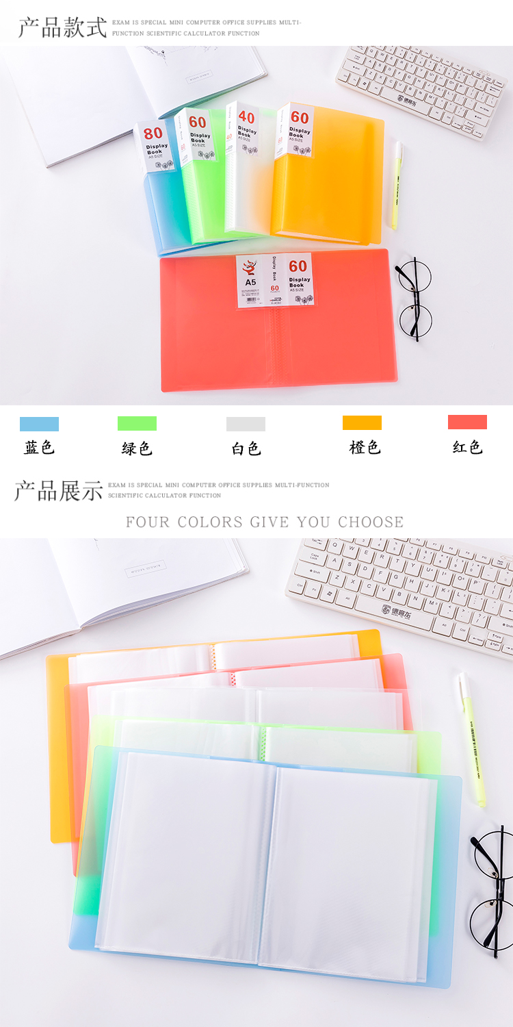 A5 폴더 책 투명 삽입 작은 정보 책 8inch 사진 앨범 클립 사무용품 보관 영수증 클립 도매