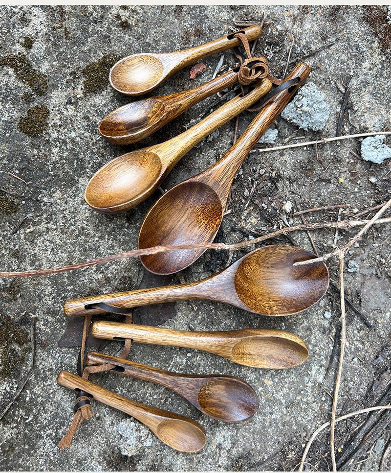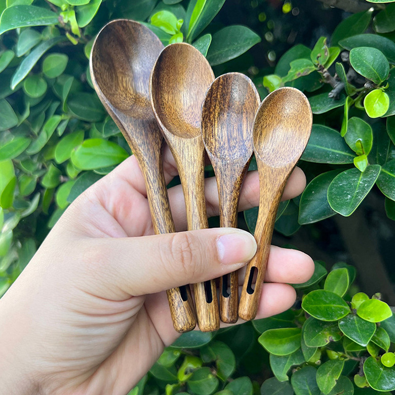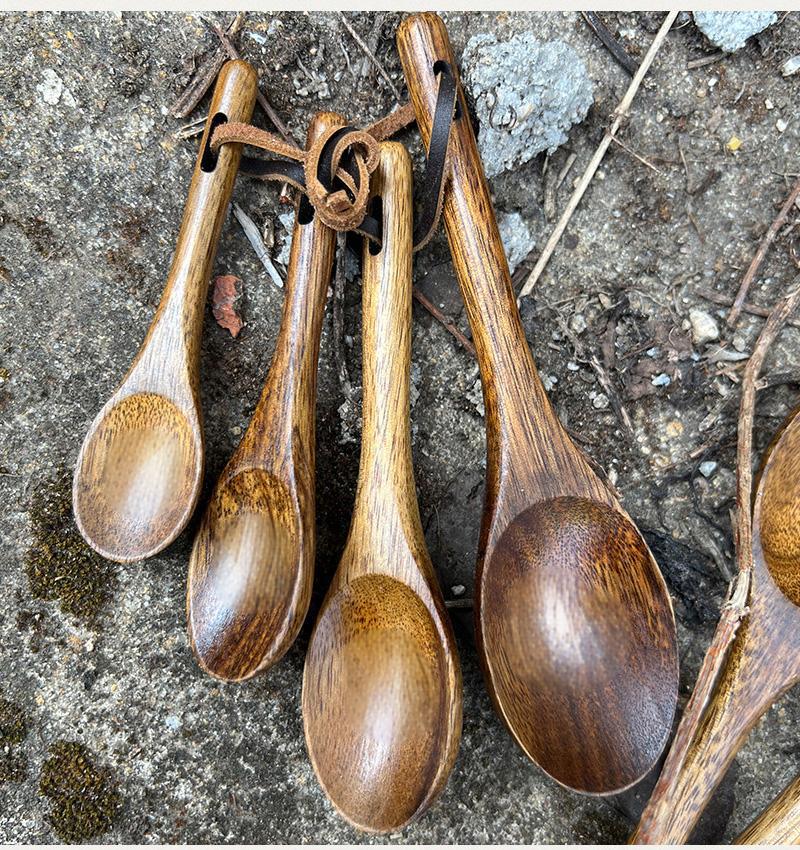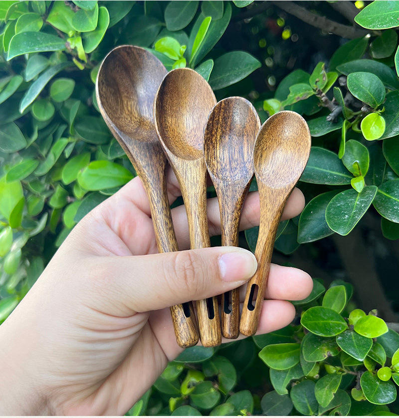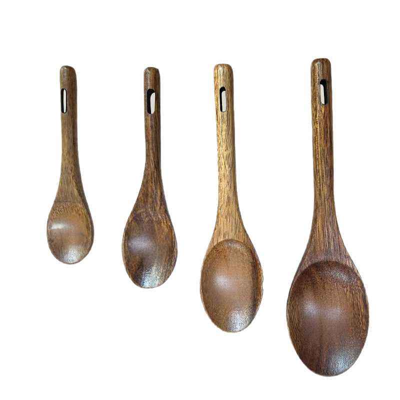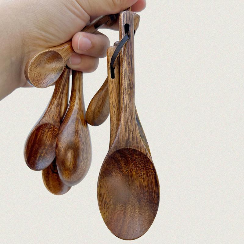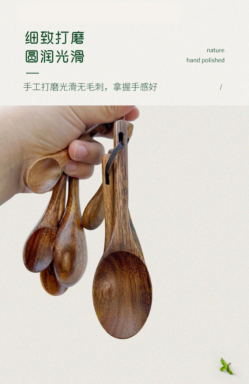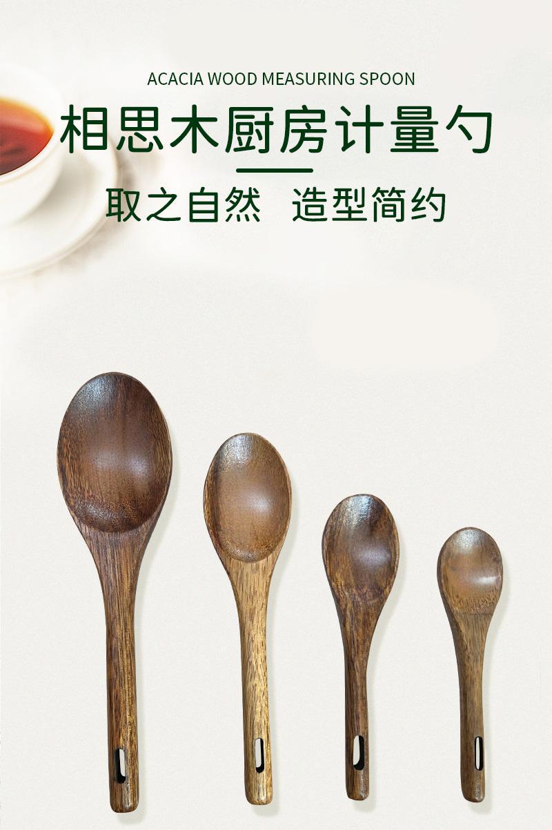 아카시아 나무 계량 스푼 계량 컵 세트 쌀 컵 티 스푼 커피 스푼 파우더 화상 방지 및 미끄럼 방지 단단한 나무 스푼 4 피스 세트