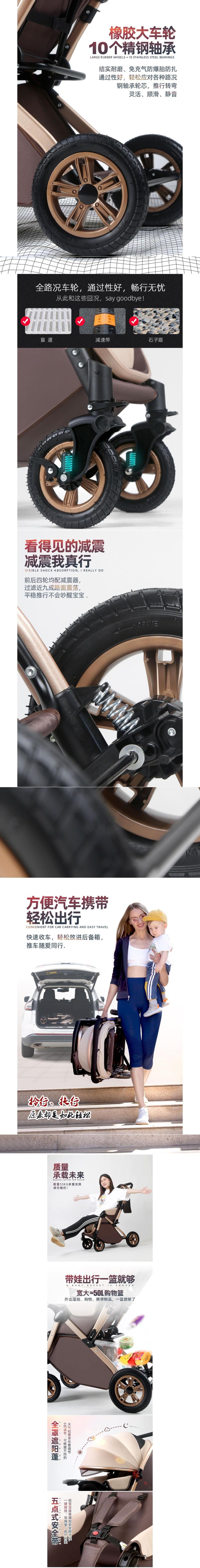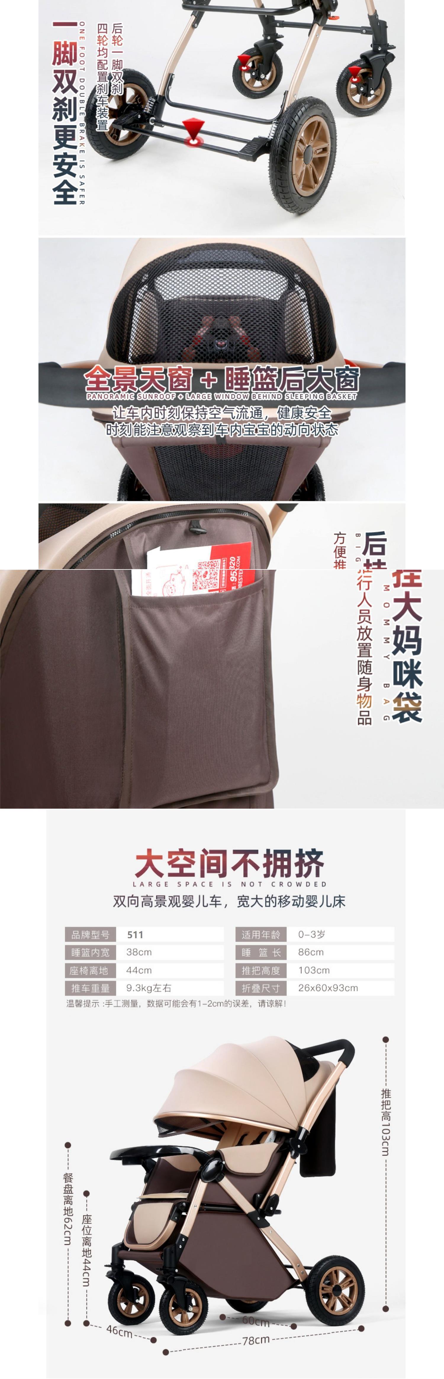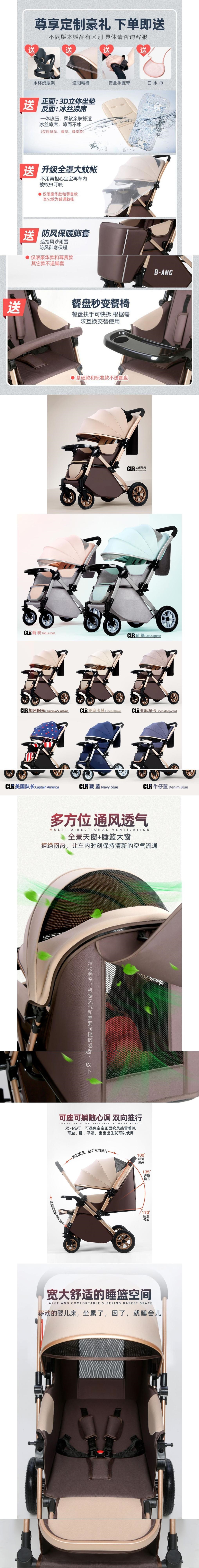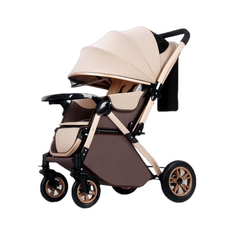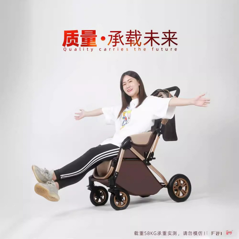 아기 유모차 하이 뷰는 앉고 누워서 아기를 산책시킬 수 있습니다. 충격 흡수 양방향 다기능 유모차 원클릭 접이식