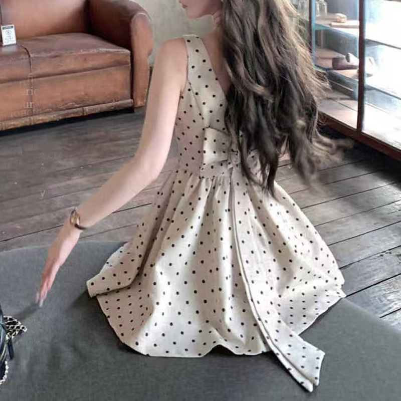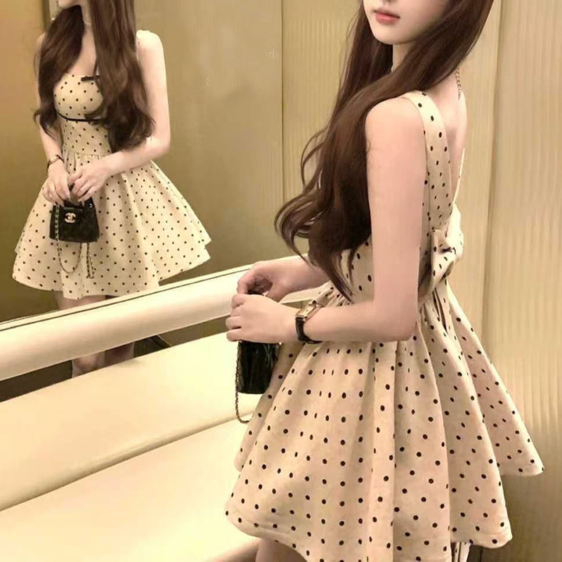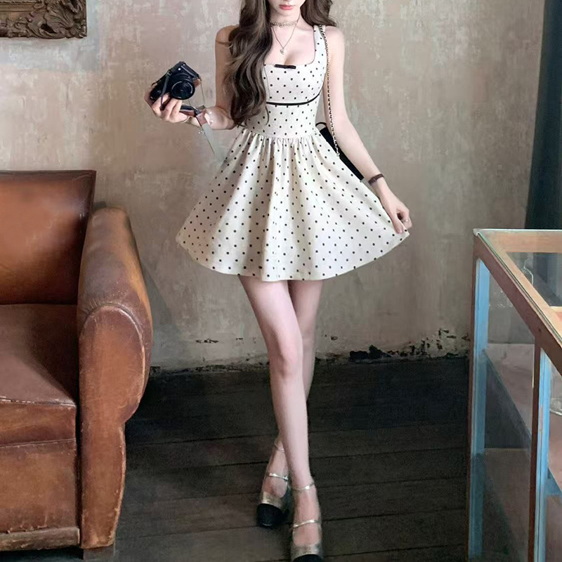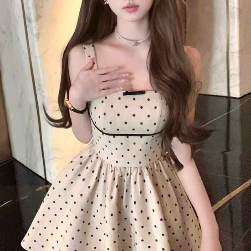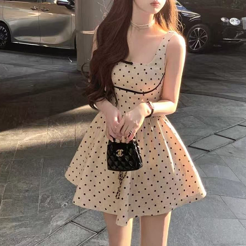 생일 드레스, 고급 프랑스 부잣집 딸 드레스, 조끼 드레스, 허리 도트무늬 서스펜더 드레스, 여성 여름