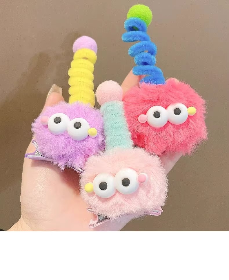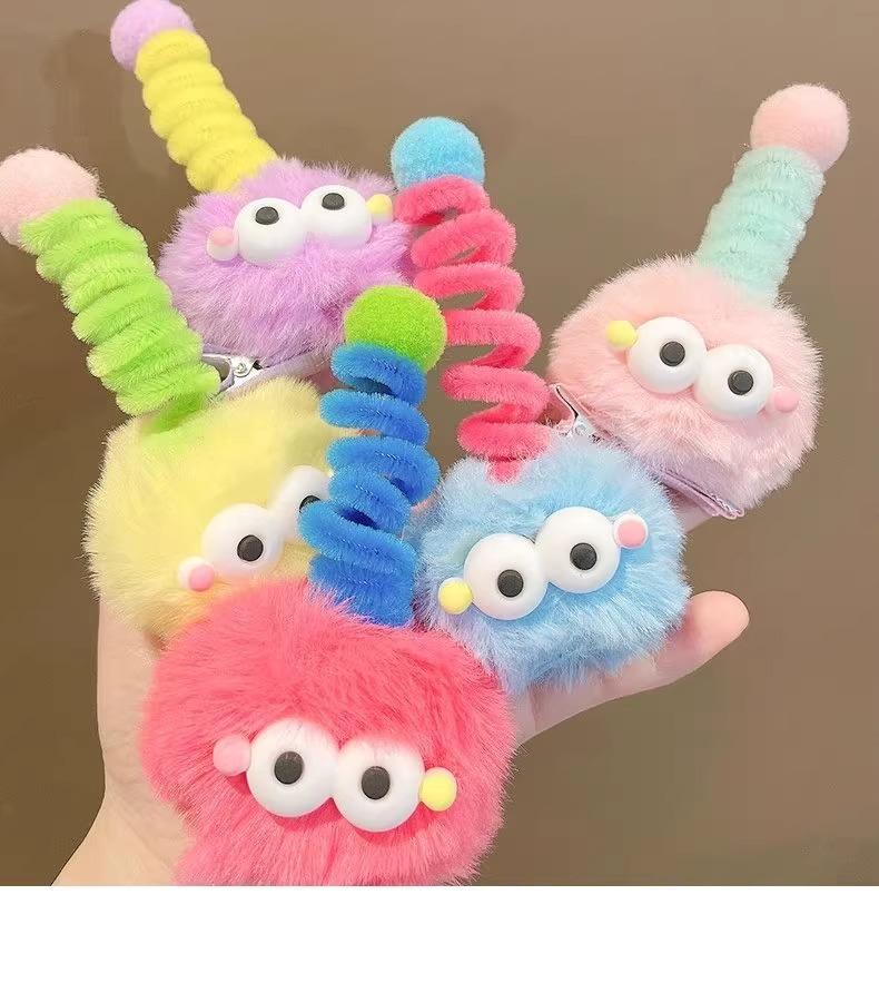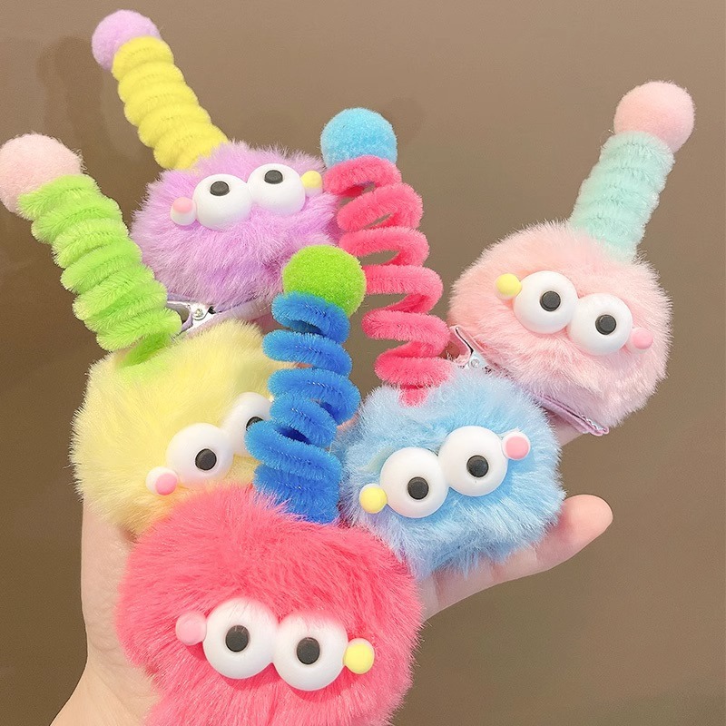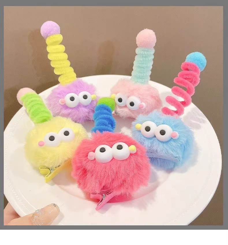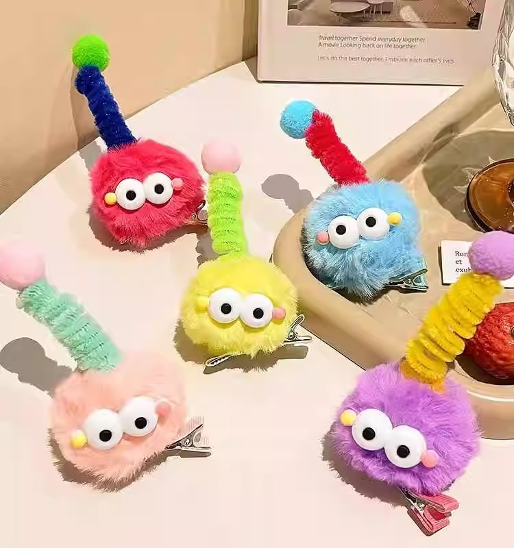 귀여운 털 볼 머리핀, 큰 눈, 못생긴 인형, 연탄 모자, 소녀 만화, 재미있는 맞춤형 오리 부리 클립