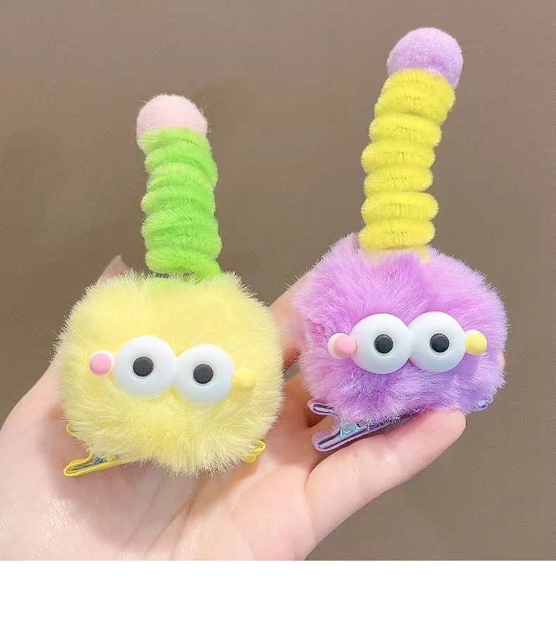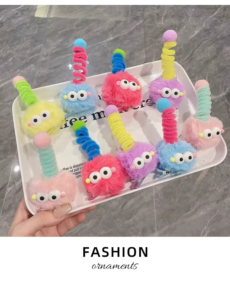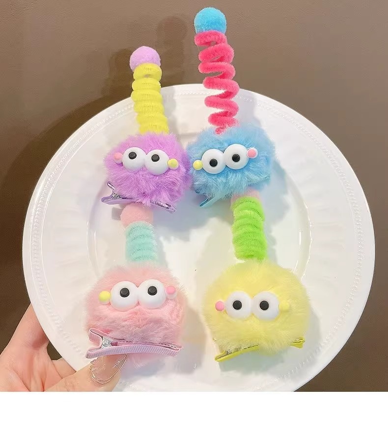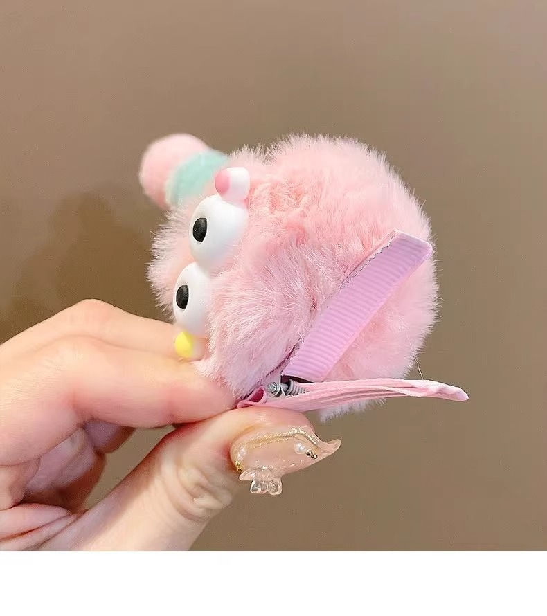 귀여운 털 볼 머리핀, 큰 눈, 못생긴 인형, 연탄 모자, 소녀 만화, 재미있는 맞춤형 오리 부리 클립