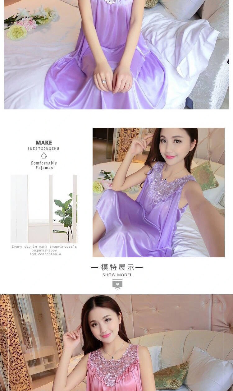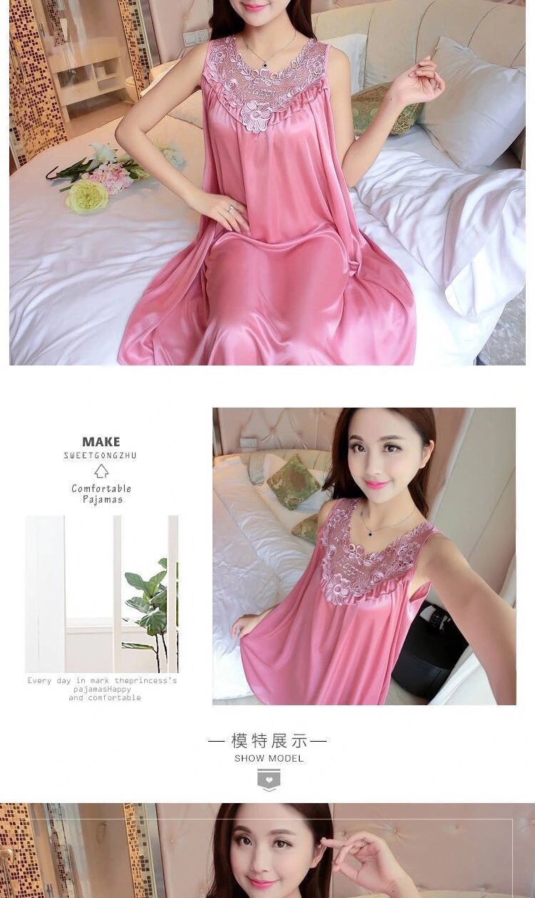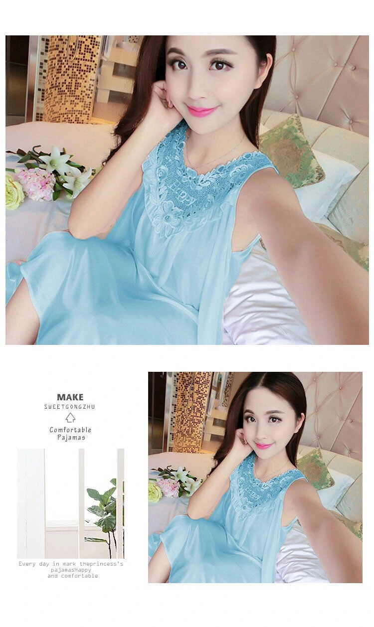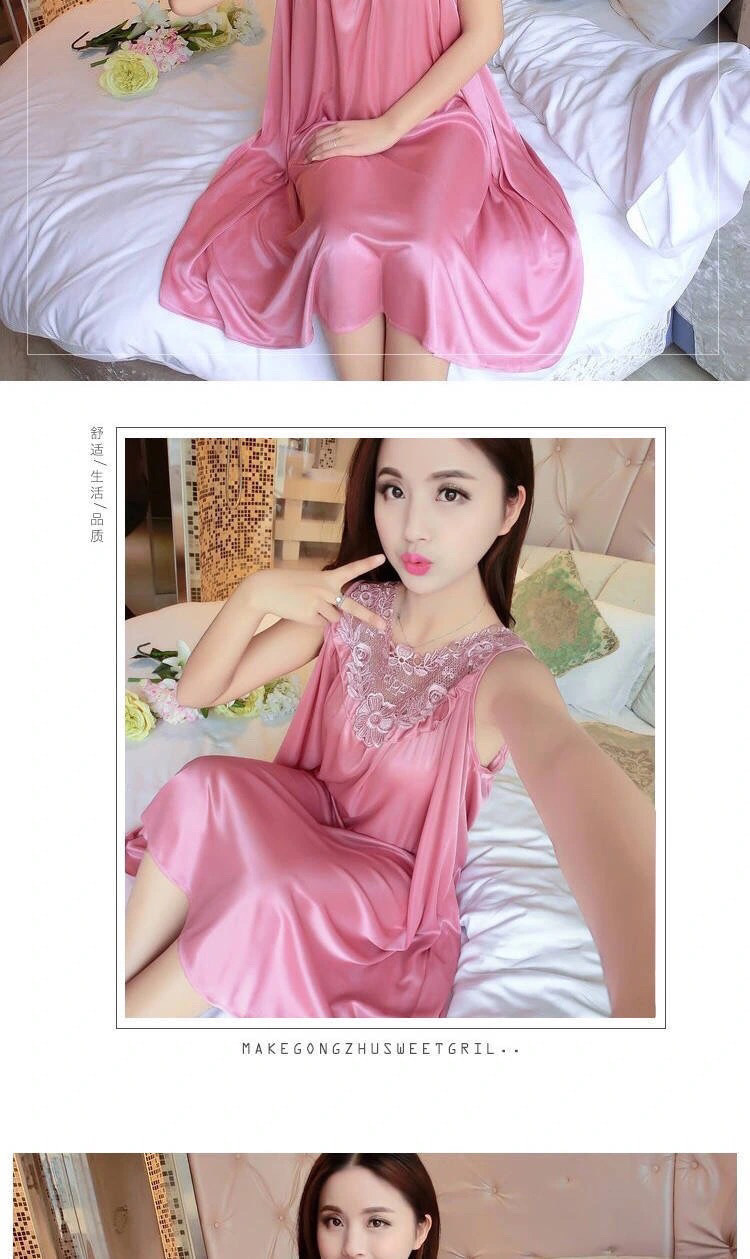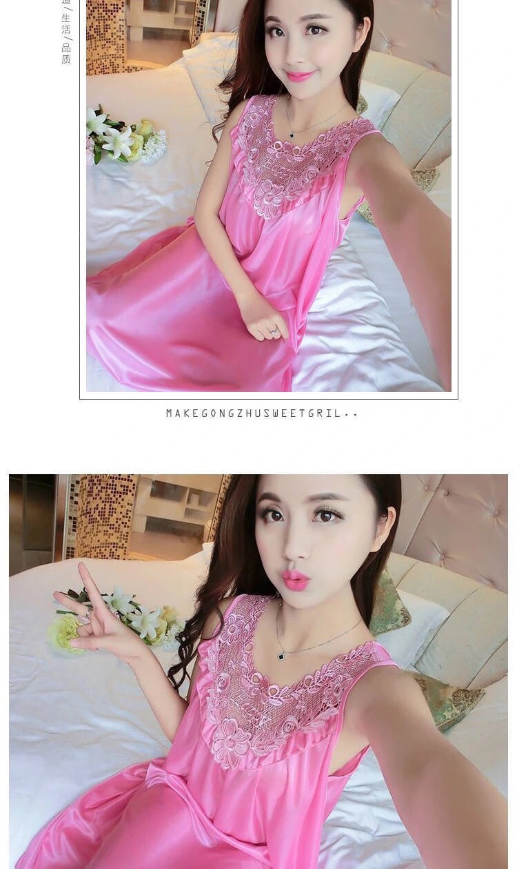 여성을위한 잠옷 여름 얼음 실크 새로운 느슨한 럭셔리 섹시한 고급 한국 스타일 여성 잠옷 얇은 실크 가정 의류
