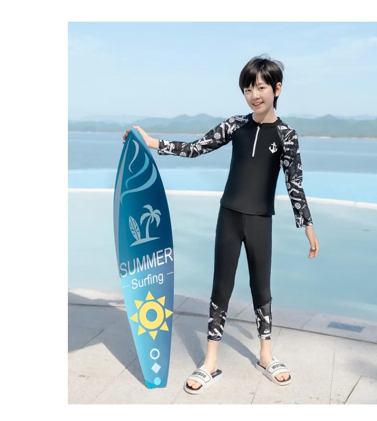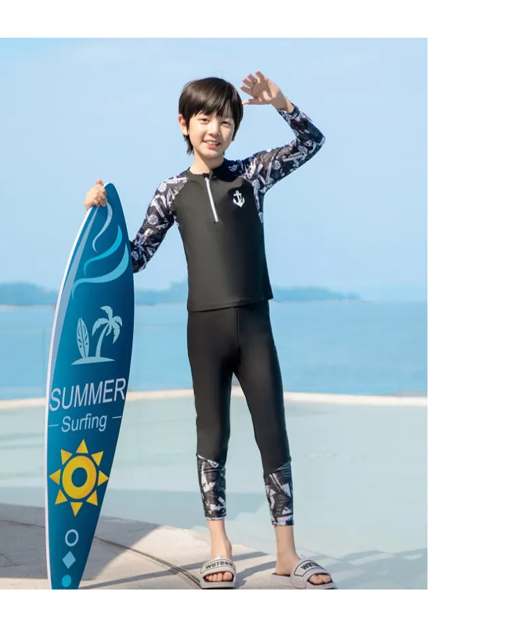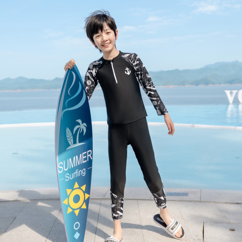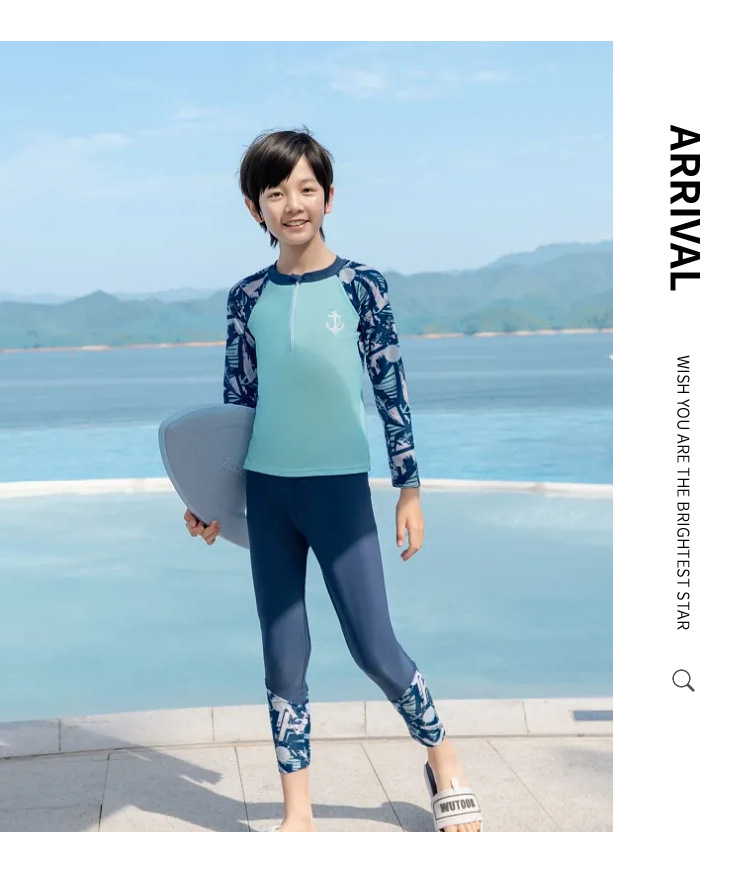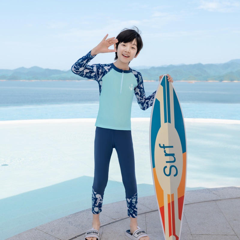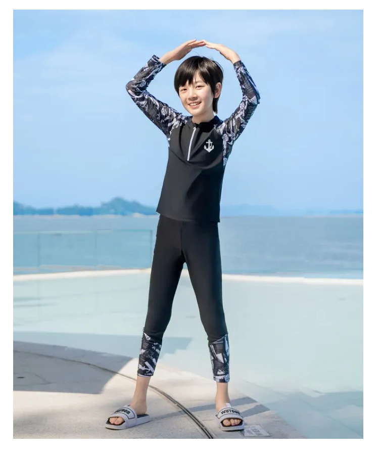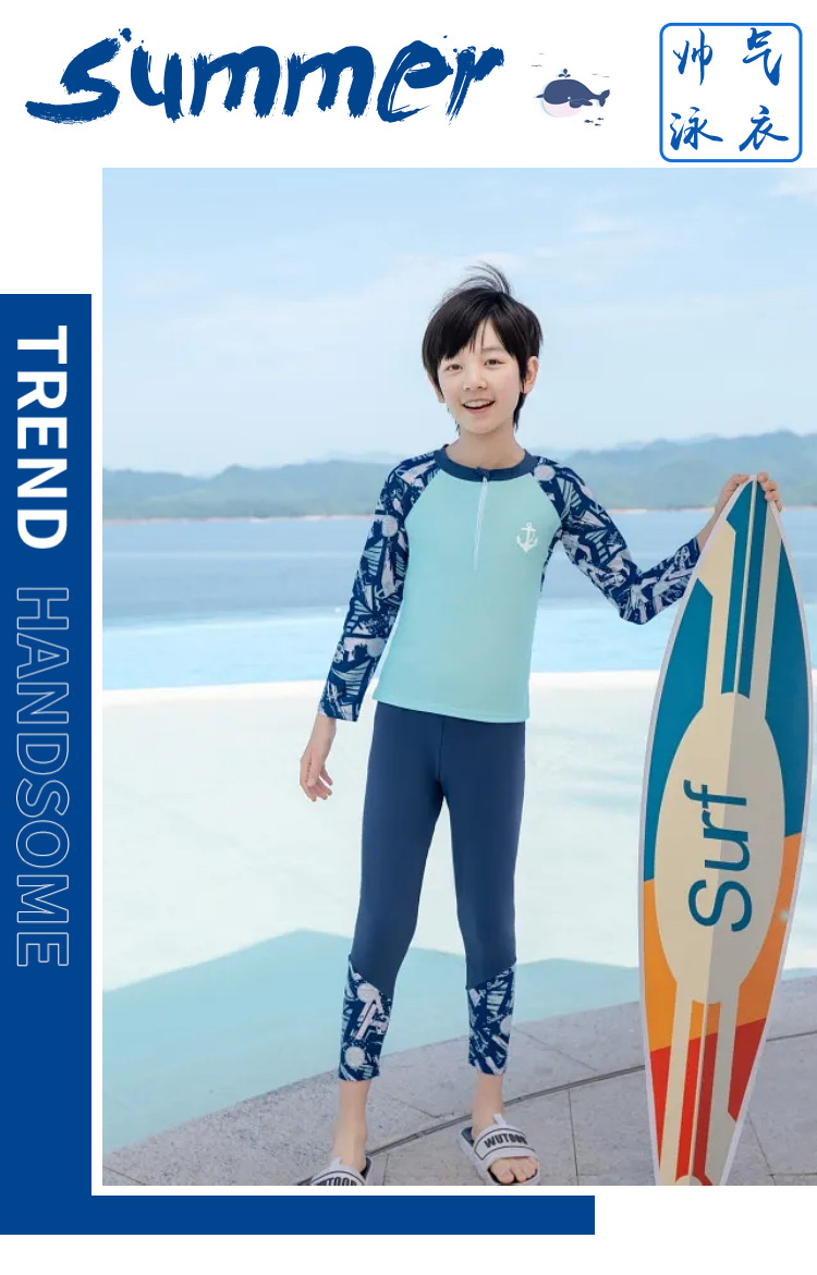 어린이 수영복 2026년 신상 남아용 분리형 자외선 차단 긴팔 긴바지 초등학생 중고등학생 남아 수영복 세트