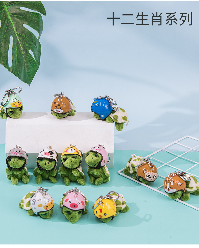 인터넷 연예인 Douyin 헬멧 거북이 키 체인 귀여운 플러시 거북이 키 체인 펜던트 가방 쥬얼리 액세서리