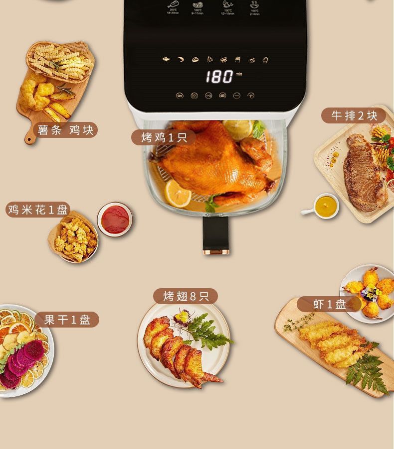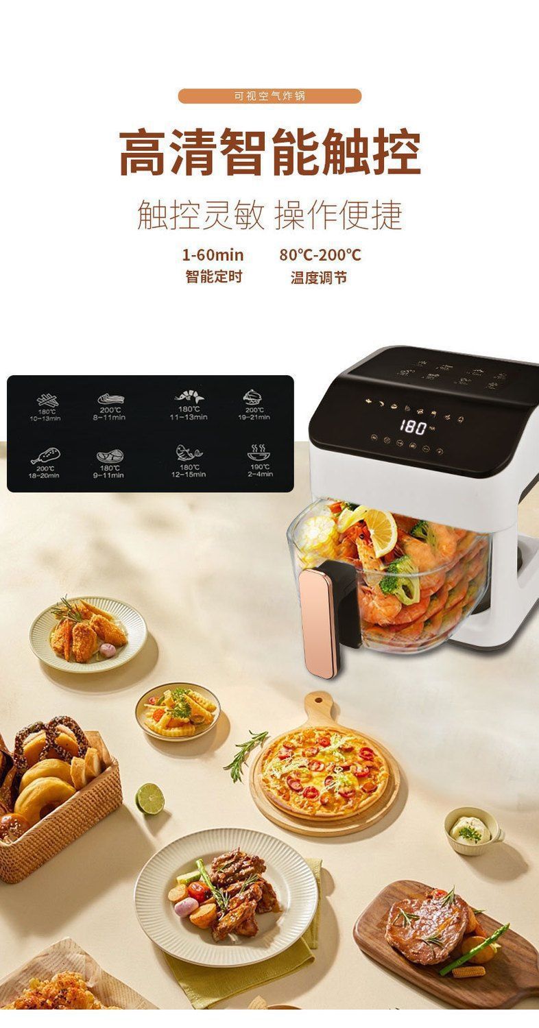 가정용 에어 프라이어 지능형 온도 조절 오븐 감자 튀김 치킨 투명 전체 유리 오일 프리 대용량 완전 자동 프라이