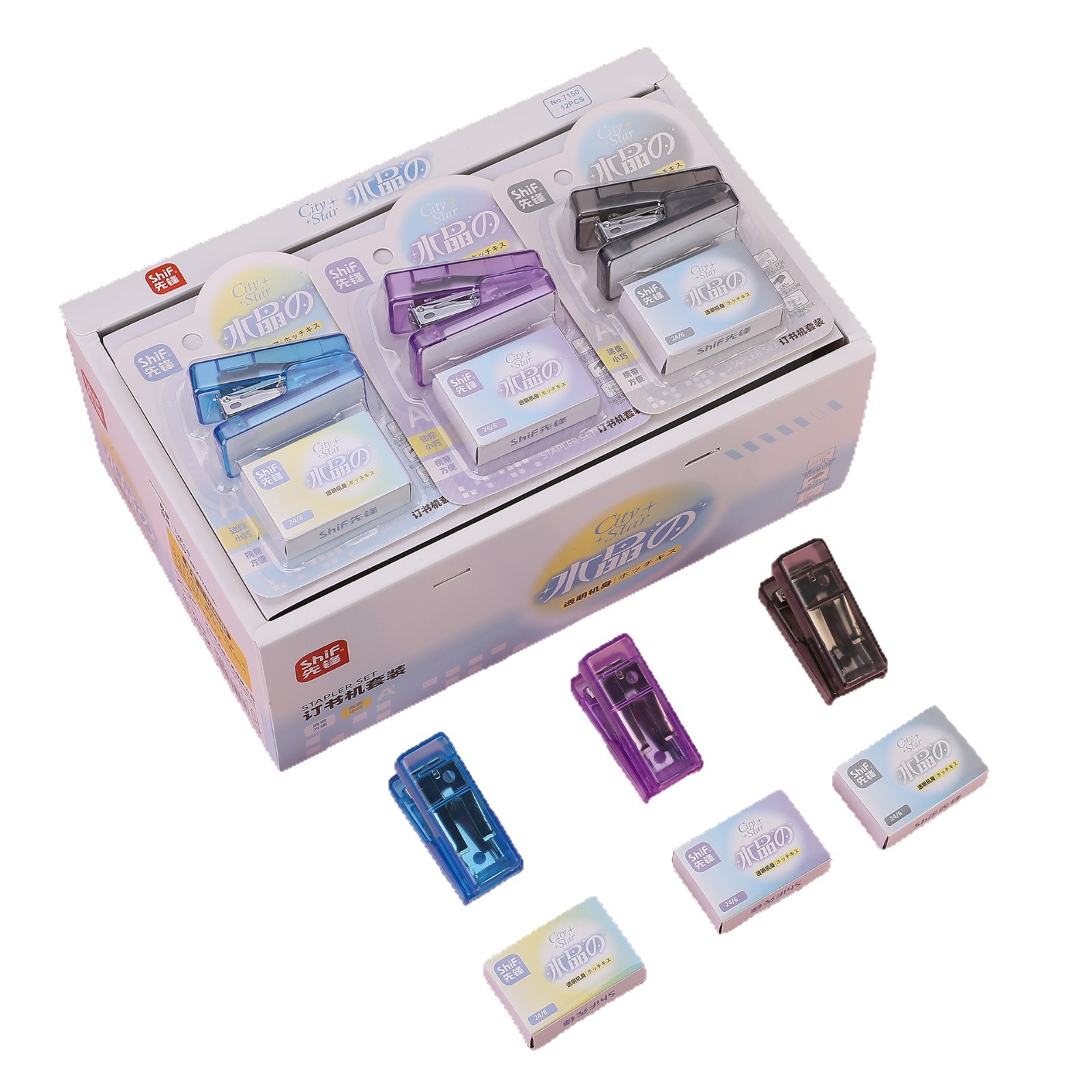 학생 사무실을위한 개척자 크리스탈 세트 스테이플러 미니 휴대용 소형 스테이플러 고가 문구 도매