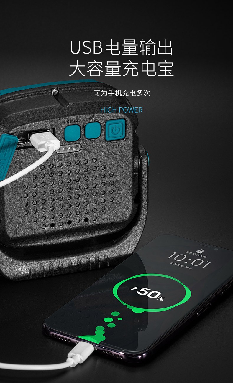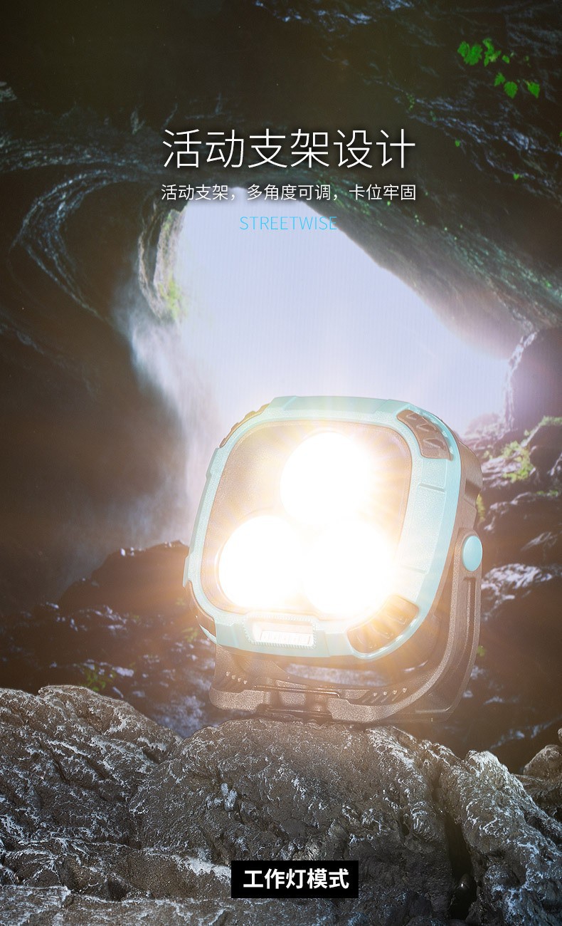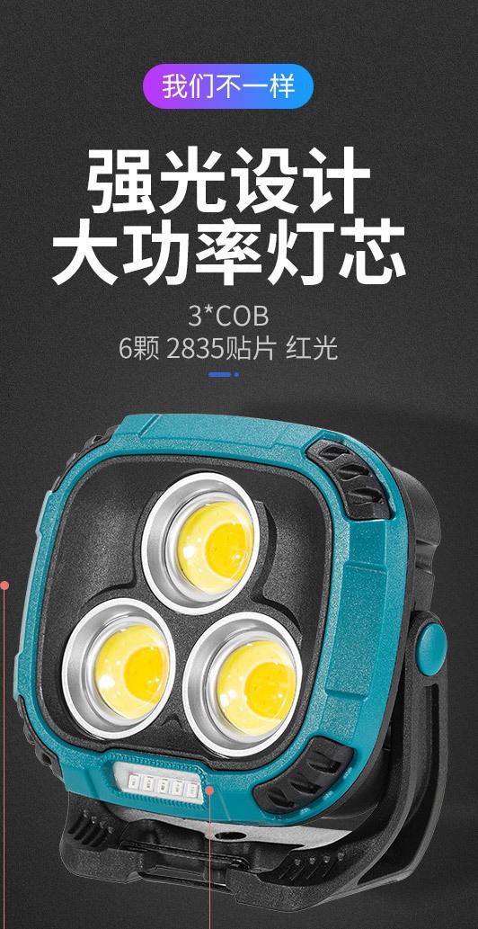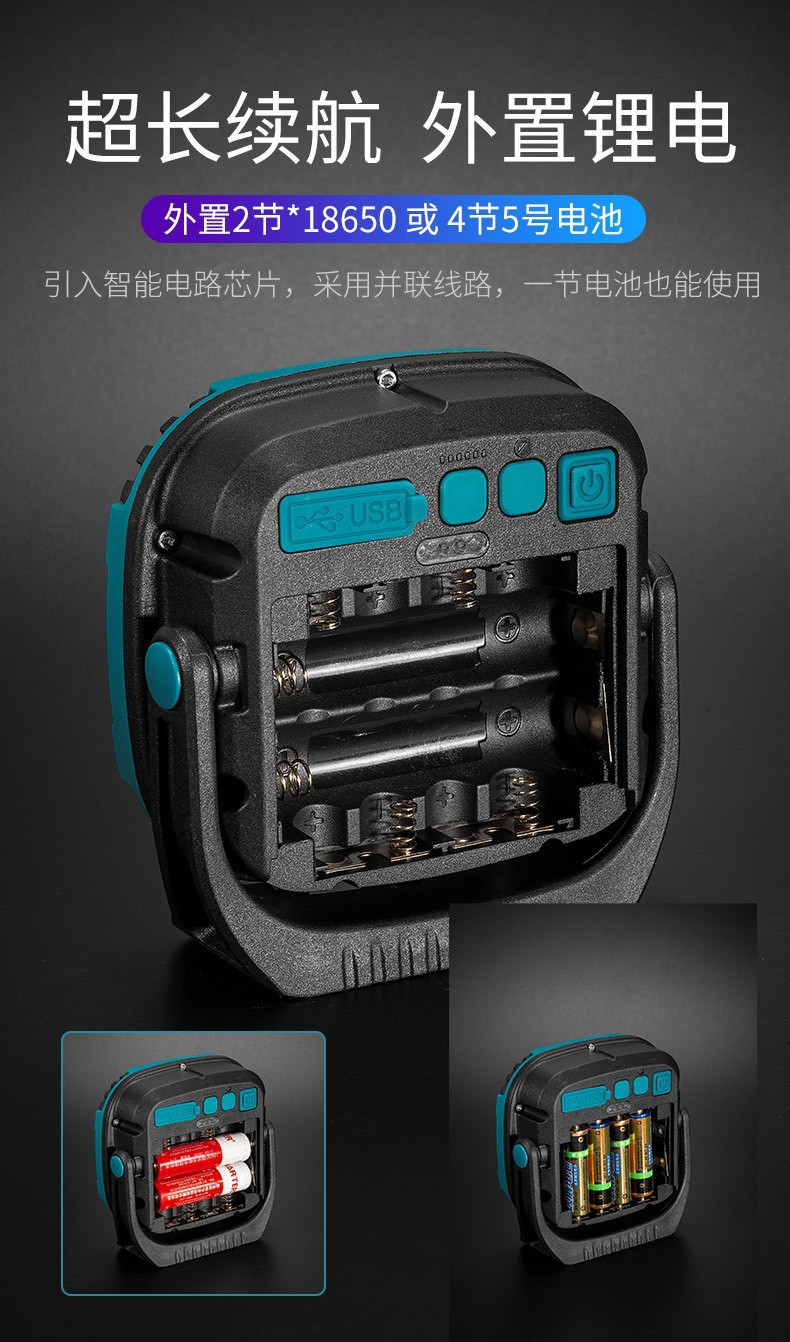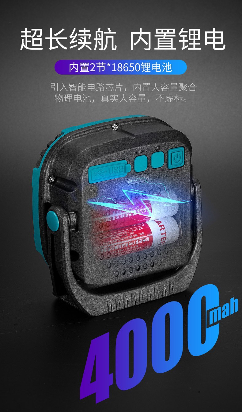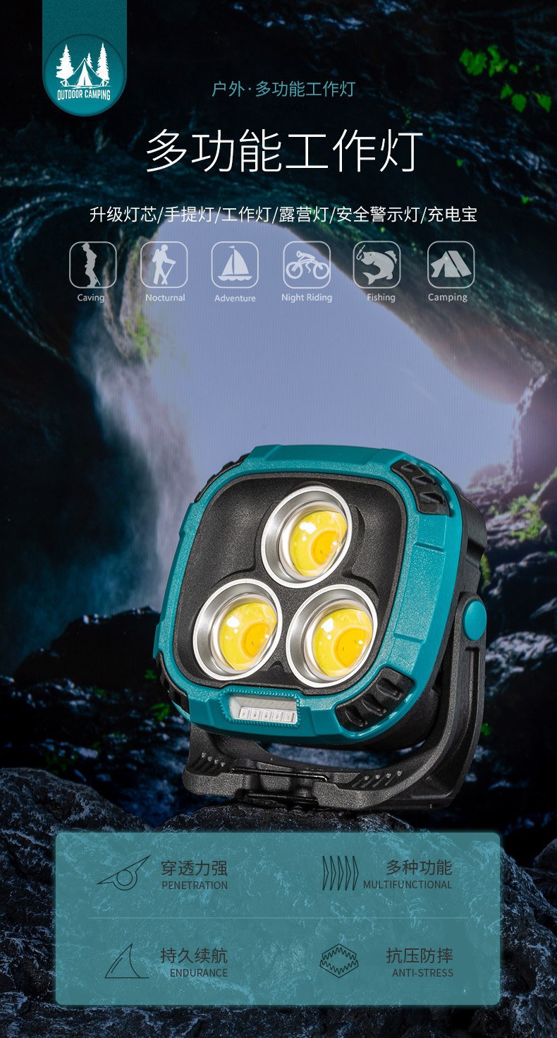 국경 간 새로운 COB 작업 캠핑 램프 내장 배터리 충전식 야외 텐트 램프 LED 강력한 자기 투광 손전등