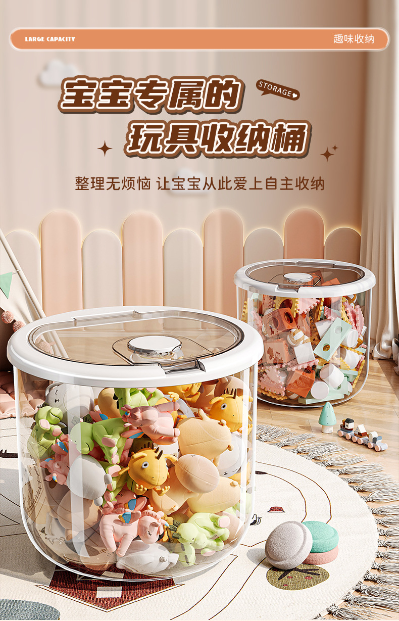 대형 [투명 흰색] 30L 원형 쌀통 장난감 보관통