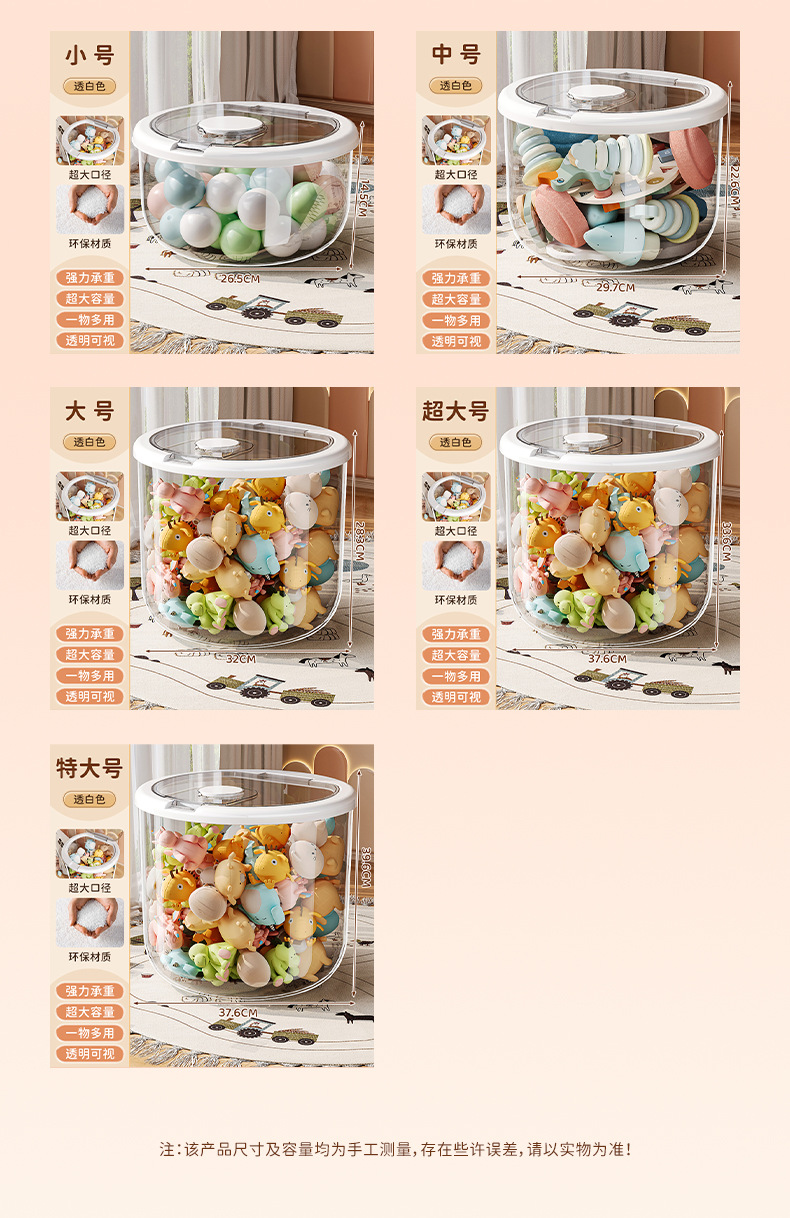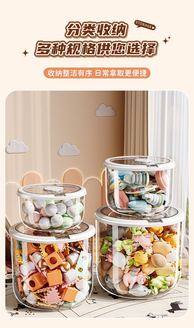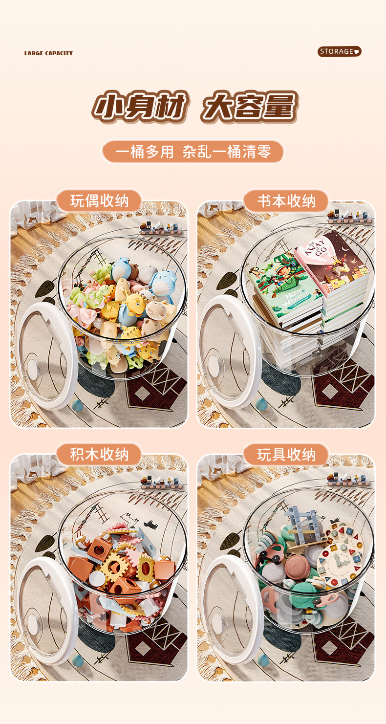 소형 [투명 흰색] 10L 원형 밥통 장난감 보관통