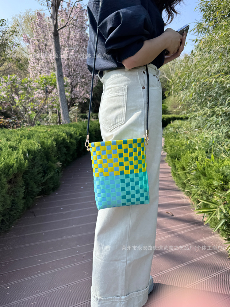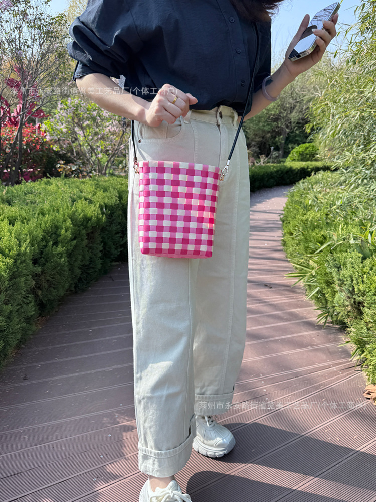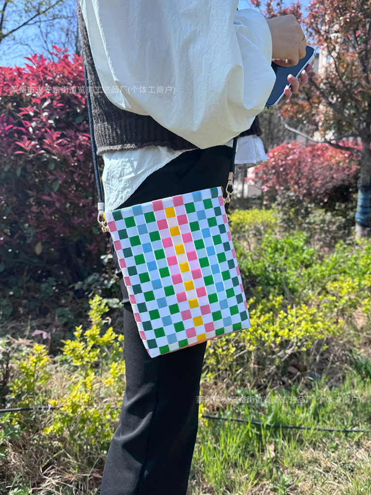 마카롱 컬러 숄더백 휴대폰 가방 2025 새로운 손으로 짠 가방 한국어 버전 틈새 크로스 바디 백 동전 지갑