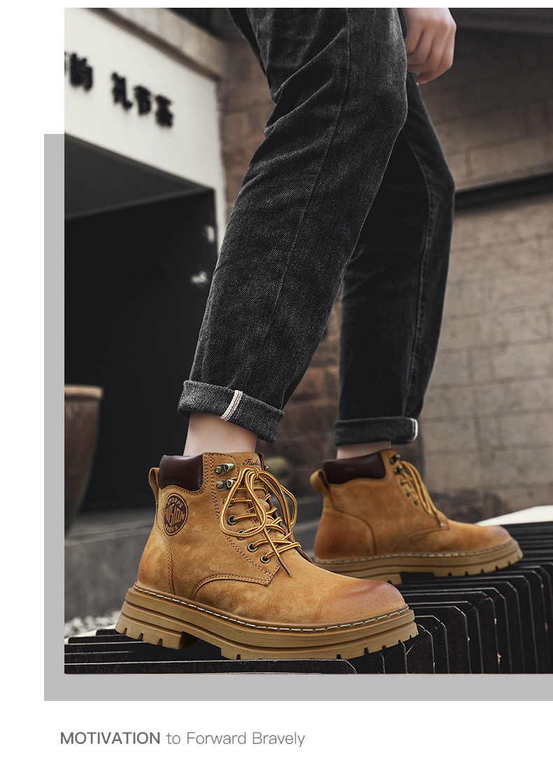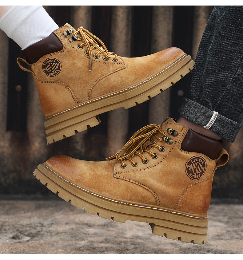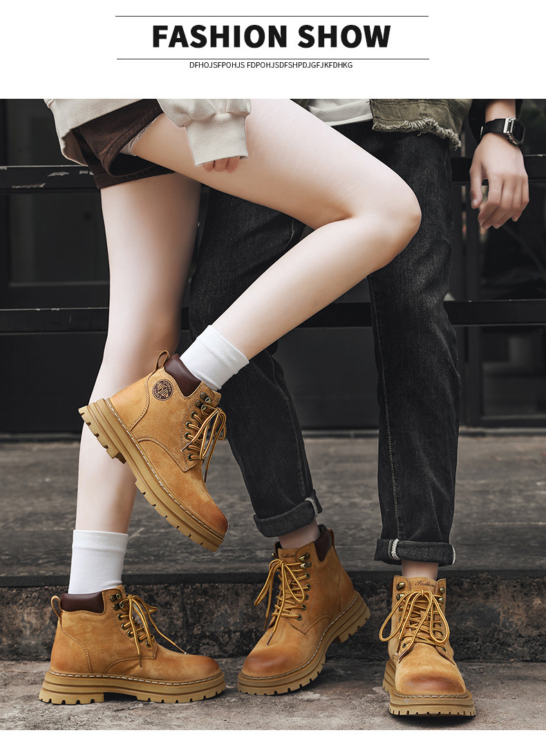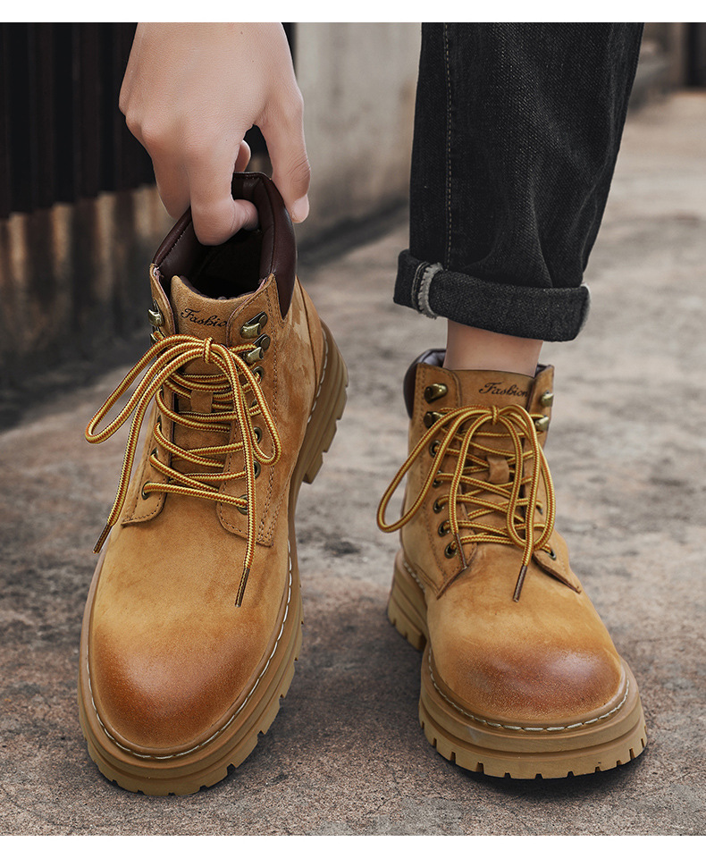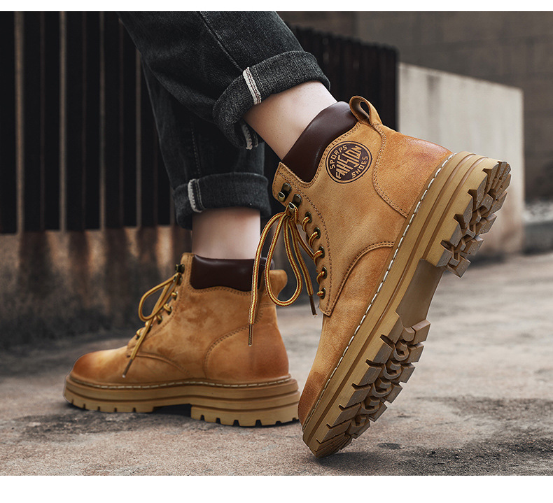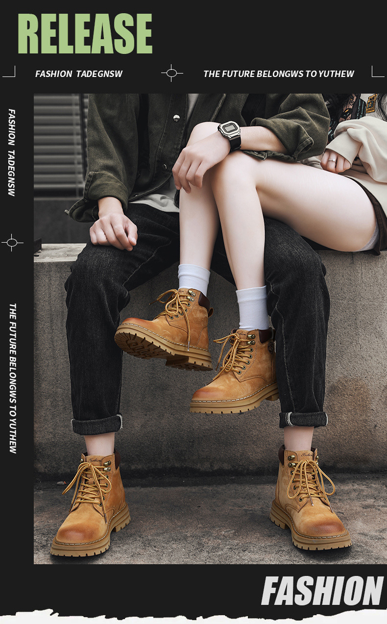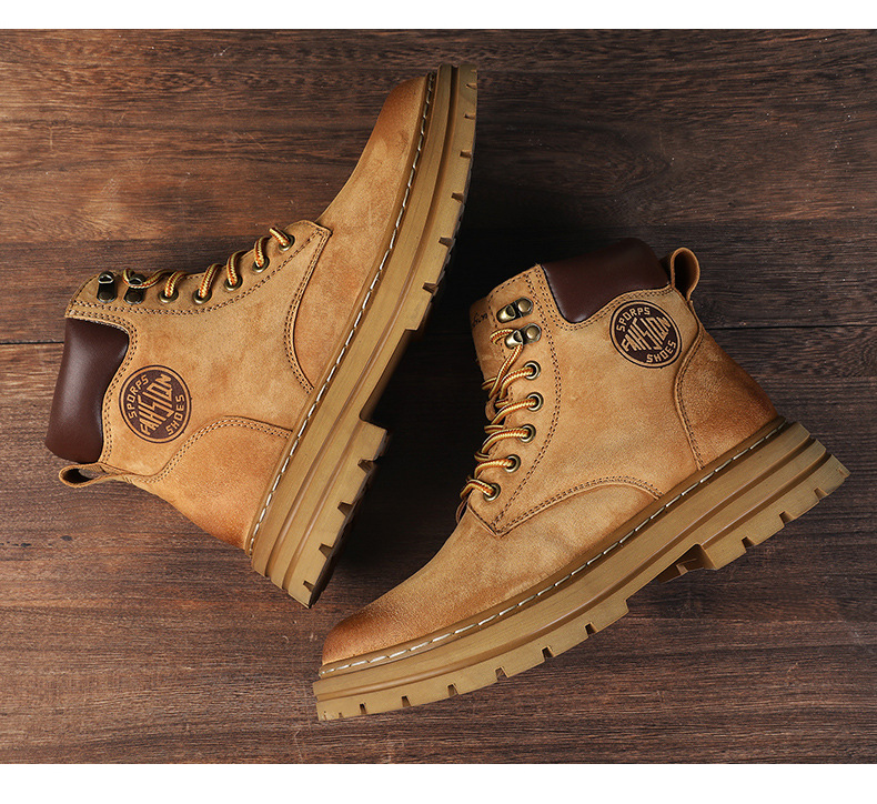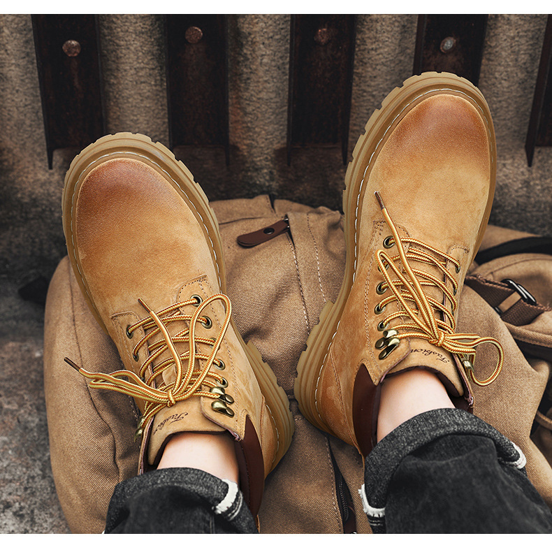 남성용 빅옐로우 부츠 키티부란 마틴 부츠, 천연가죽 클래식 2025년 핫 스타일, 두꺼운 밑창