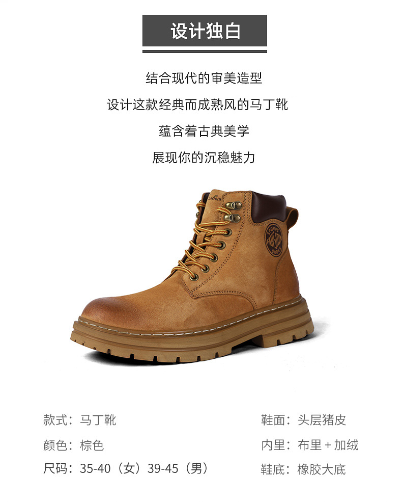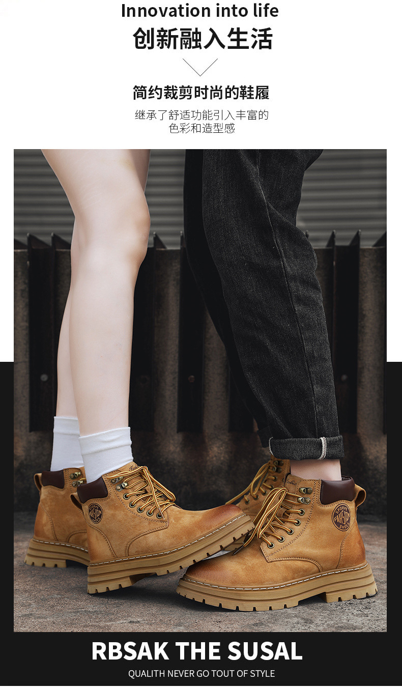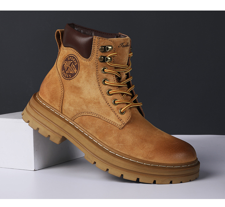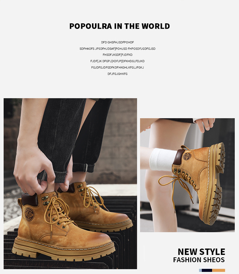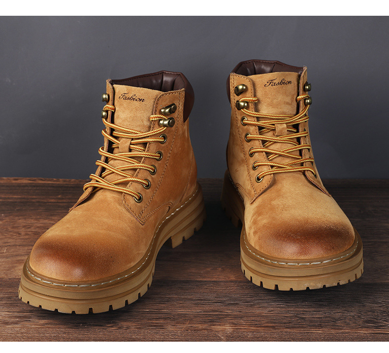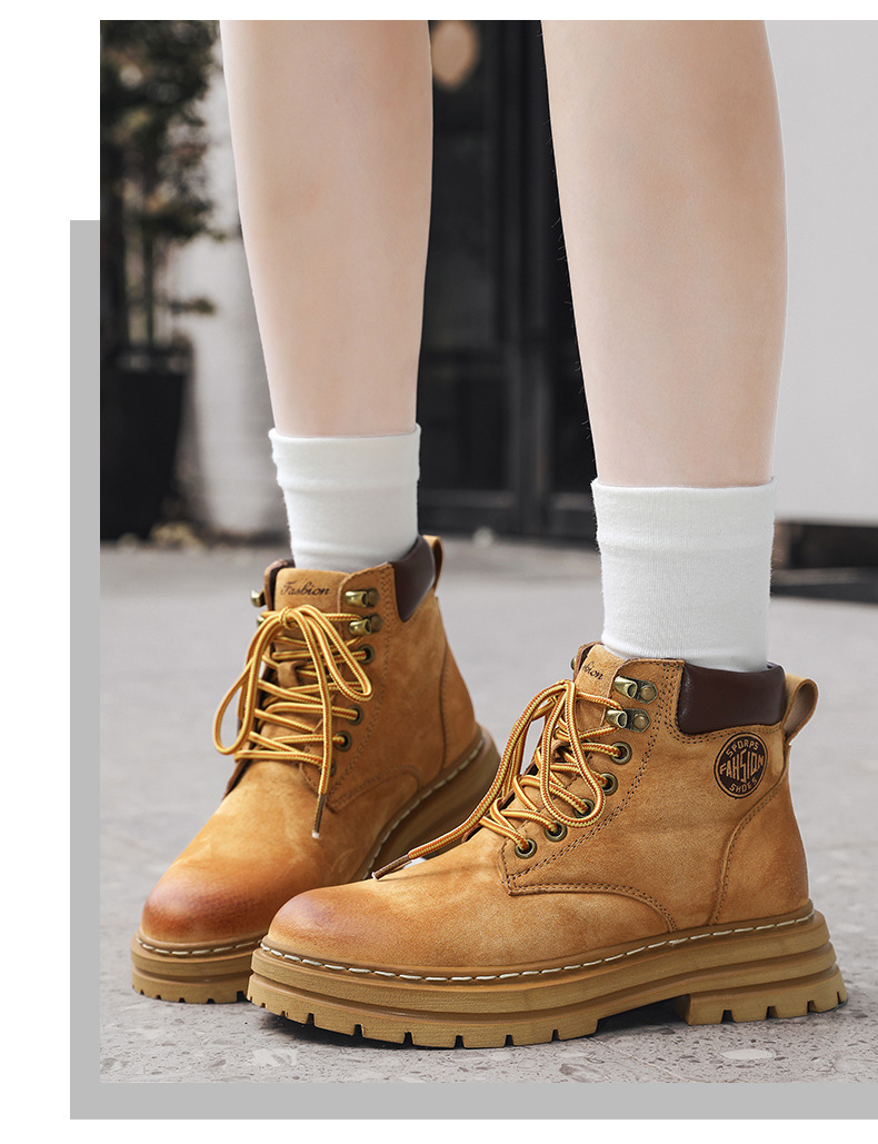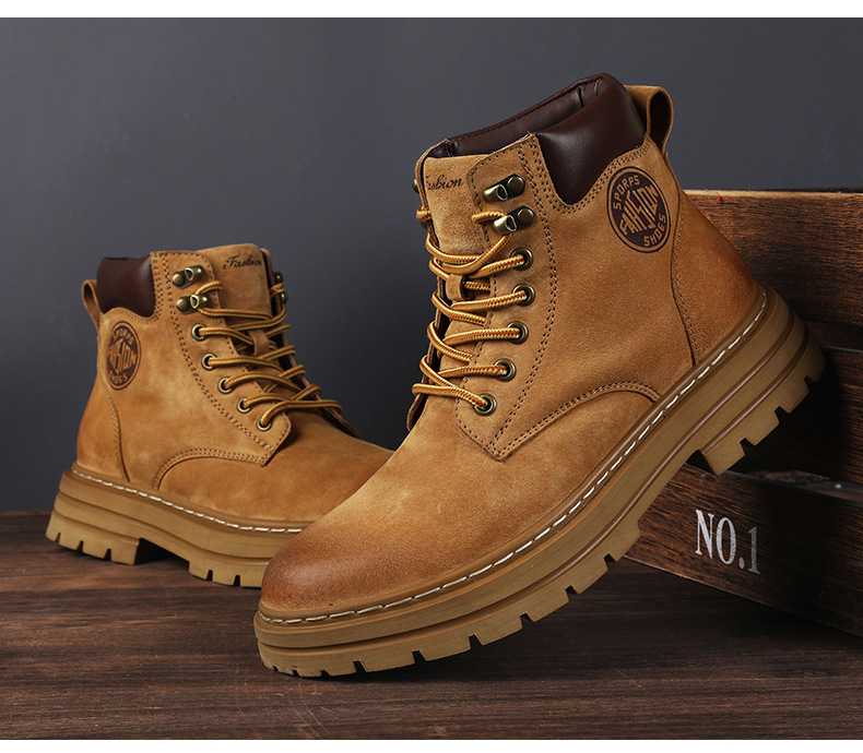 남성용 빅옐로우 부츠 키티부란 마틴 부츠, 천연가죽 클래식 2025년 핫 스타일, 두꺼운 밑창