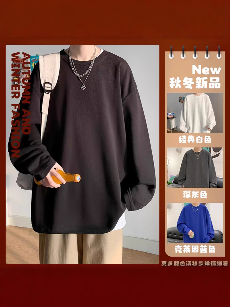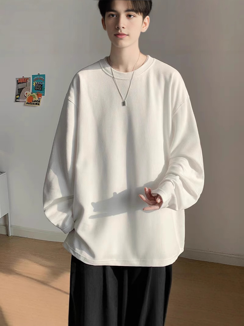 남성용 긴팔 티셔츠 2025 신작 봄, 가을 헤비급 코튼 스웨트 셔츠 루즈 티셔츠 이너 레이어드 셔츠 탑