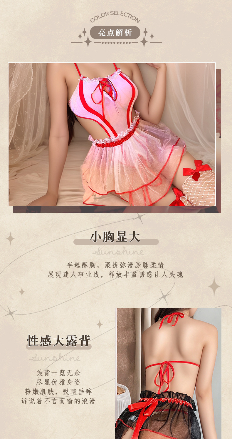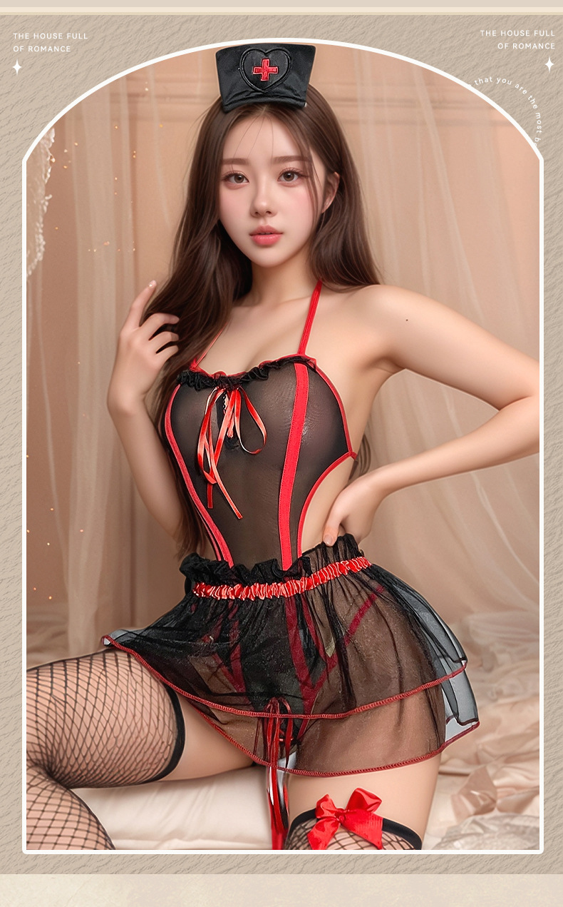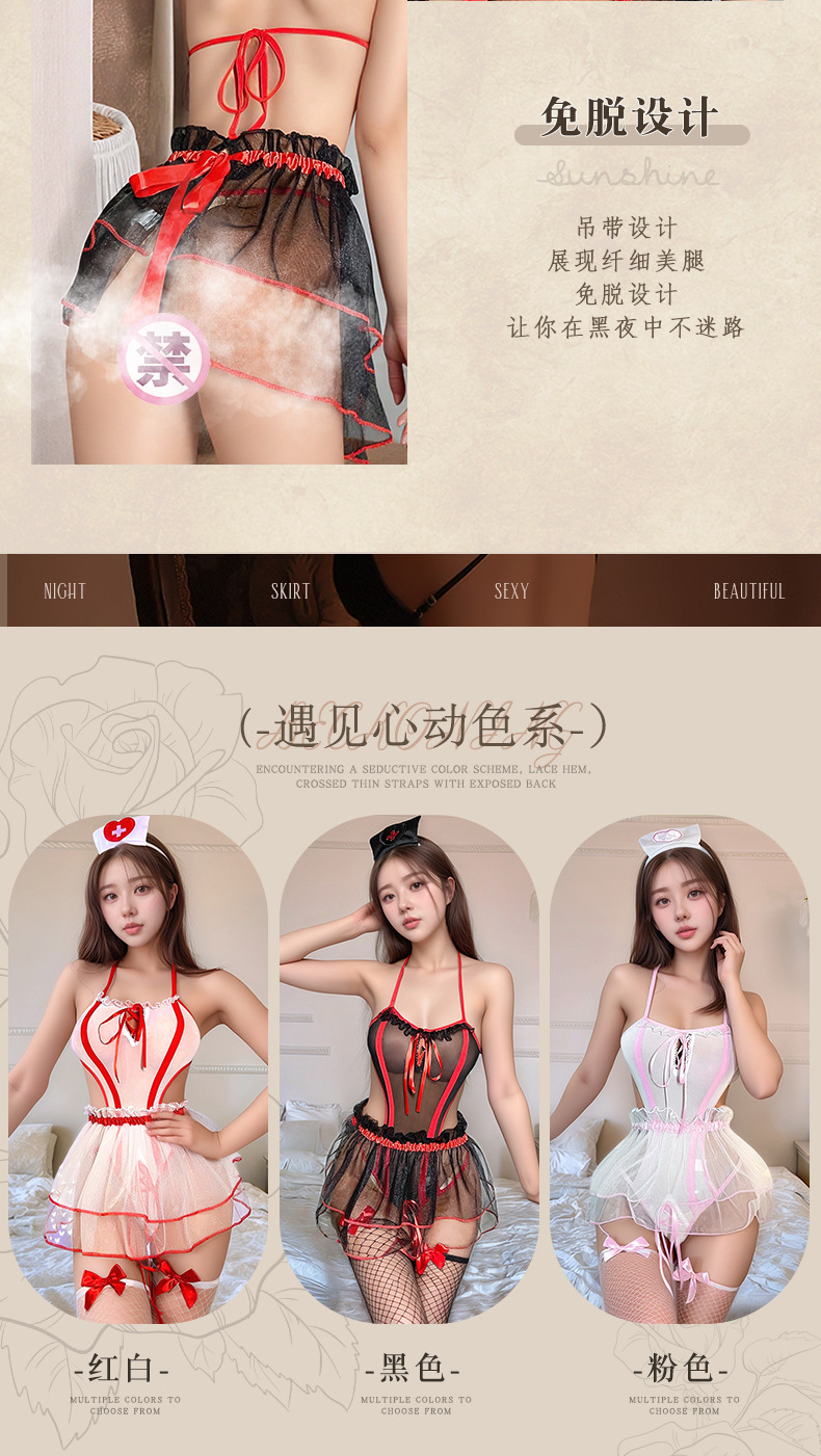 여성용 섹시 속옷, 투명 메쉬, 뒷트임, 투투 스커트, 레이스업, 등이 없는 섹시, 투명, 힙까지 오는 유혹, 얇은 3083