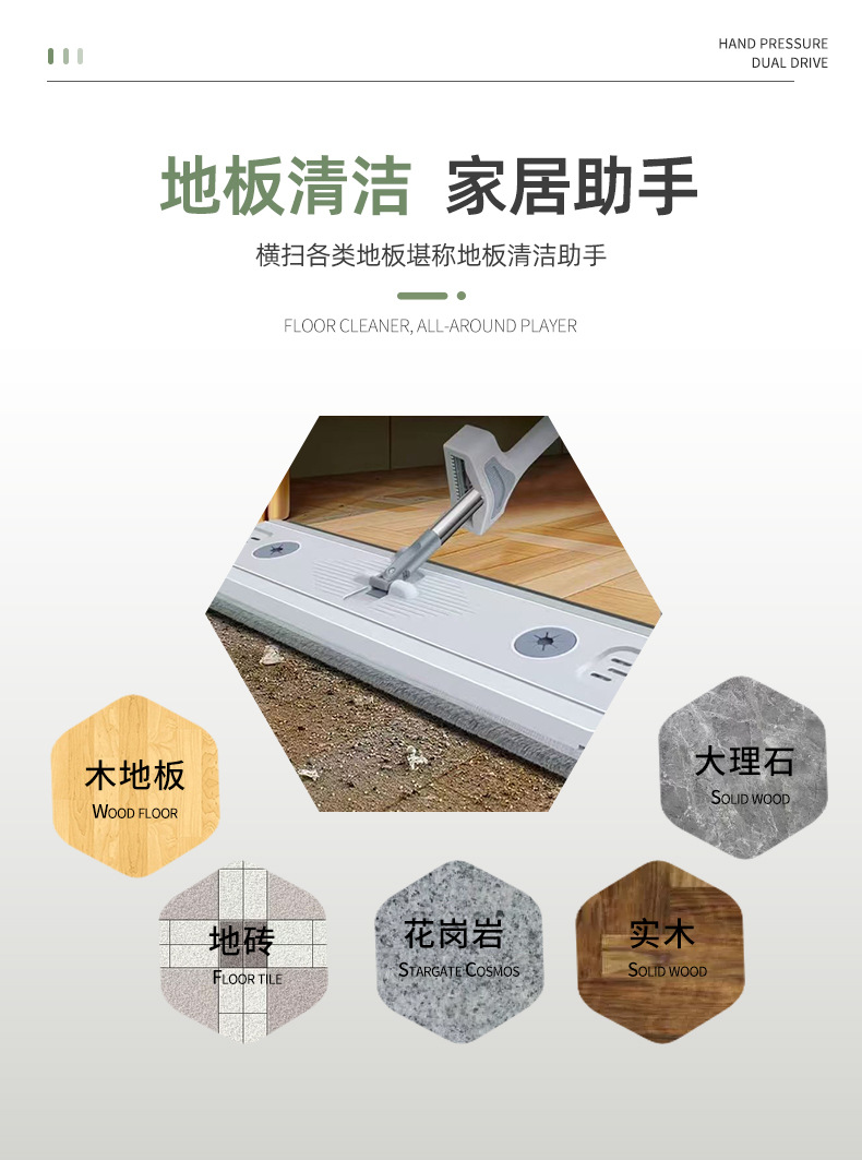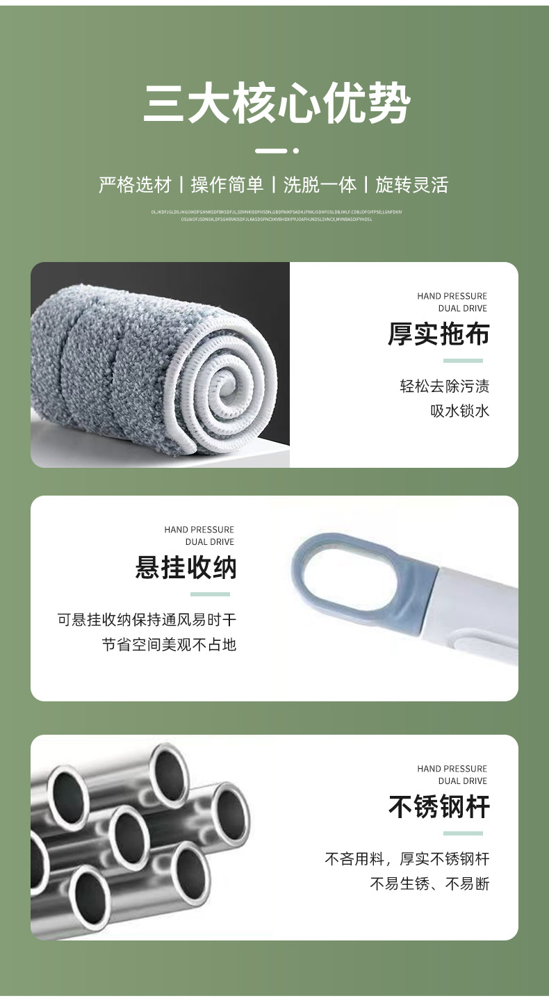 도매용 플랫형 대걸레, 손세탁 필요 없는 가정용 게으름뱅이용 원터치 청소 대걸레, 대형 두꺼운 기숙사용 걸레, 천 포함 휴대용 걸레
