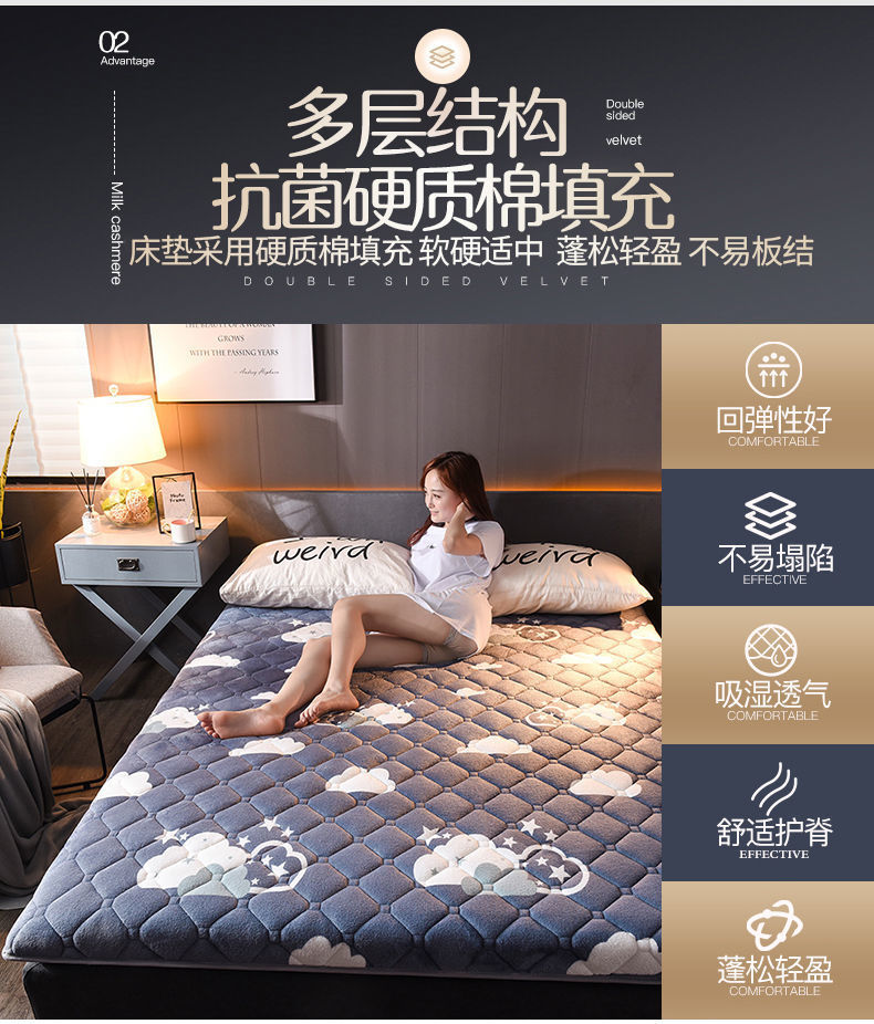 Fale 벨벳 매트리스 두꺼운 다다미 스폰지 매트 싱글 및 더블 기숙사 매트 침구 바닥 매트리스 메모리 폼 매트