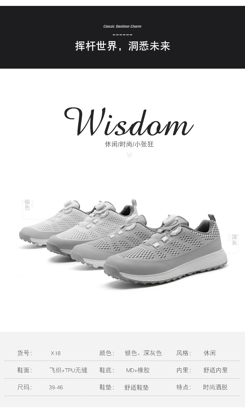 공장 직접 판매 2023 새로운 여름 남성 골프 신발 고정 스파이크리스 통기성 골프 신발