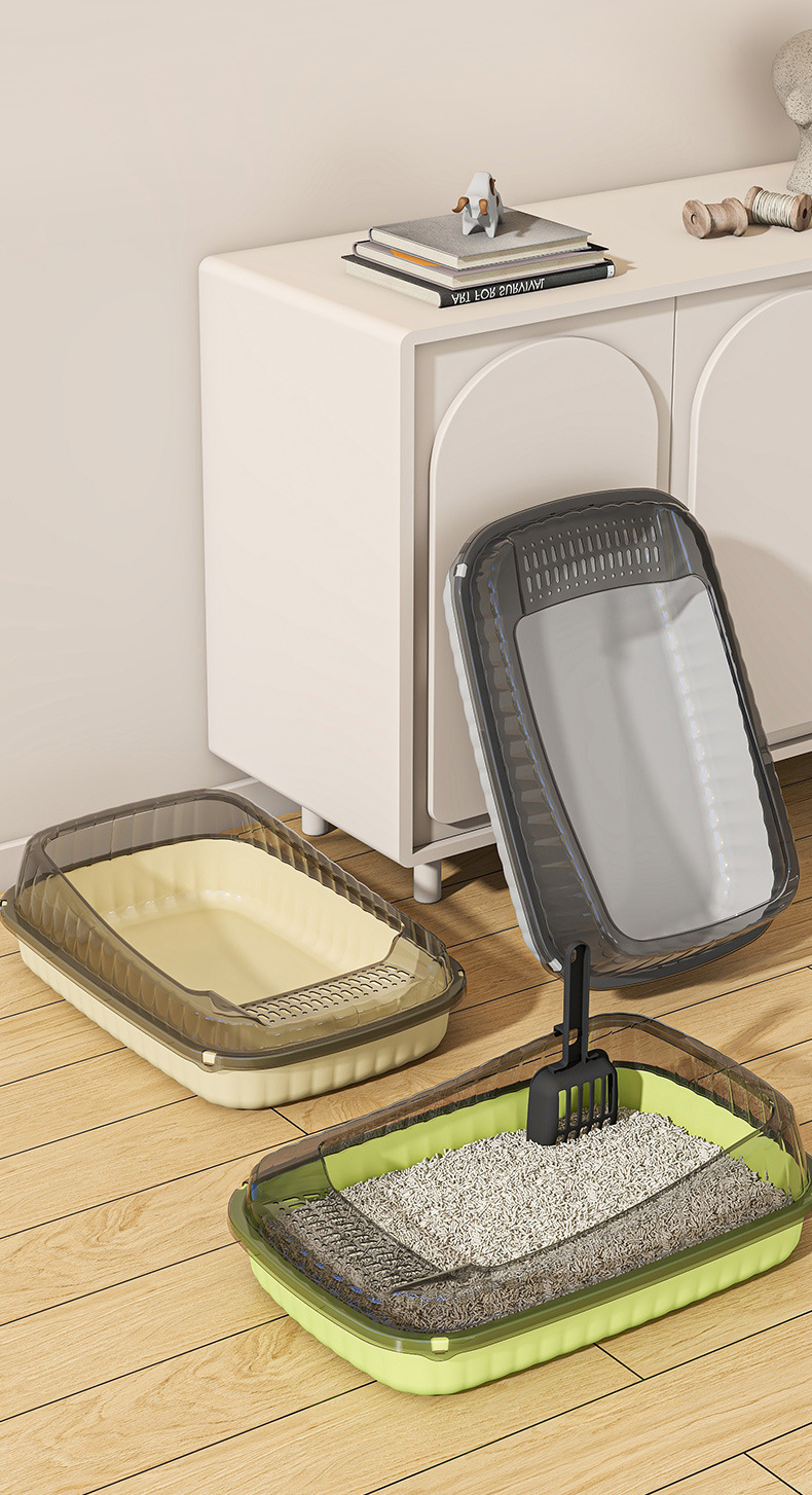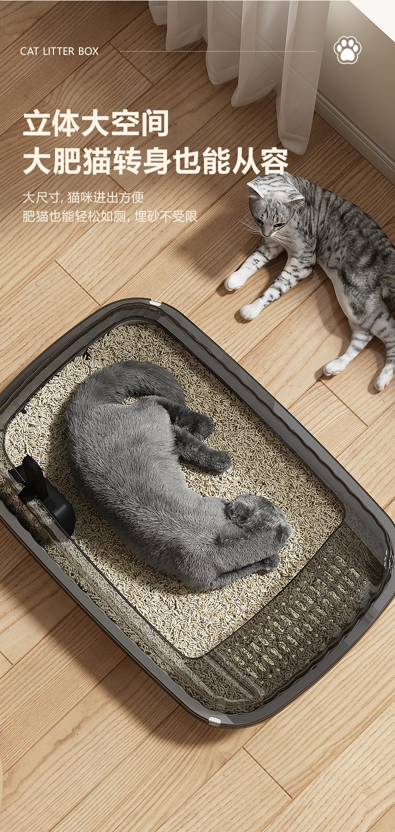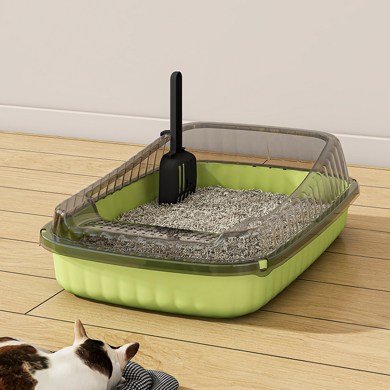 고양이 쓰레기통, 대형, 물 튀김 방지, 반밀폐형 새끼 고양이 쓰레기통, 대형 고양이 화장실, 고양이 모래, 소형 고양이 변기
