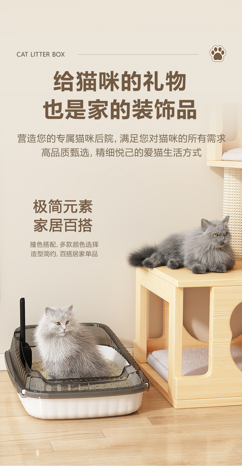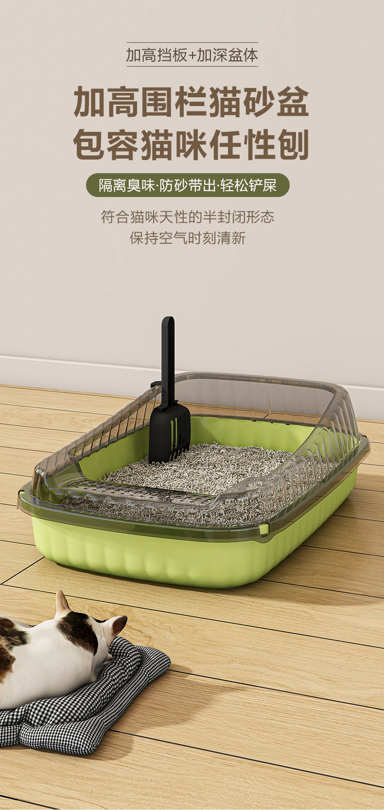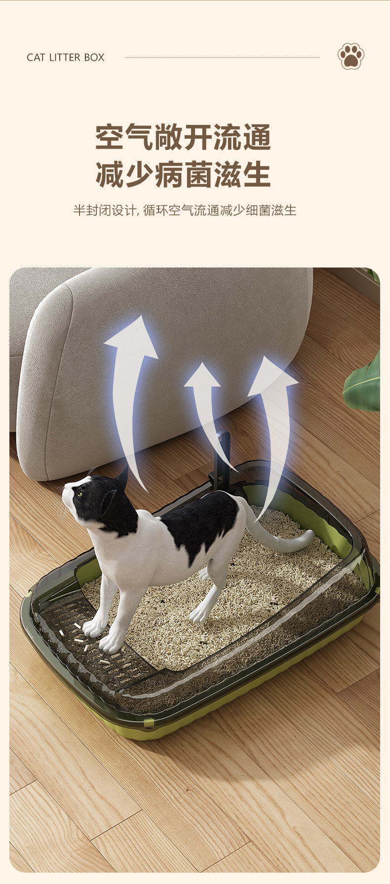 고양이 쓰레기통, 대형, 물 튀김 방지, 반밀폐형 새끼 고양이 쓰레기통, 대형 고양이 화장실, 고양이 모래, 소형 고양이 변기