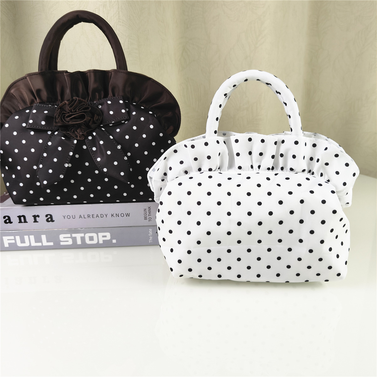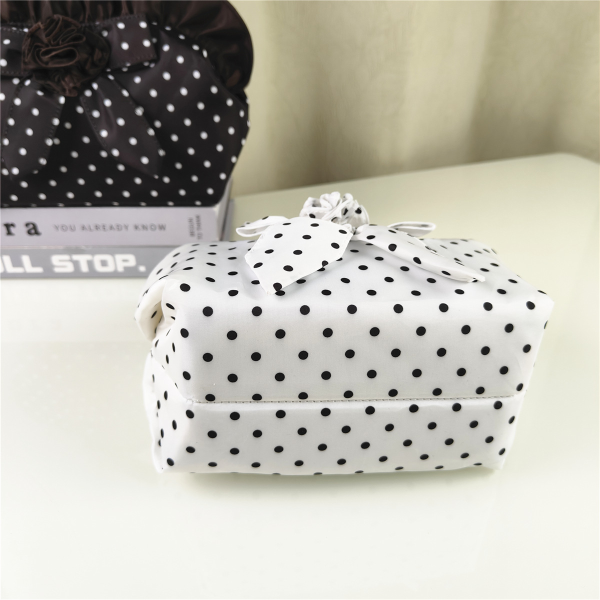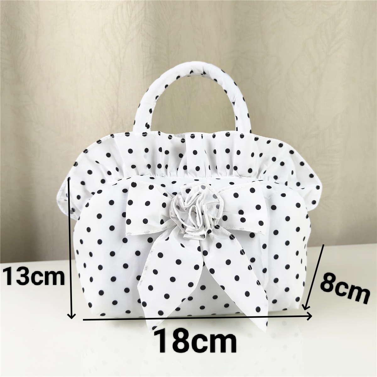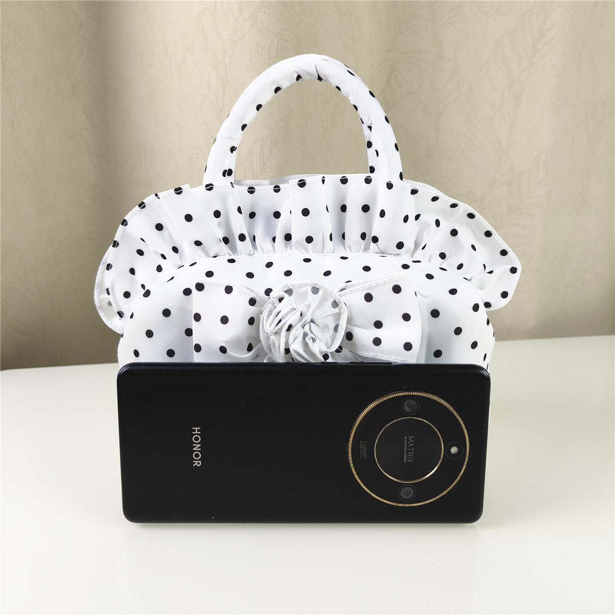2026년 신상 한국 스타일 귀여운 흑백 도트무늬 패브릭 리본 작은 가방 캐주얼하고 다용도로 활용 가능한 휴대폰 동전 지갑