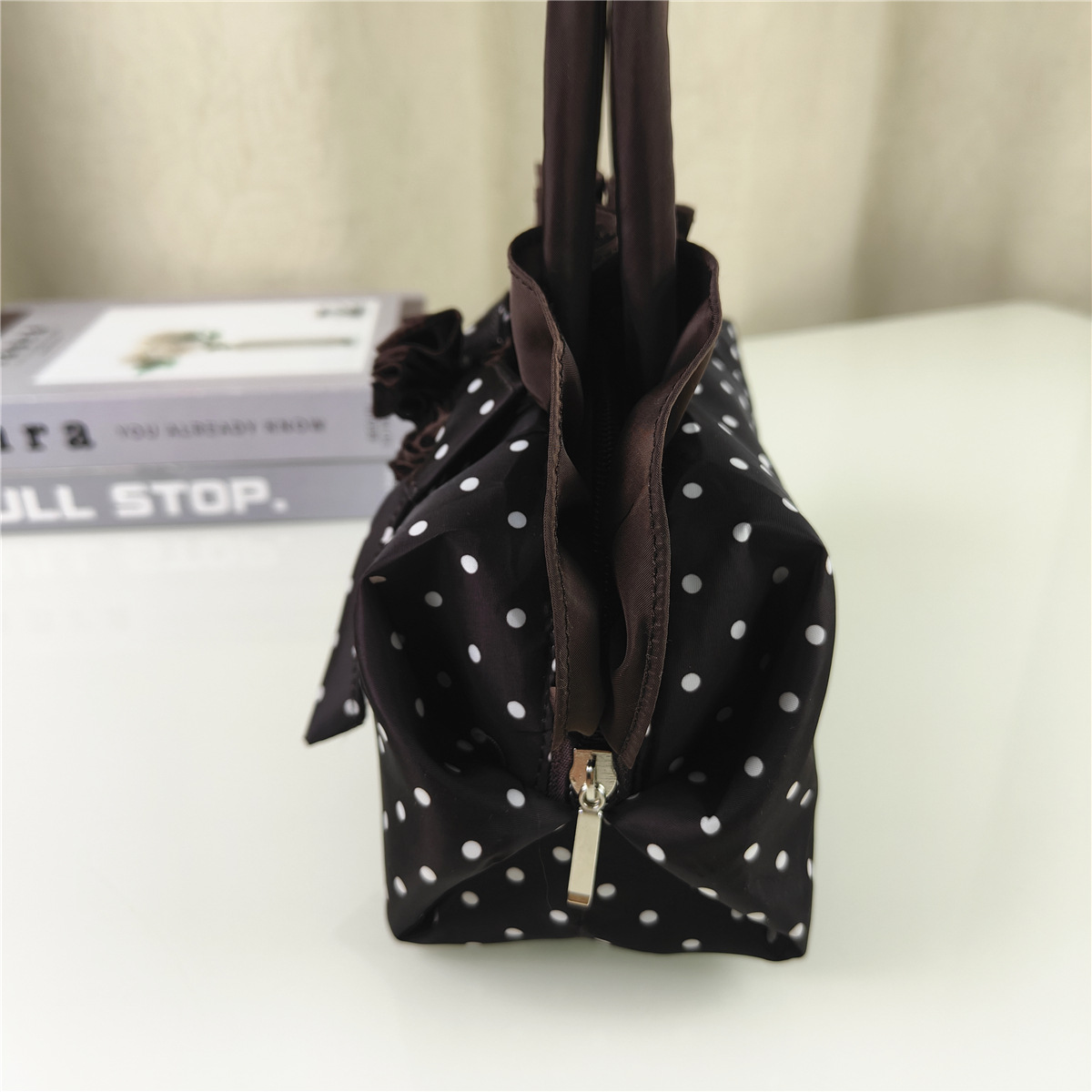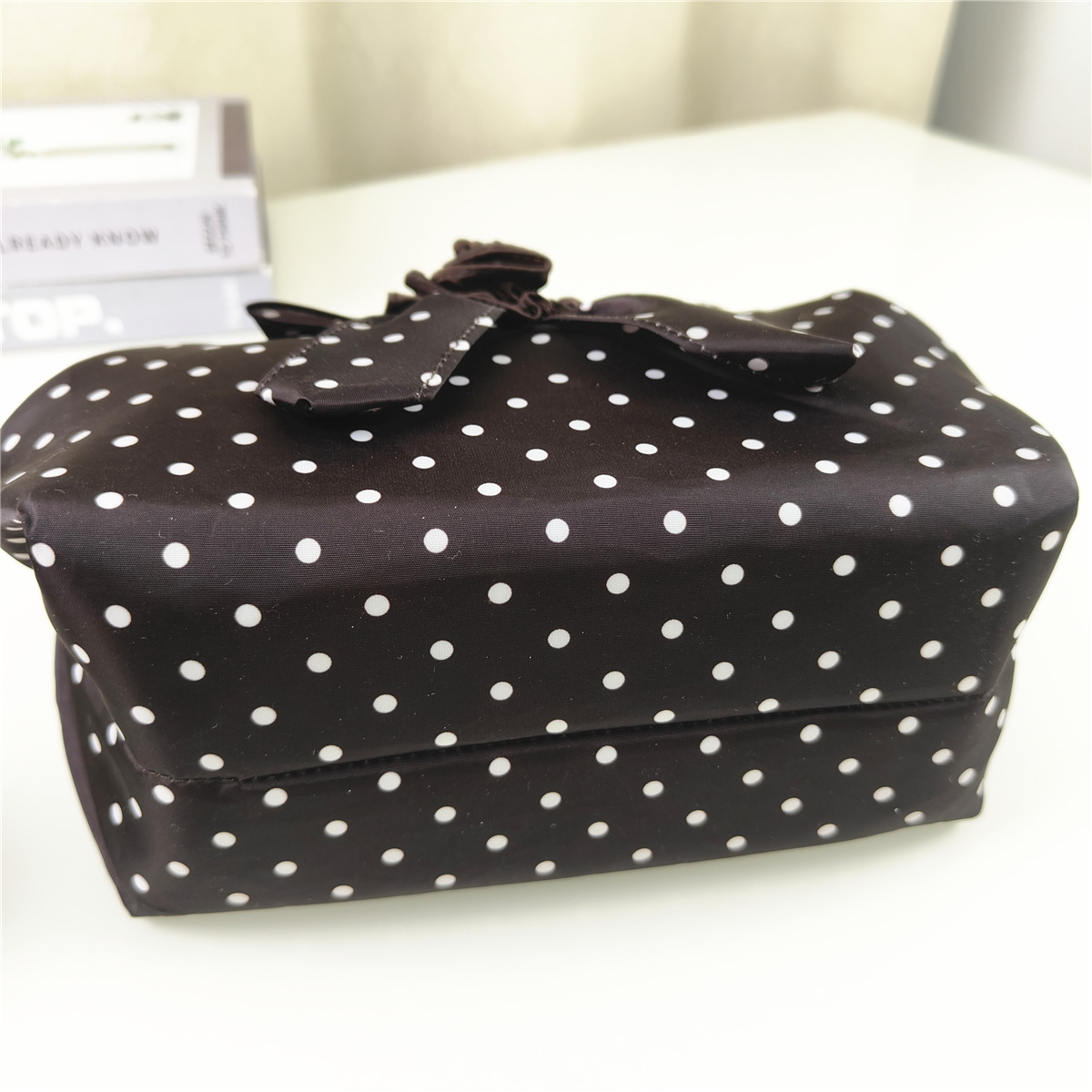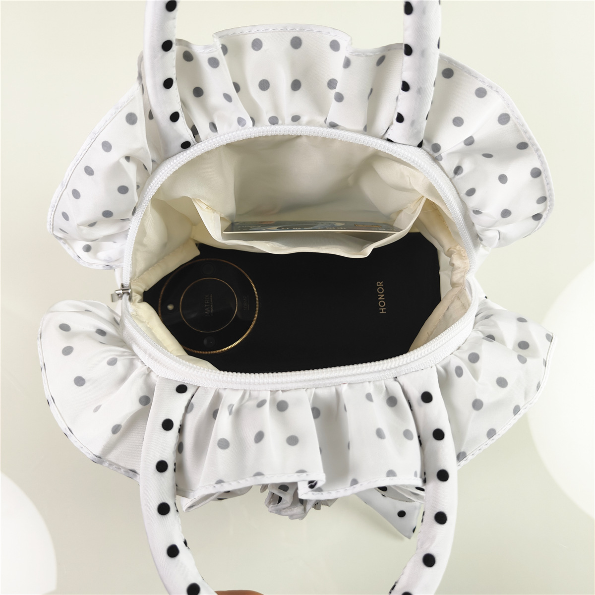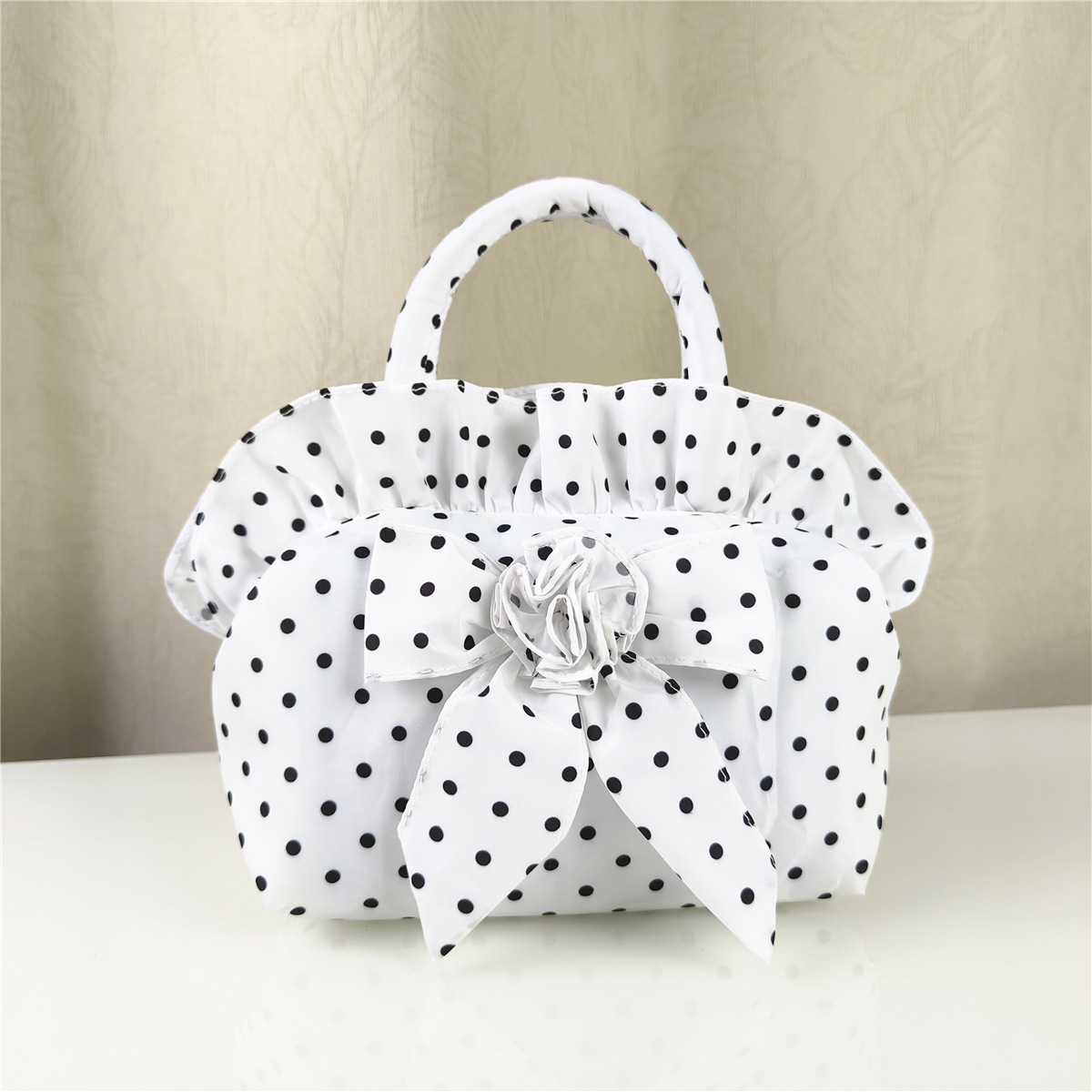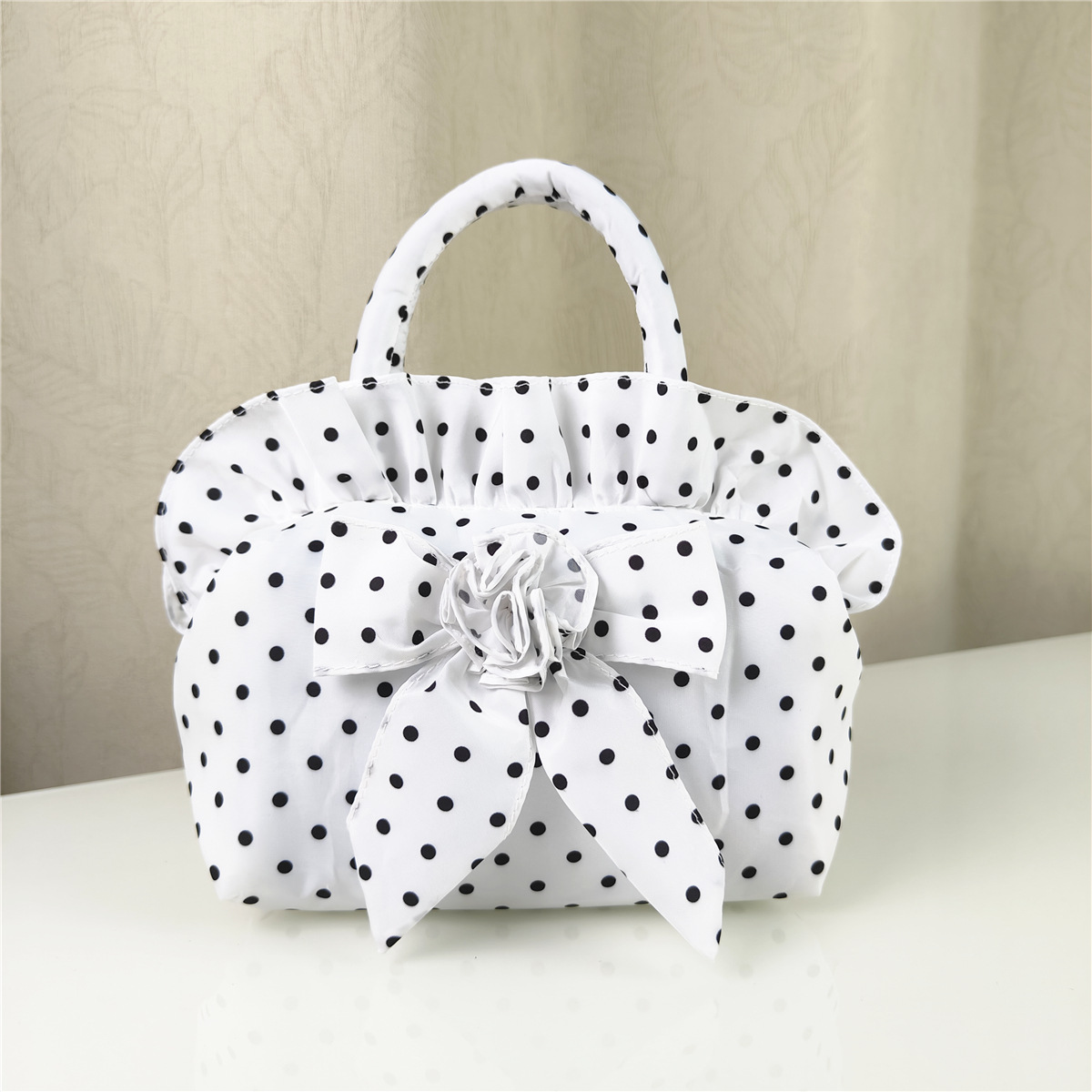 2026년 신상 한국 스타일 귀여운 흑백 도트무늬 패브릭 리본 작은 가방 캐주얼하고 다용도로 활용 가능한 휴대폰 동전 지갑